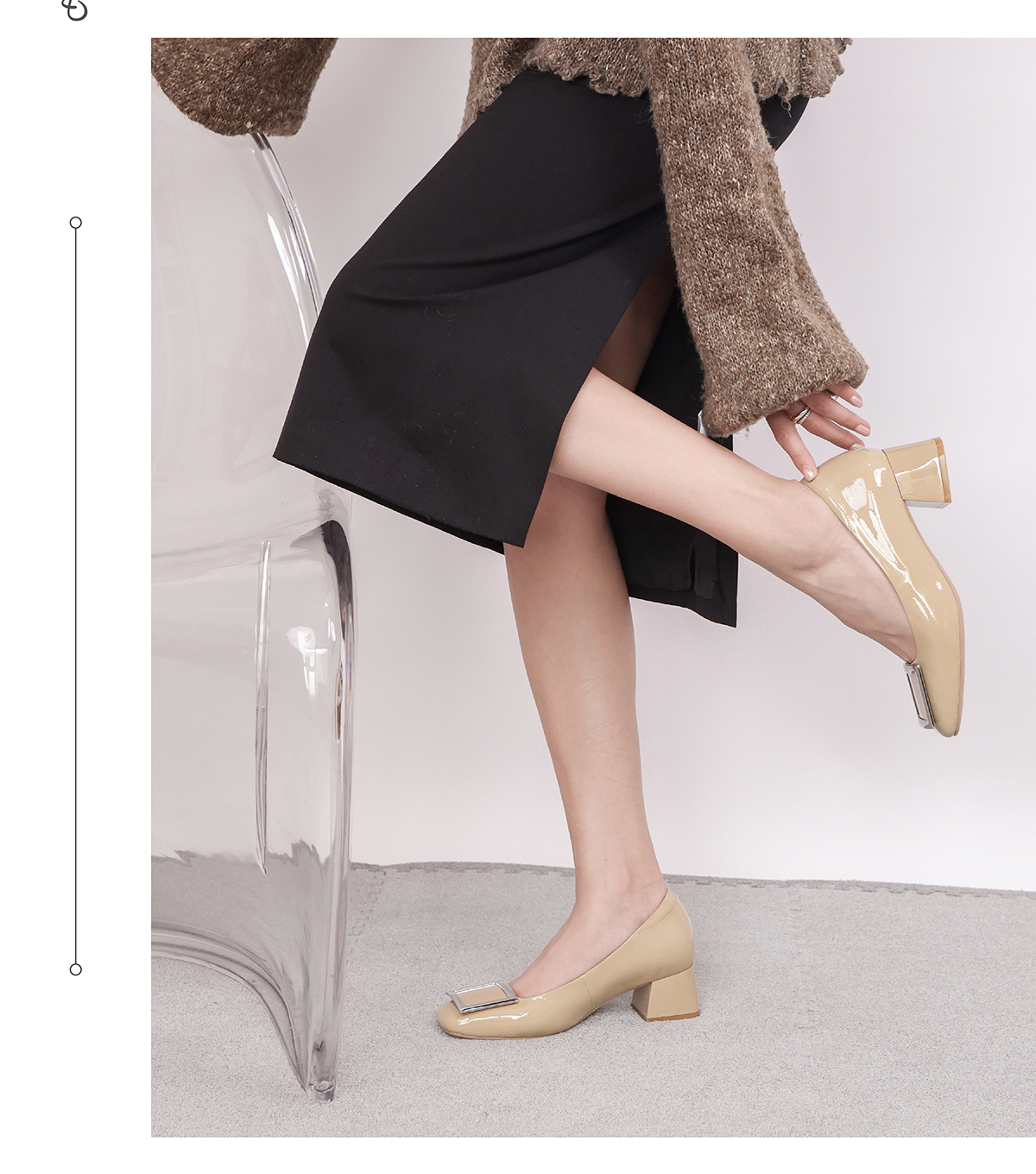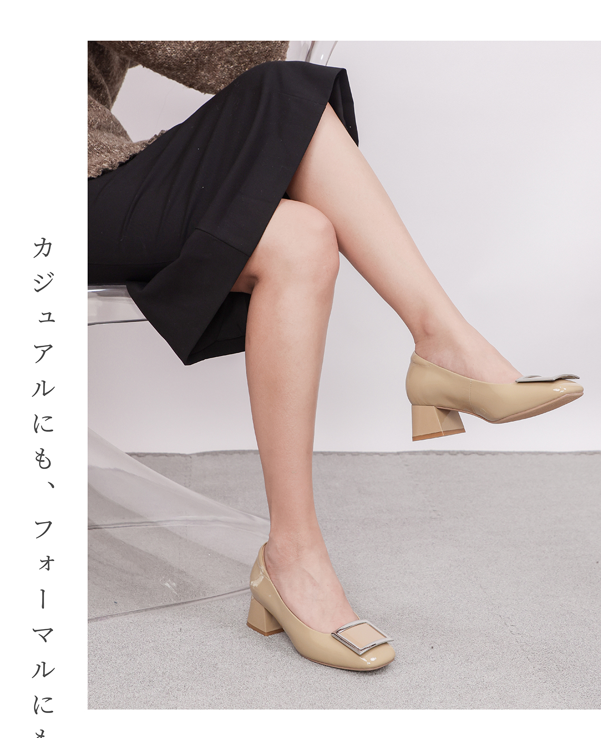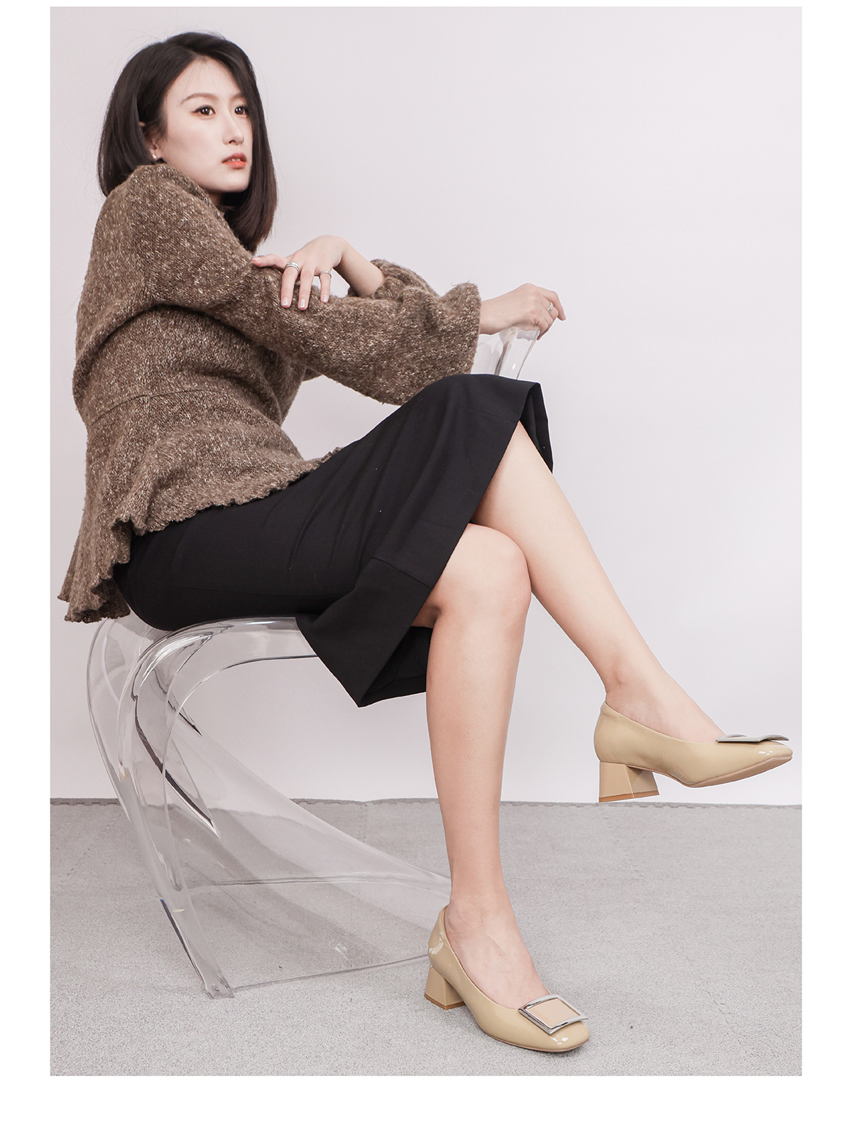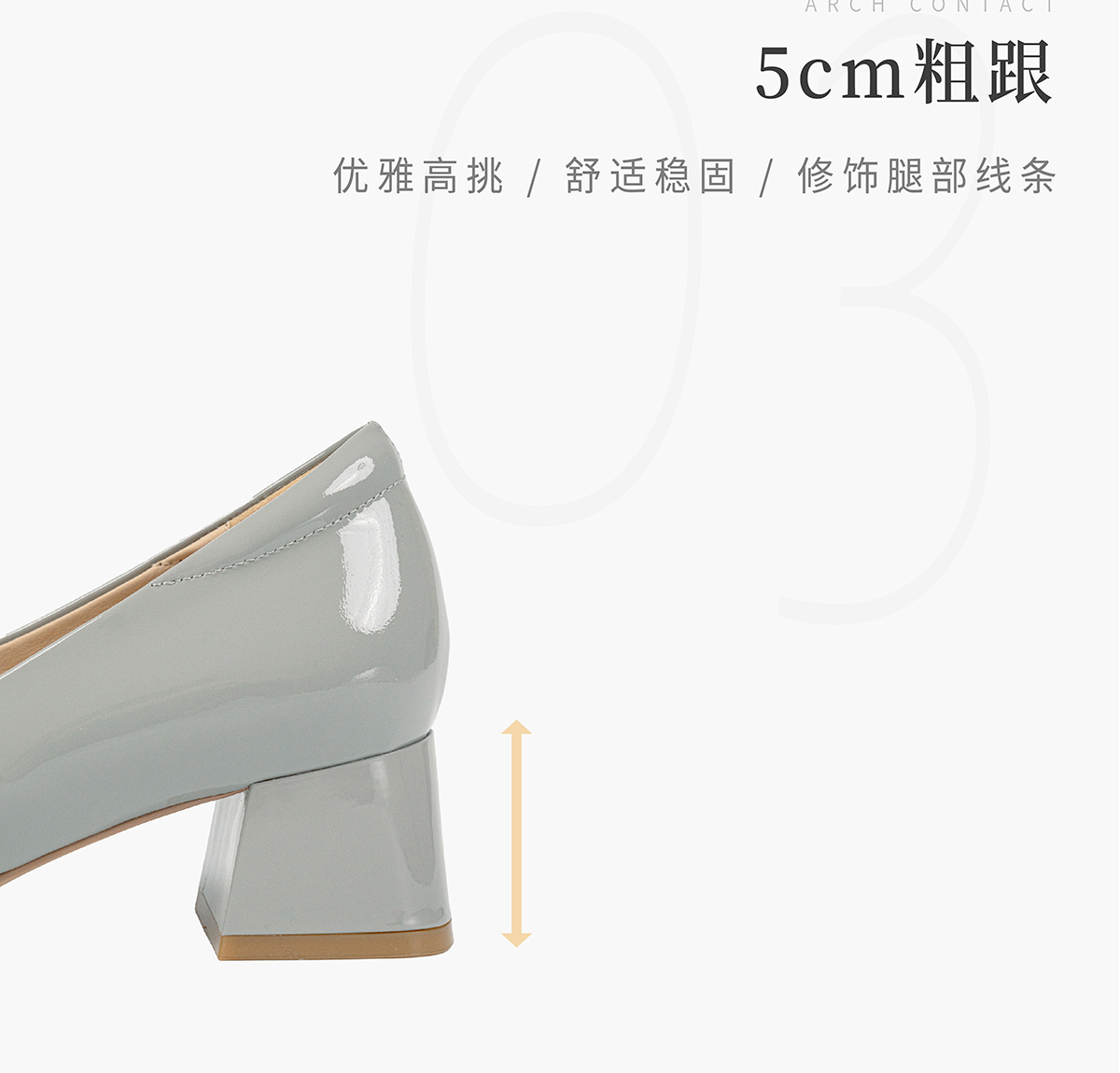 ARCHCONTACT安启美奈方头牛漆皮中跟单鞋52809