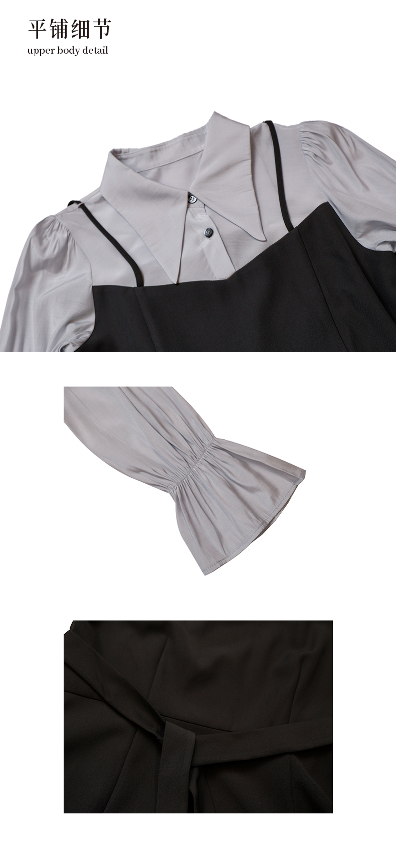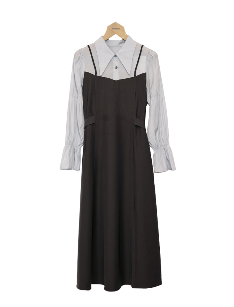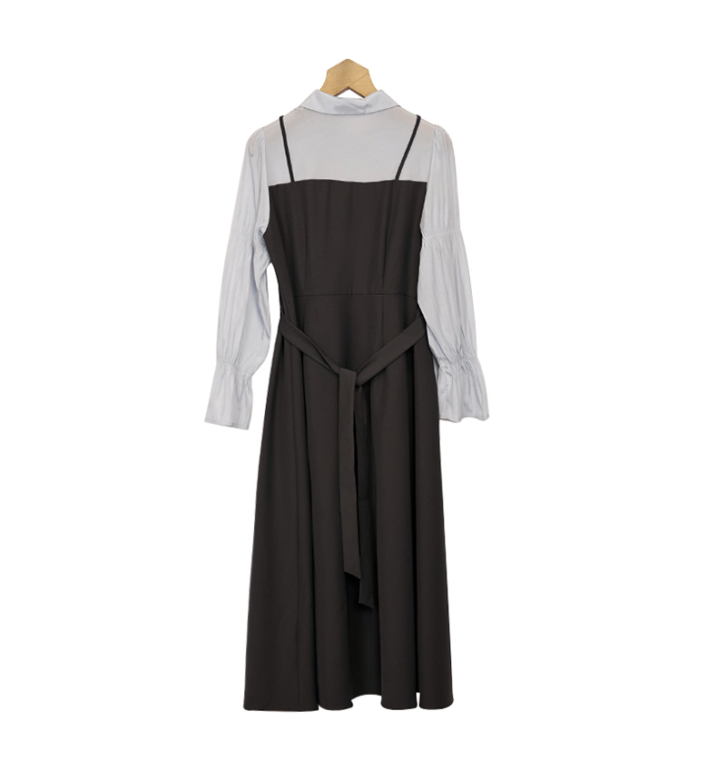 oldcolour衬衫连衣裙春季新款高腰拼接假两件长裙女GP11103637