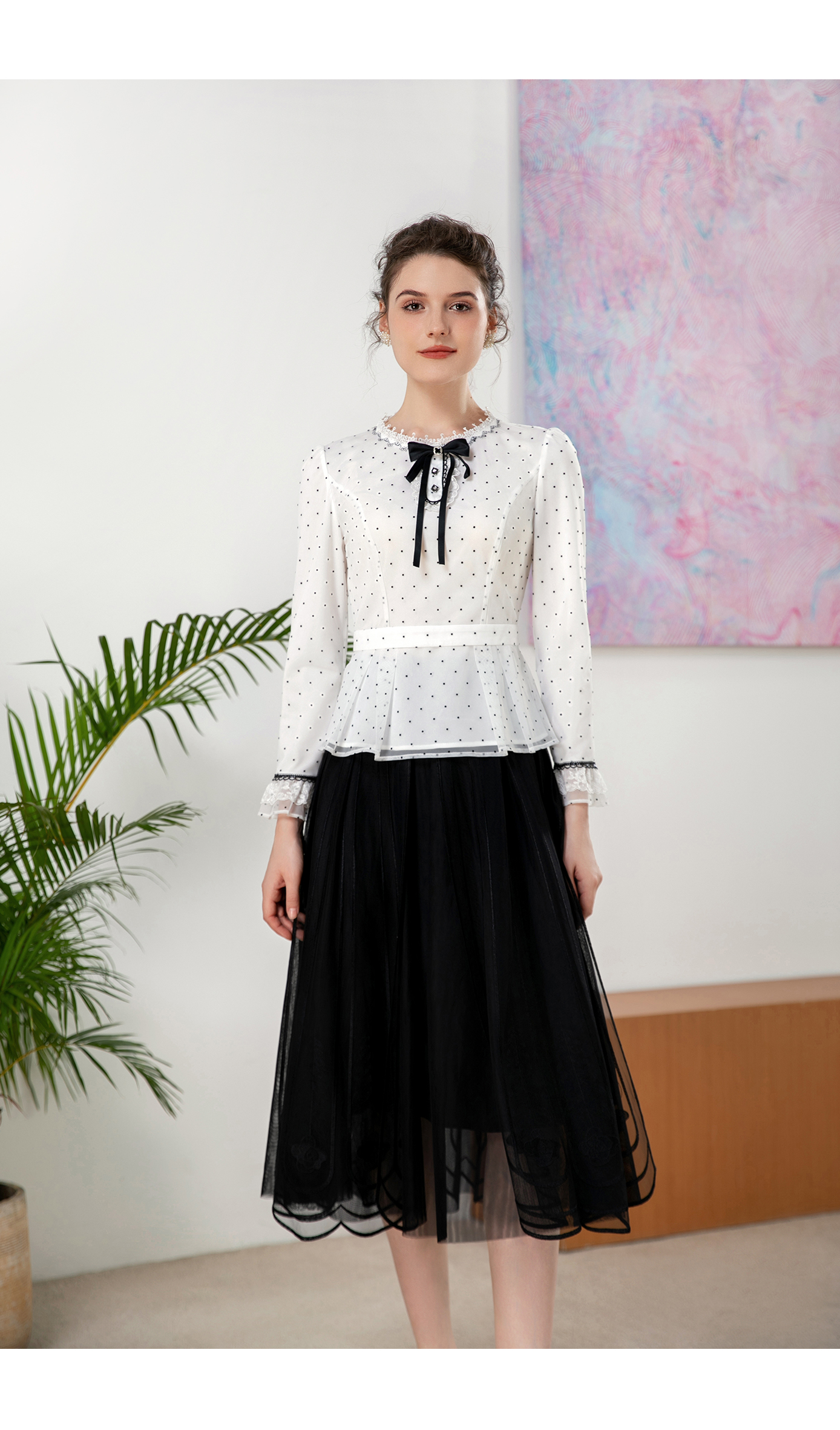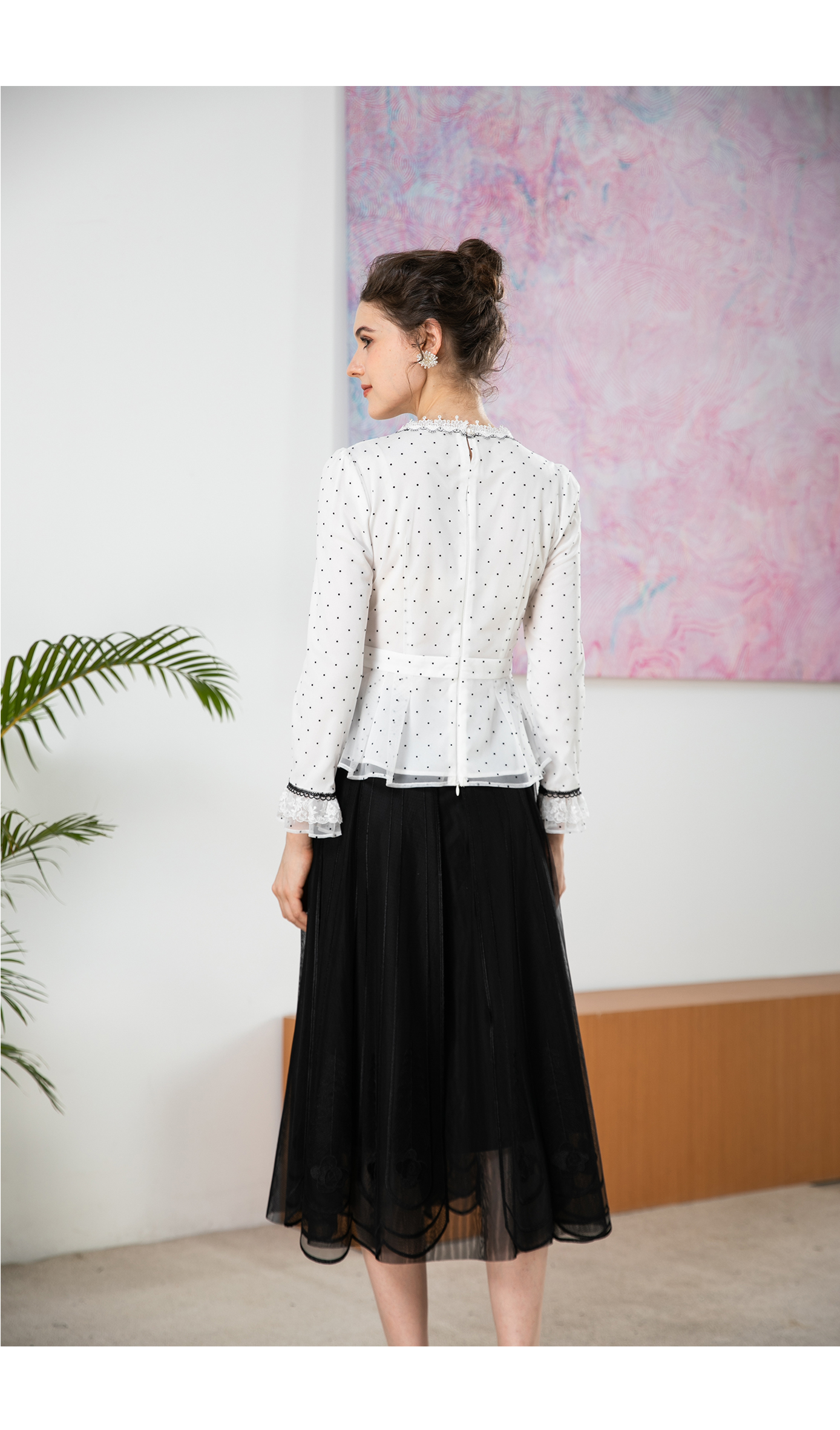 司歌蕾丝修身上衣圆领长袖复古套头T901294X