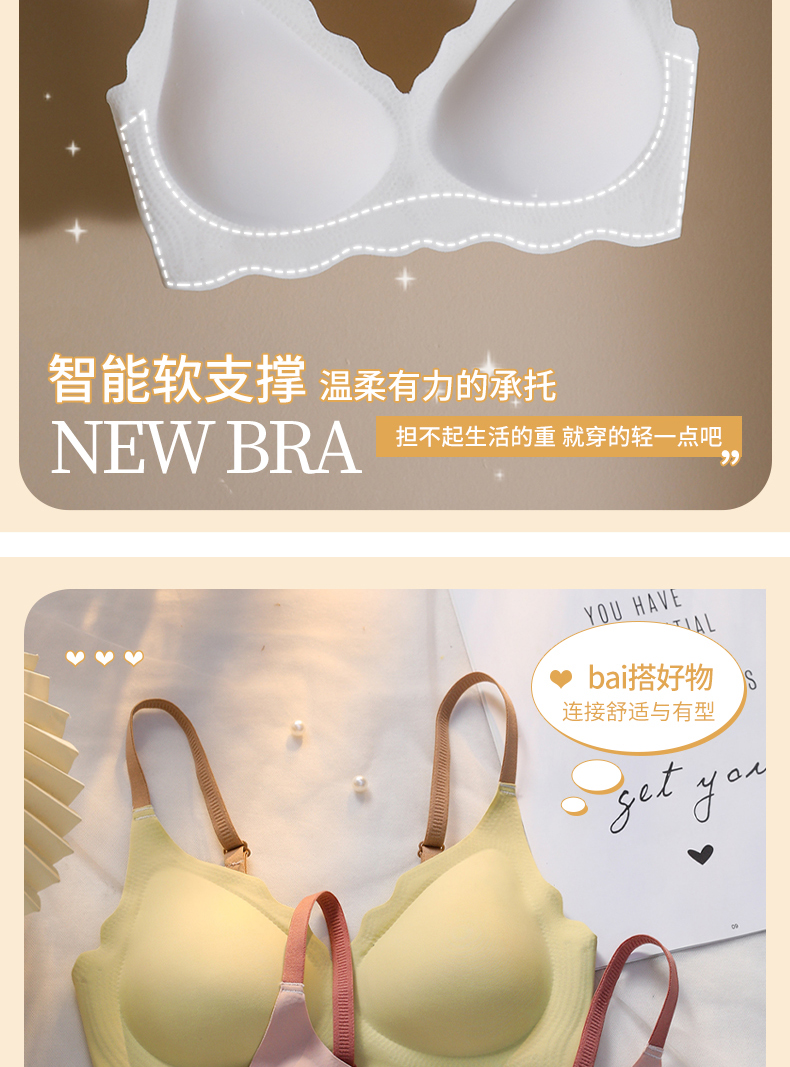 【 无痕智能软支撑】无痕撞色水晶果冻软支撑内衣 运动无钢圈 女士小胸聚拢薄款文胸