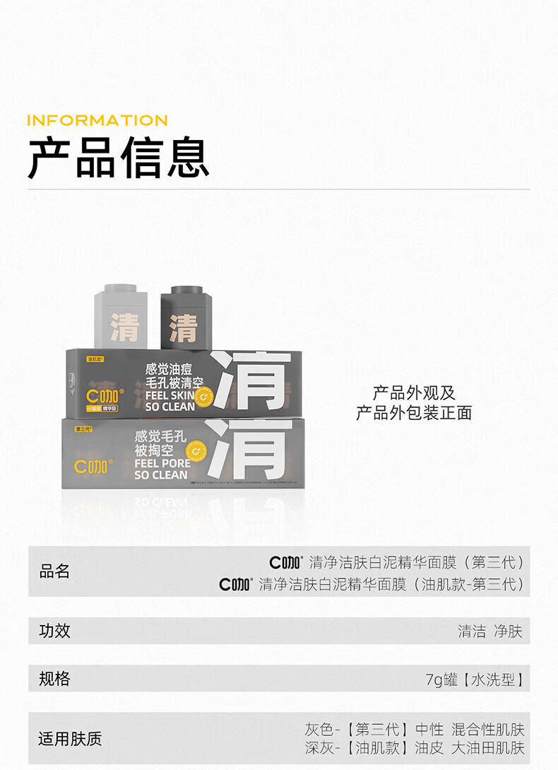 C咖清净洁肤白泥精华面膜(第三代) 7g 去黑头面膜女深层清洁泥膜涂抹式小罐膜