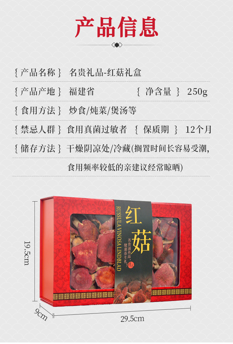 在菌屋 名贵礼品-福建野生大红菇礼盒装250g 健康好礼 企业团购 中秋礼盒