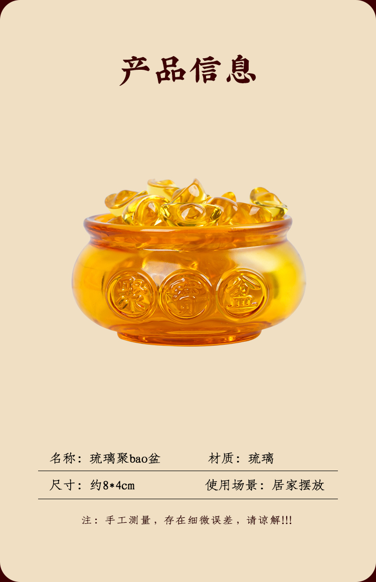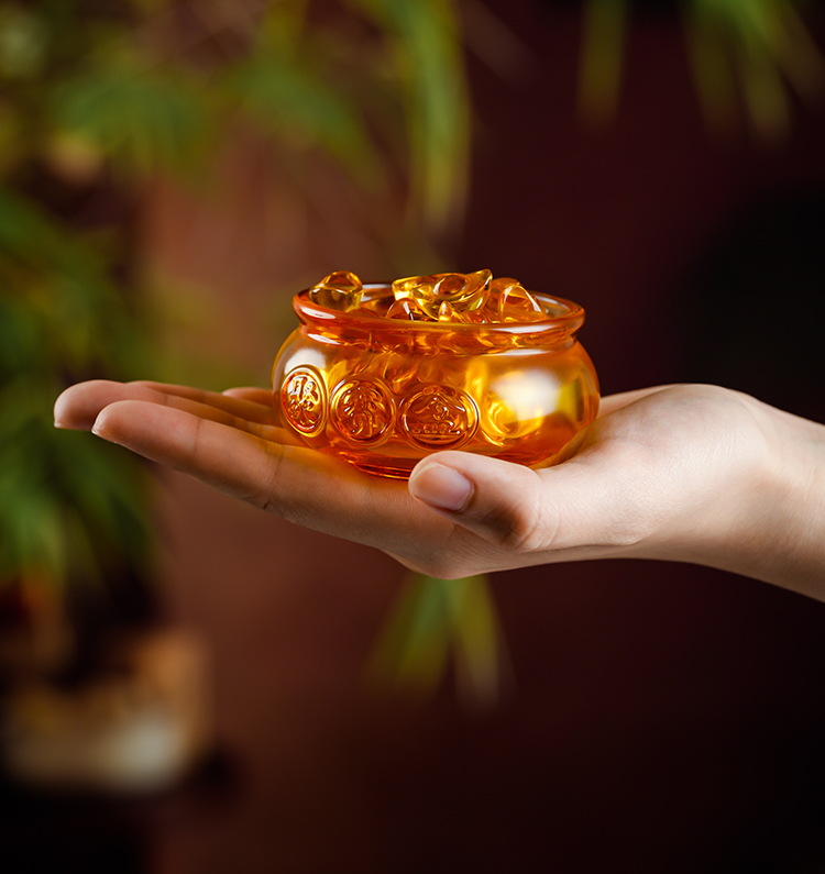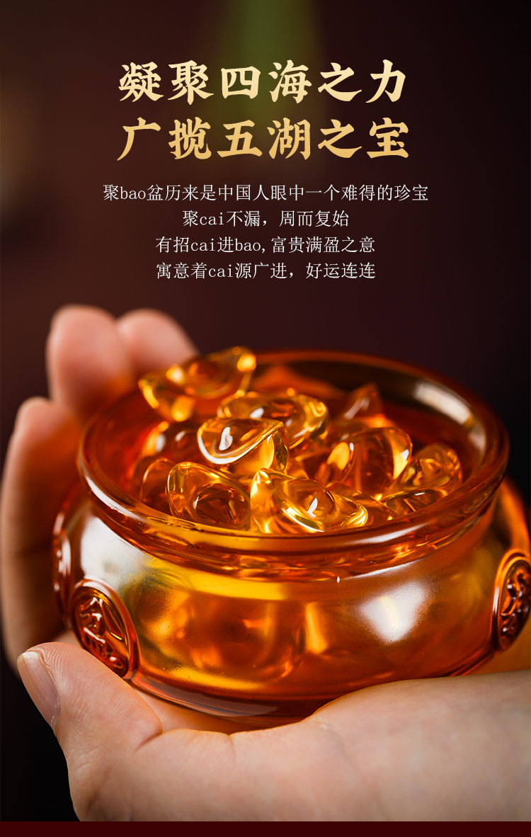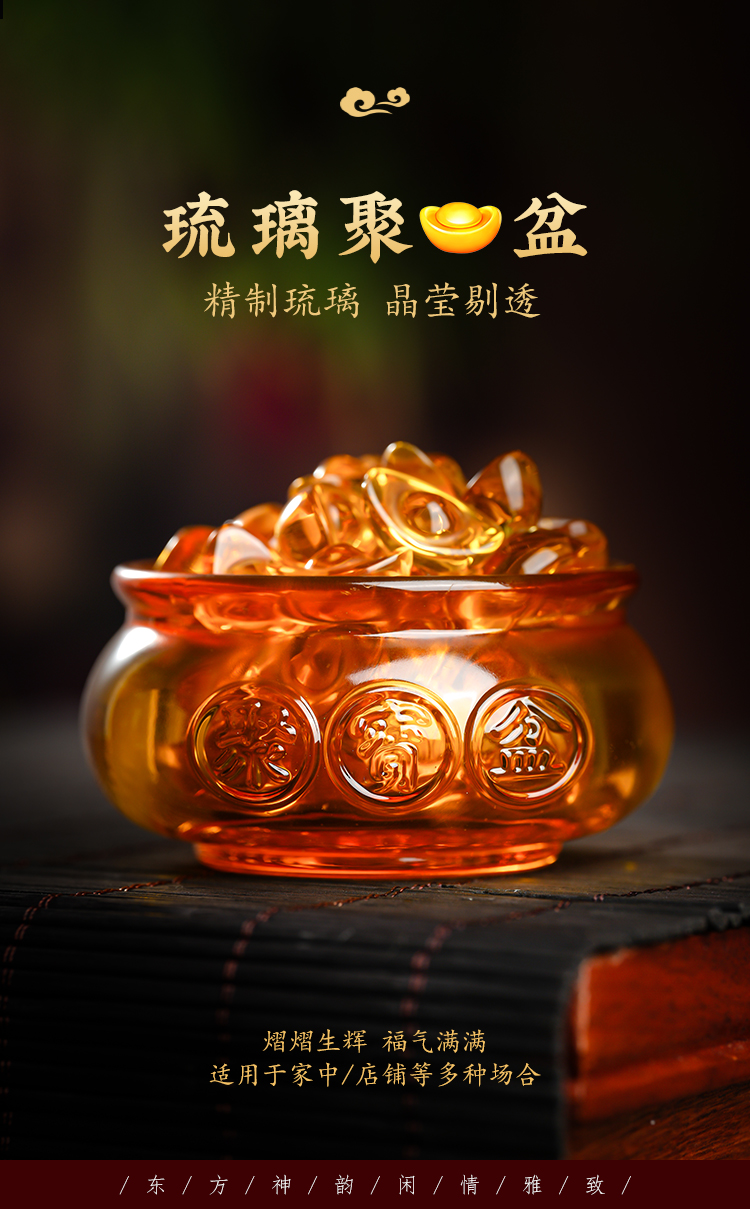 琉璃聚宝盆摆件金元宝工艺家居客厅酒柜酒店装饰礼品送礼