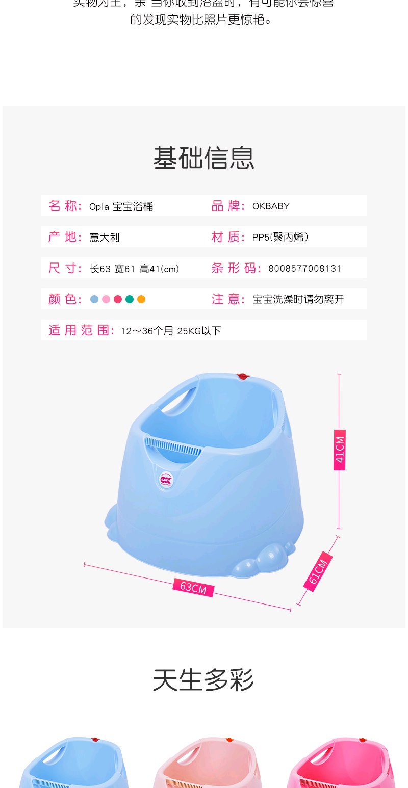 OKBABY儿童洗澡桶 大号可坐立加厚小孩沐浴盆宝宝泡澡桶 婴儿浴桶
