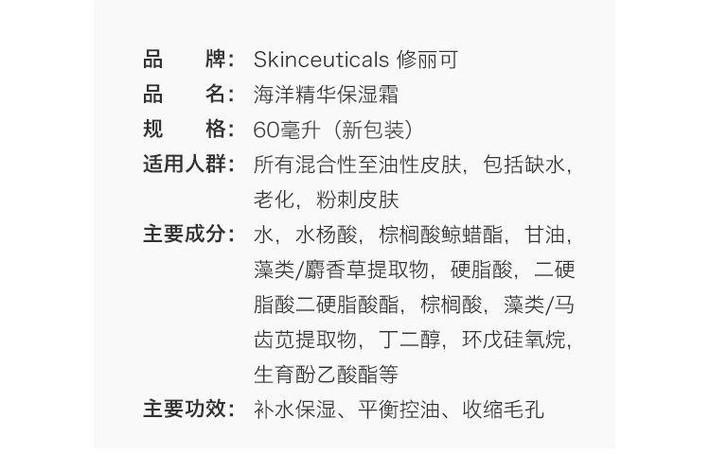 【修丽可】美国SKINCEUTICALA/修丽可青萃海洋保湿面霜60ml