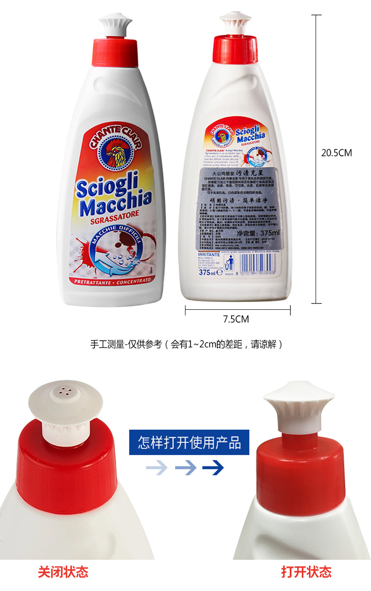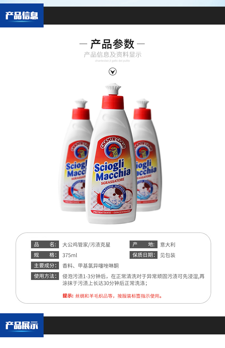 意大利进口大公鸡衣领净去污去黄喷雾型去渍剂衣物袖口除渍精【GPQ】
