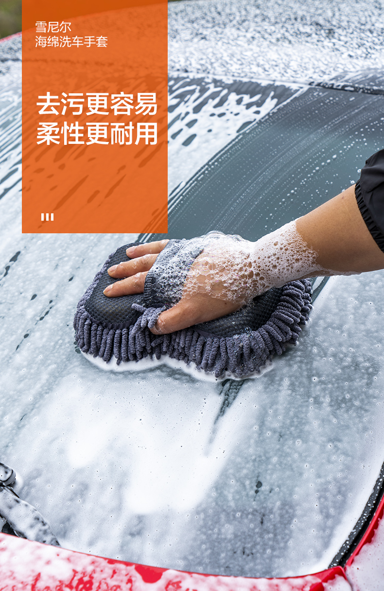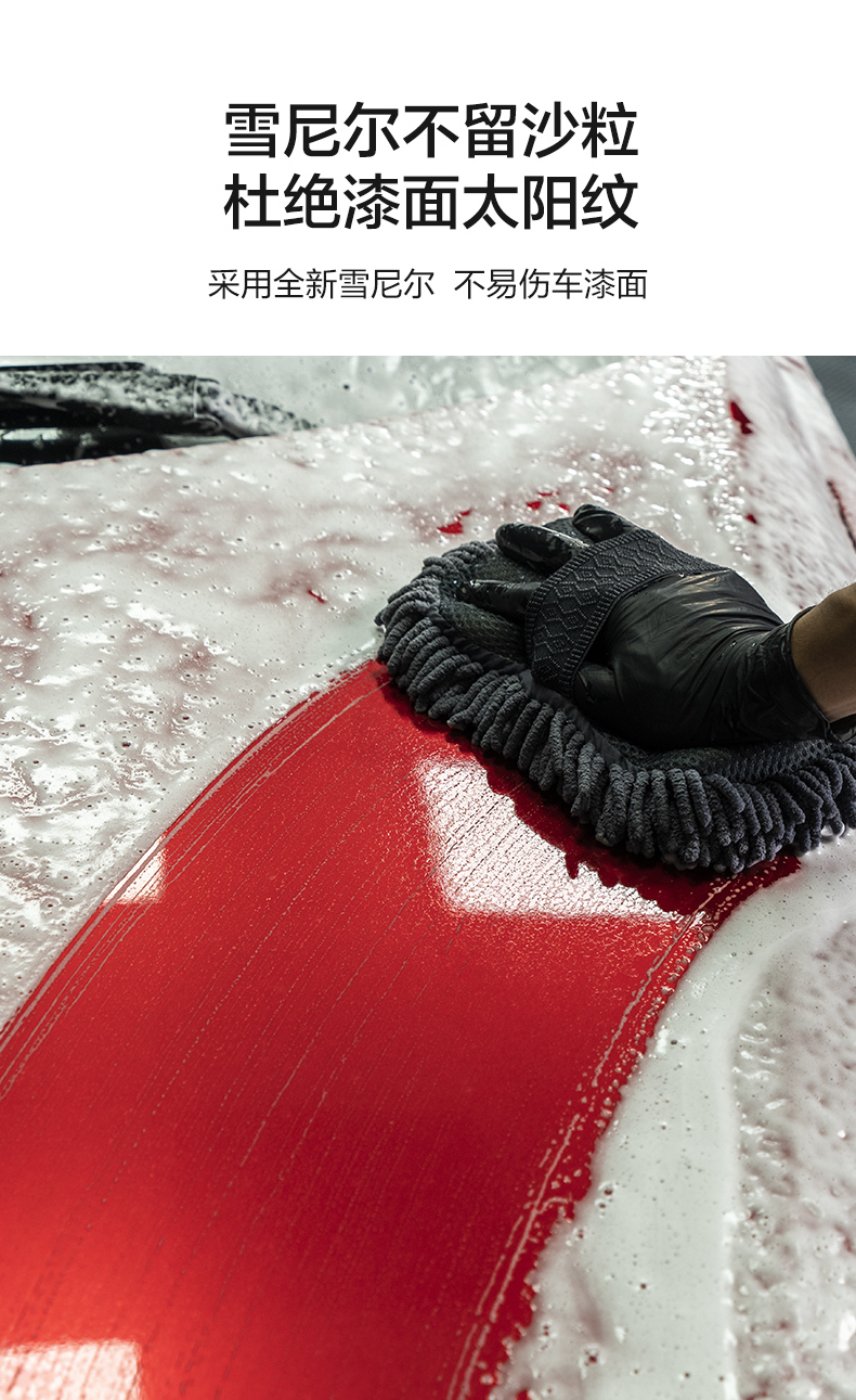 洗车手套毛绒羊毛雪尼尔抹布熊掌不伤车擦车打蜡海绵