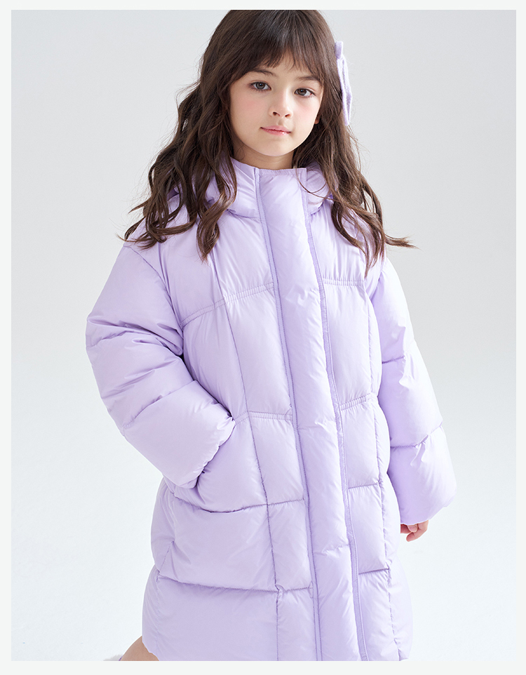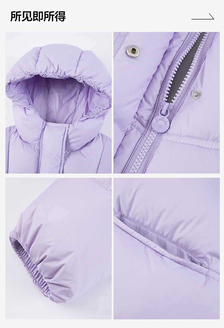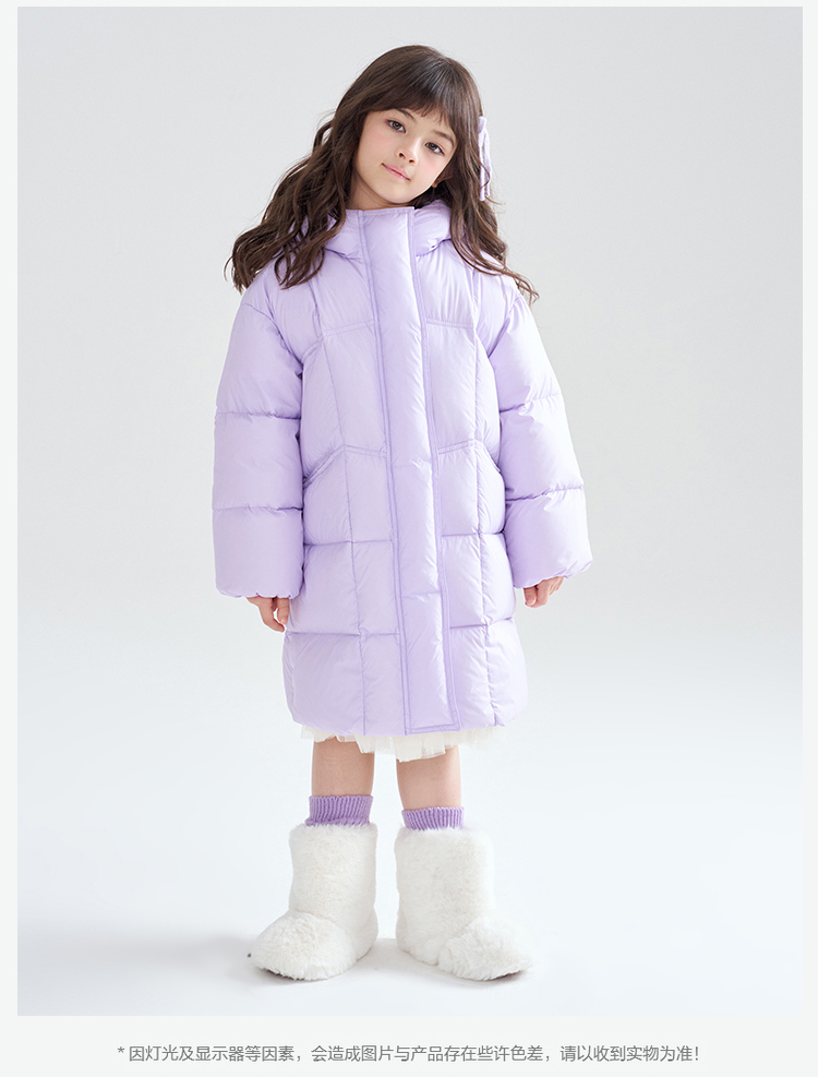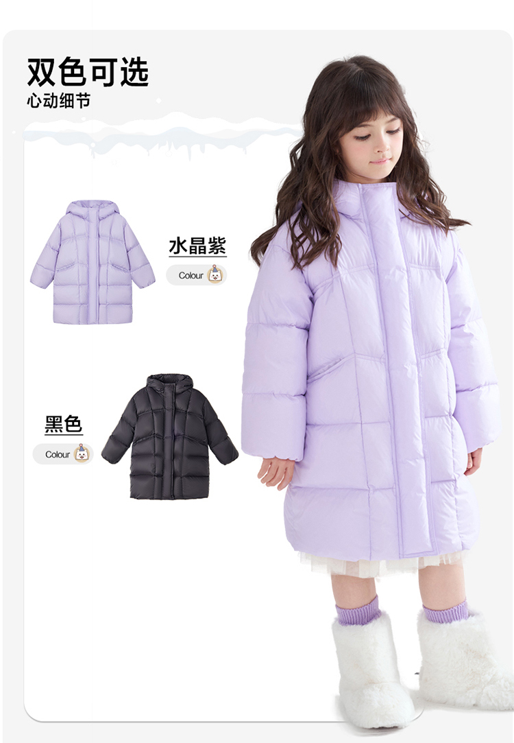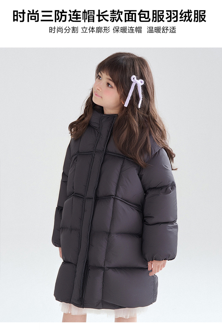 笛莎Deesha 2025冬季女童时尚三防连帽长款面包服羽绒服