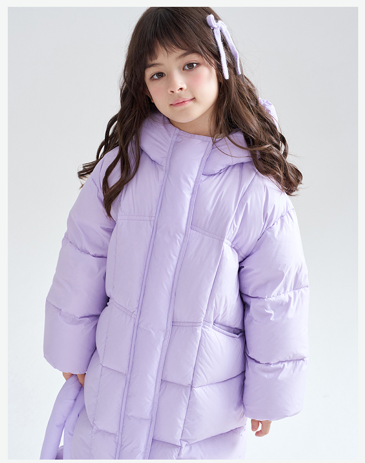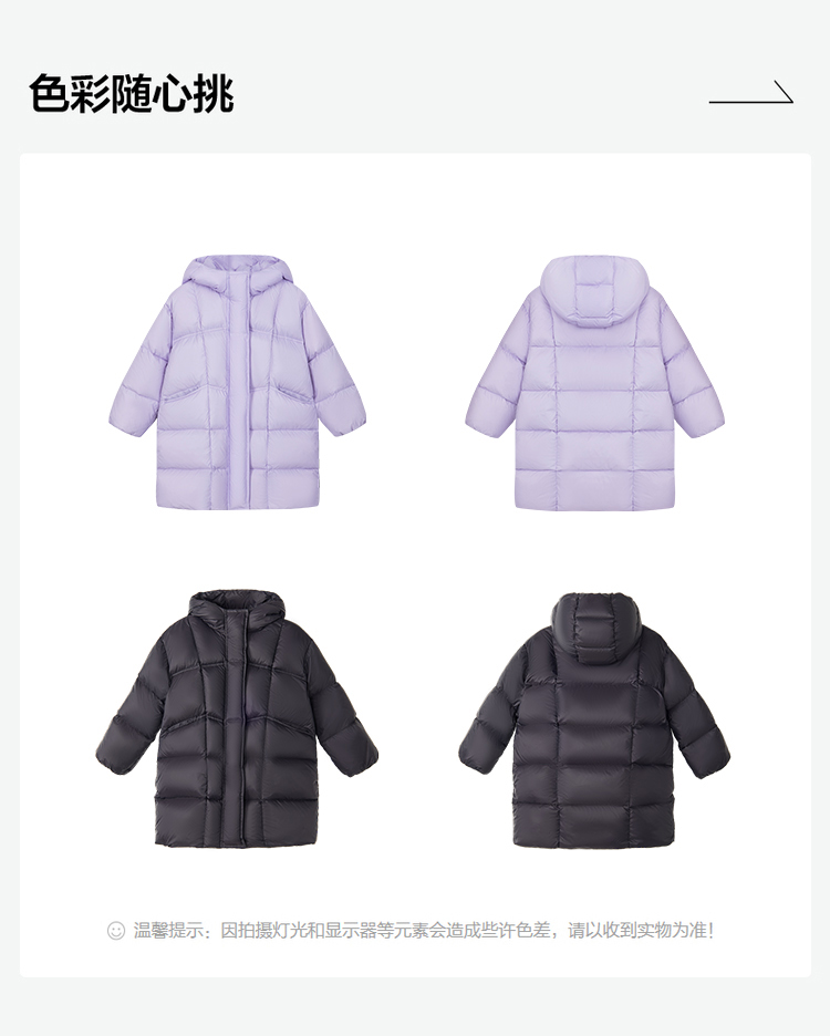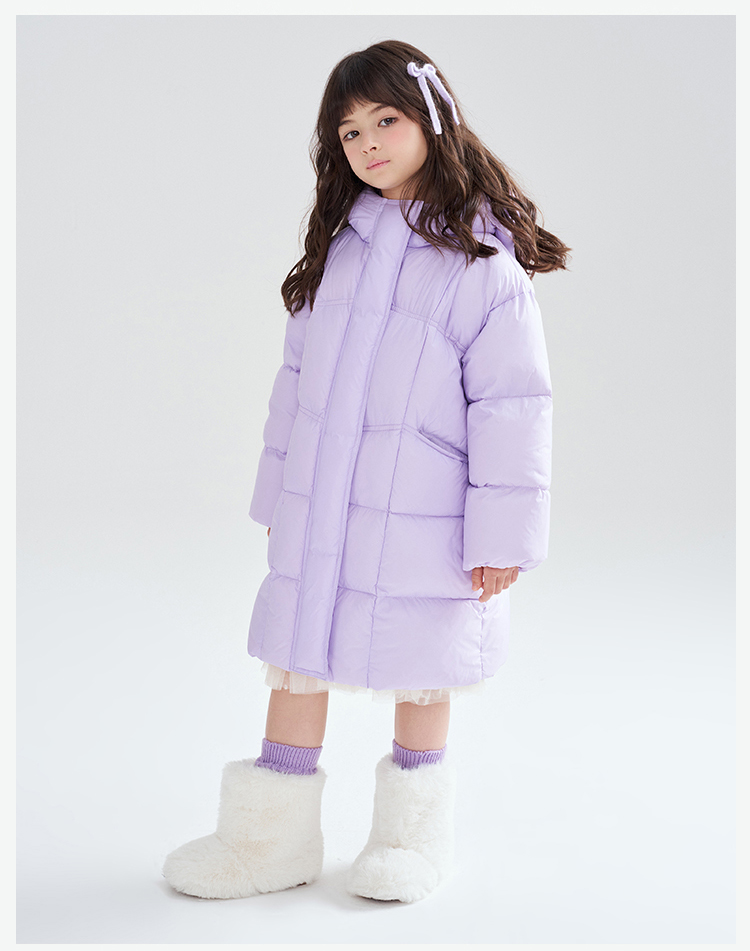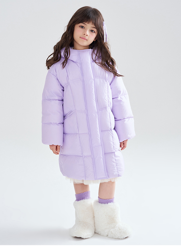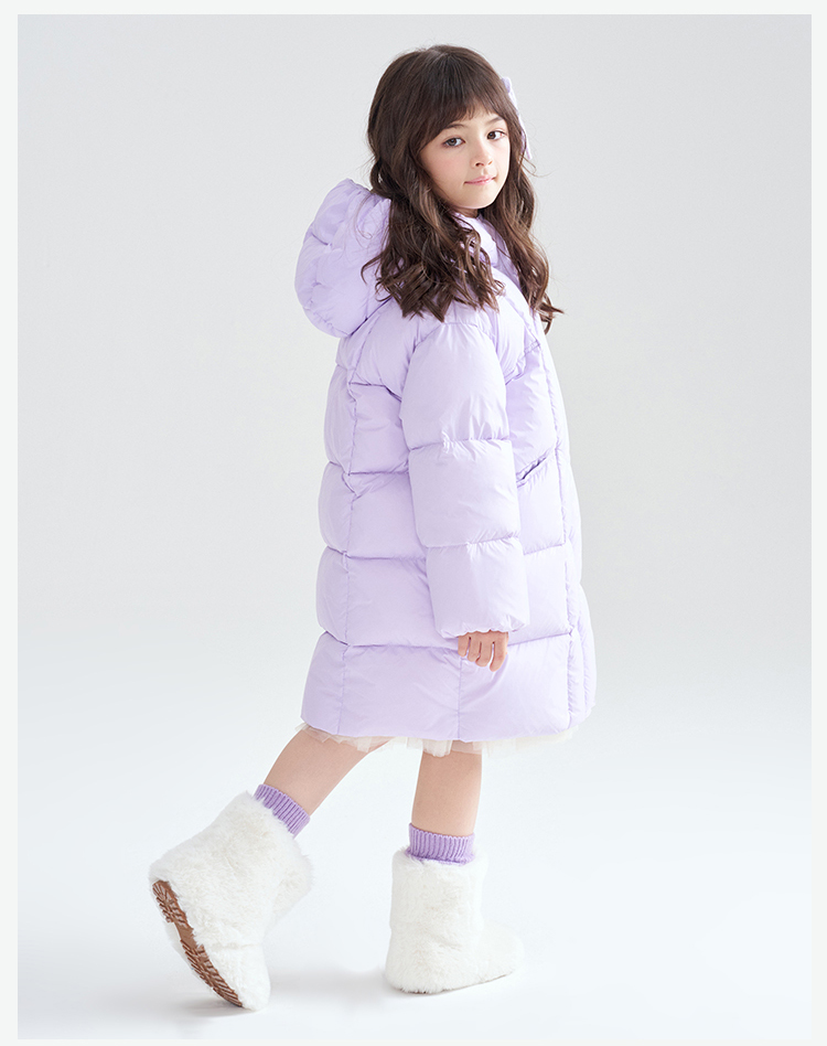 笛莎Deesha 2025冬季女童时尚三防连帽长款面包服羽绒服