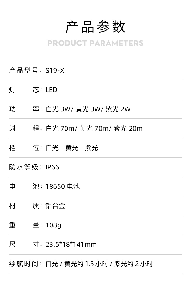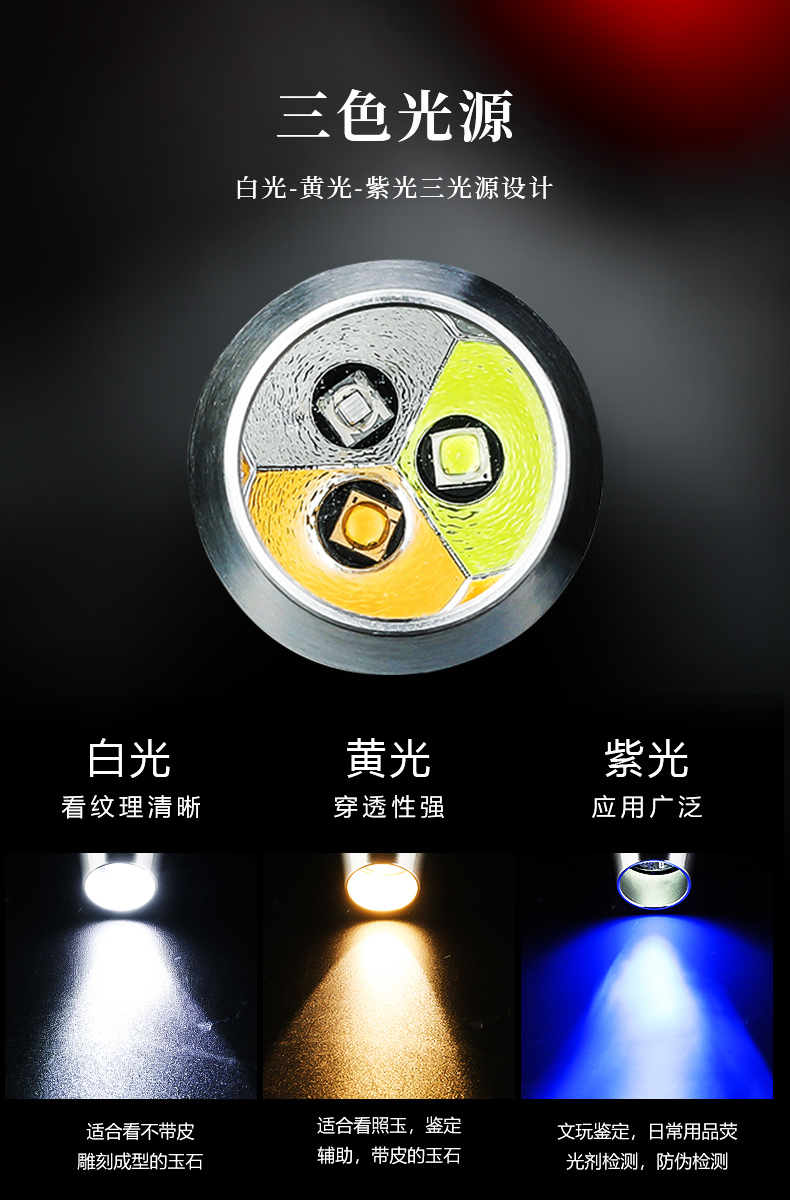 SUPERFIRE神火S19-X照玉石手电筒白黄紫三色光源鉴石文玩古董照看翡翠荧光剂检测手电