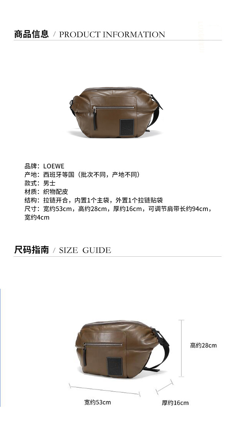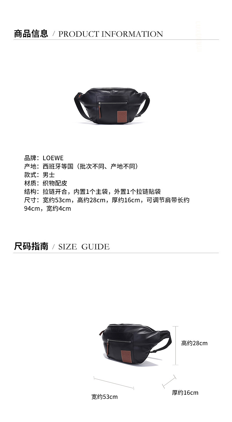 【现货秒发】LOEWE/罗意威 男士织物/配皮XL胸包斜挎包腰包 B687C60X01
