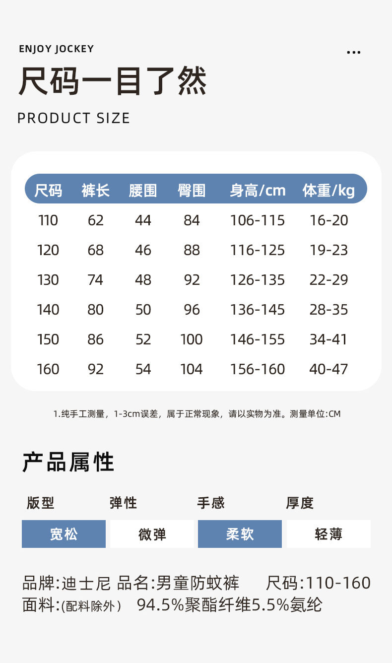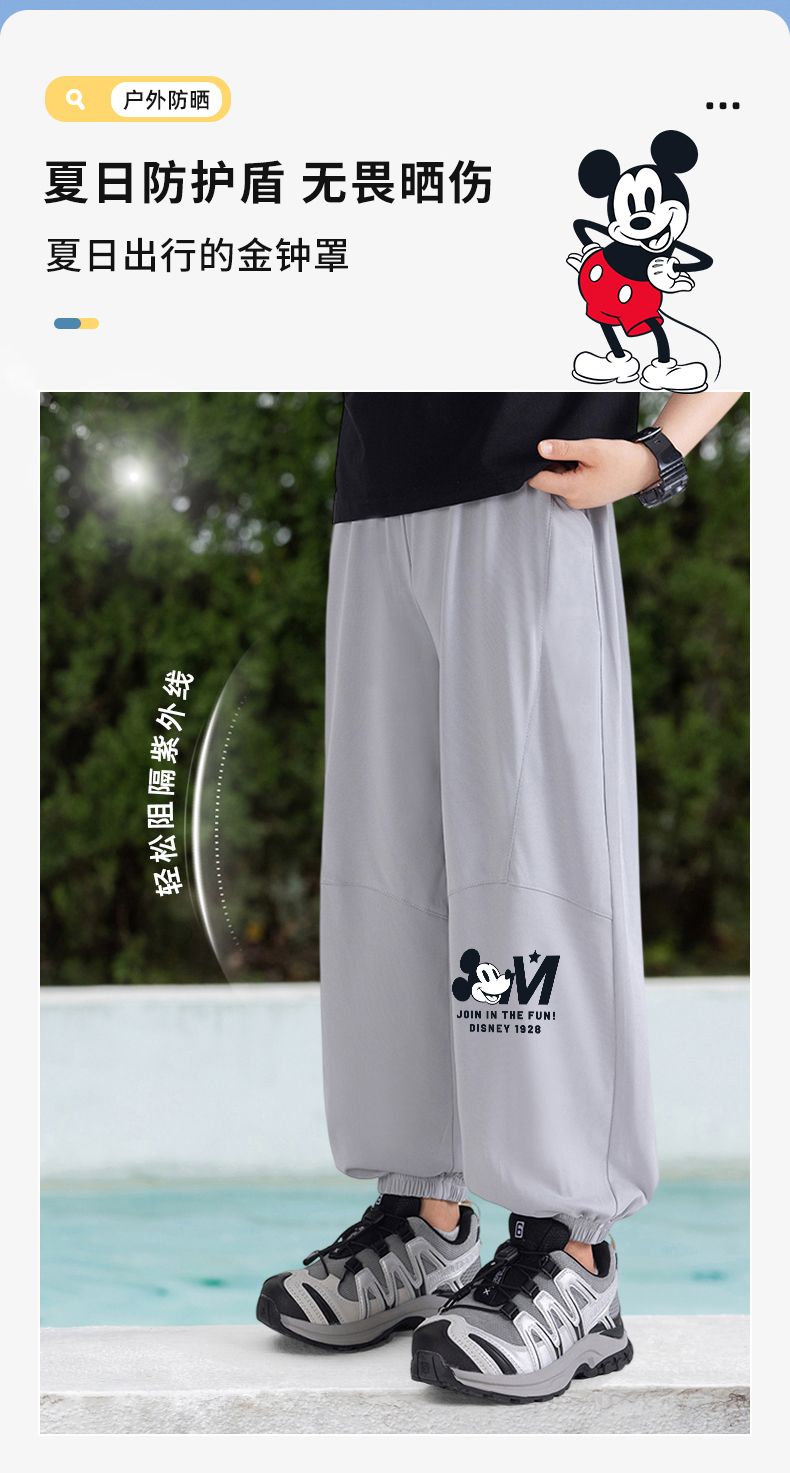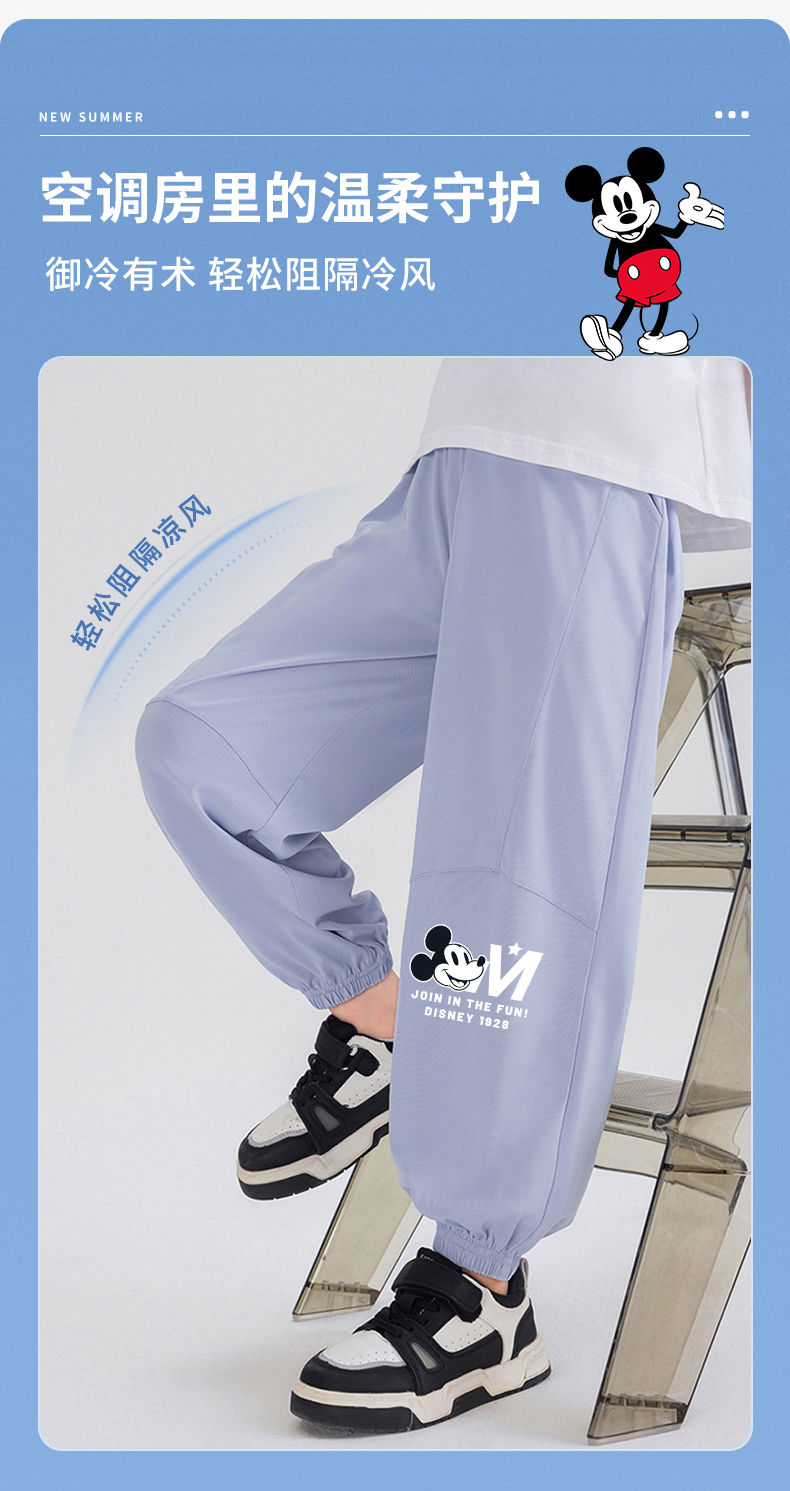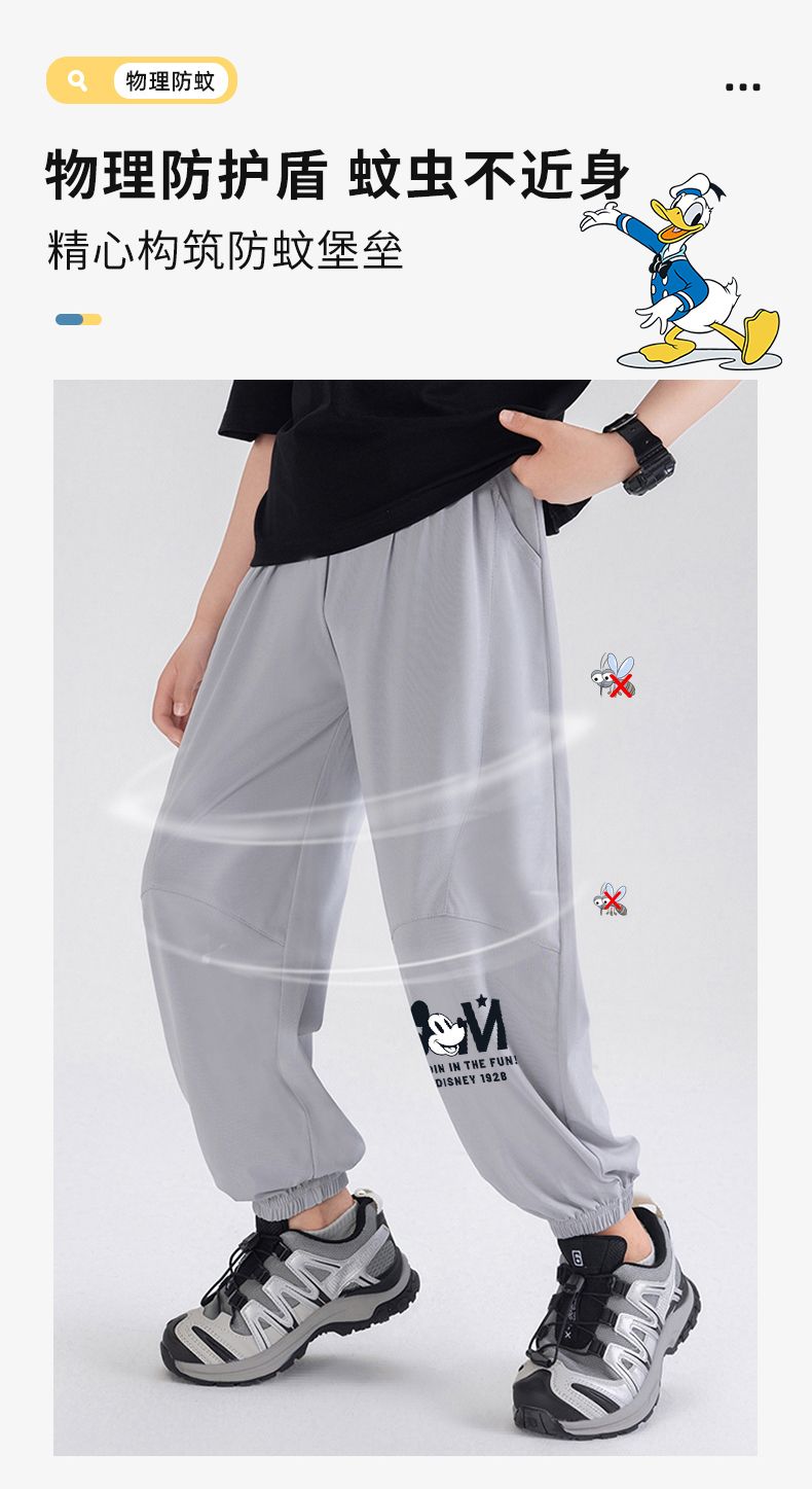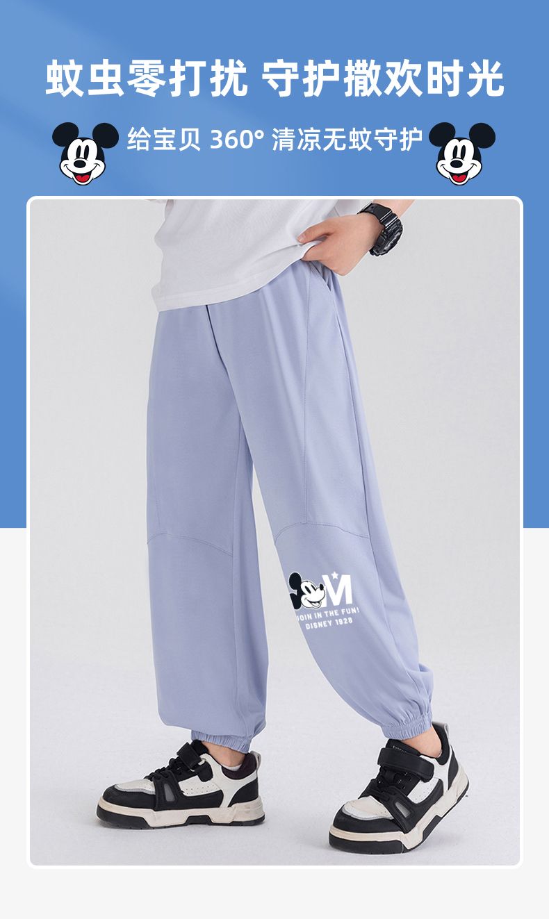 迪士尼男童防蚊裤夏季薄款儿童速干裤冰丝防蚊裤男大童运动裤夏装