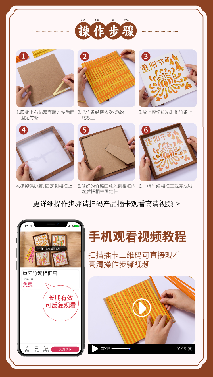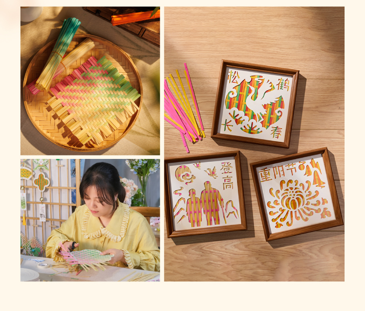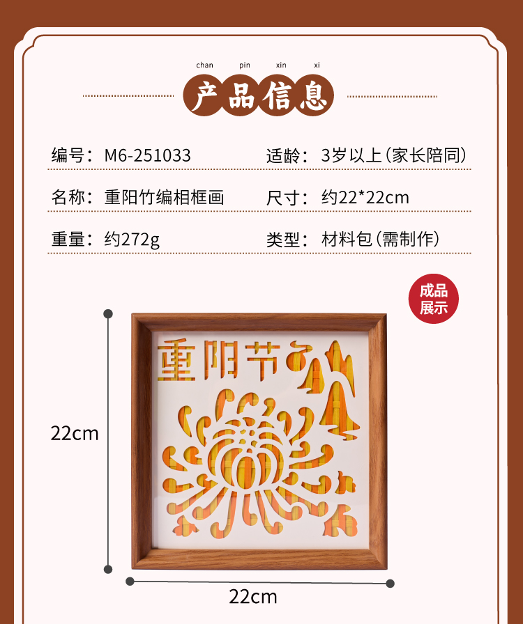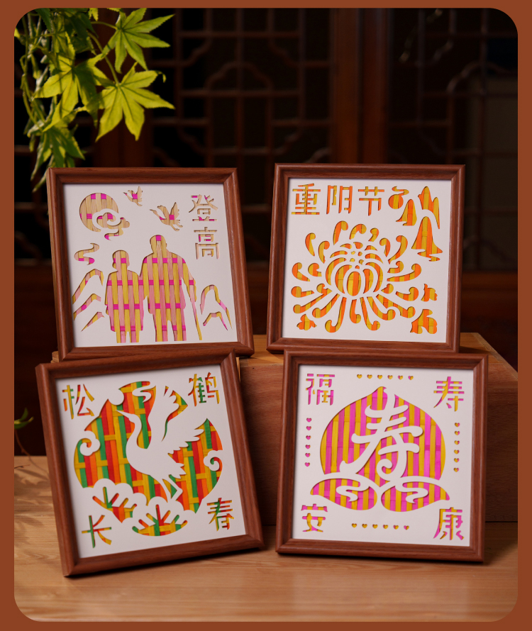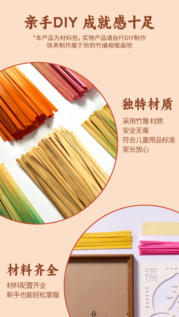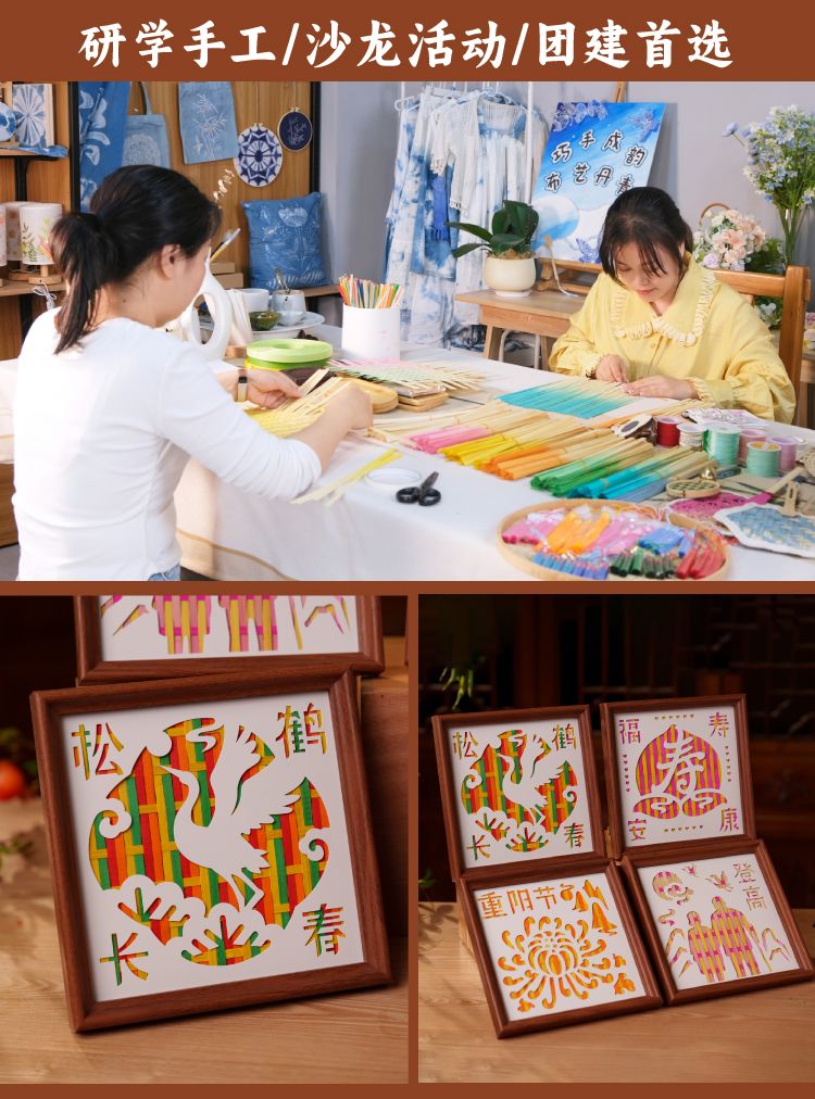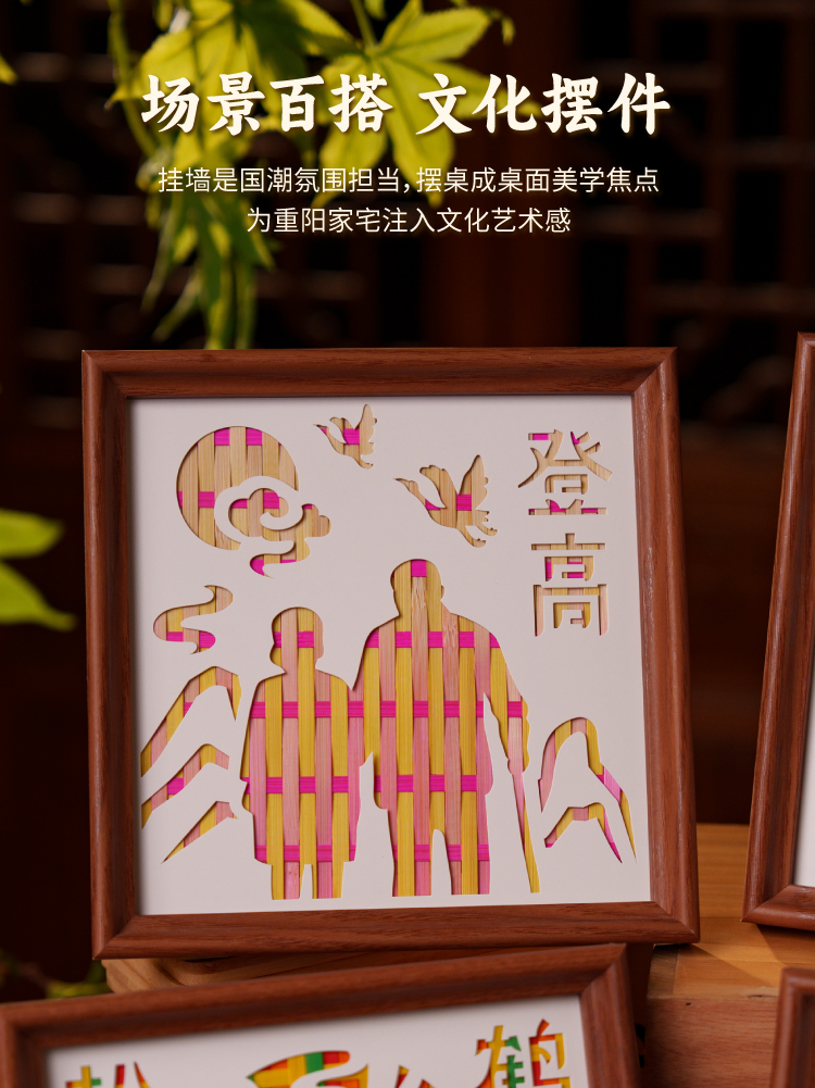 重阳节敬老活动竹编相框画手工diy摆件儿童制作材料包幼儿园团建