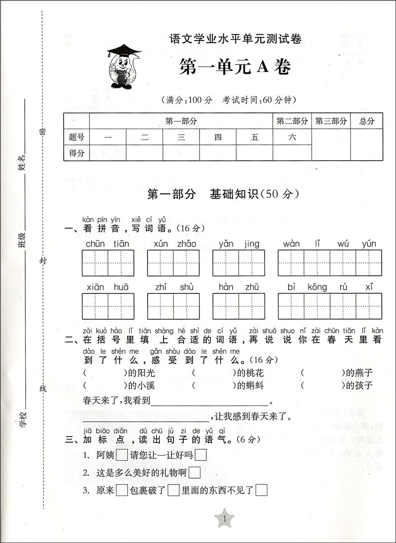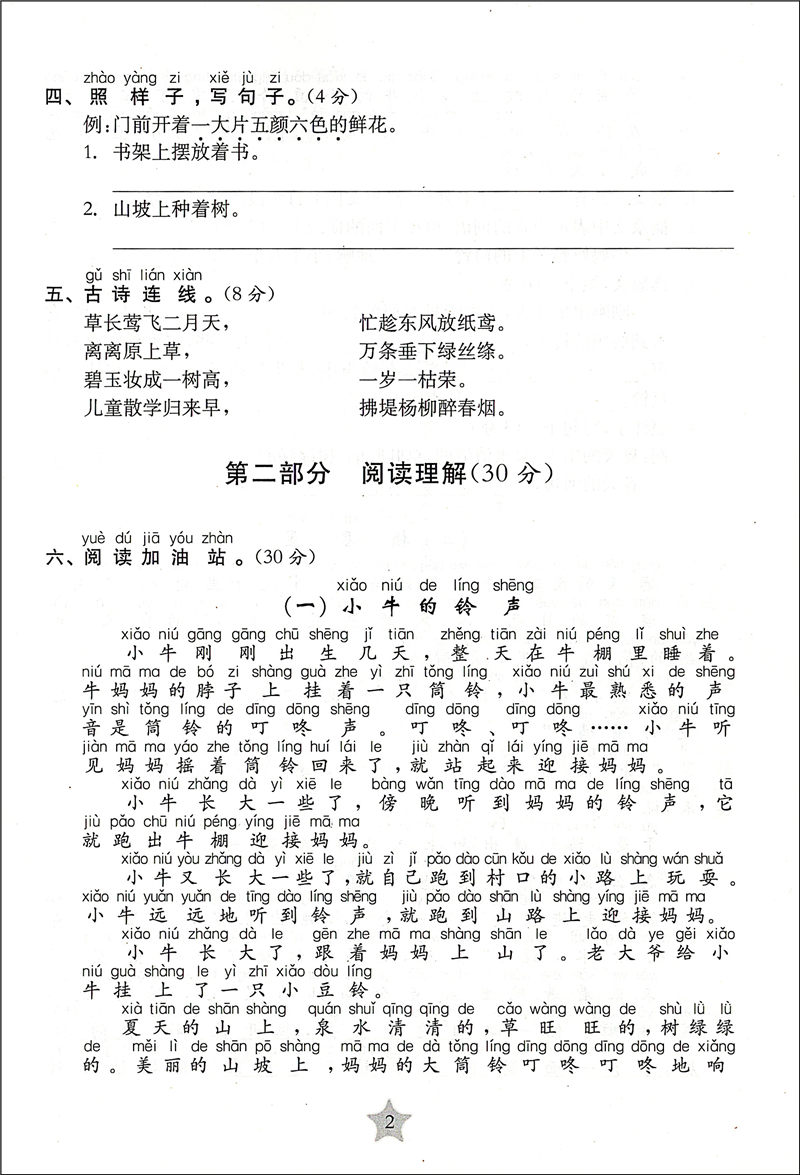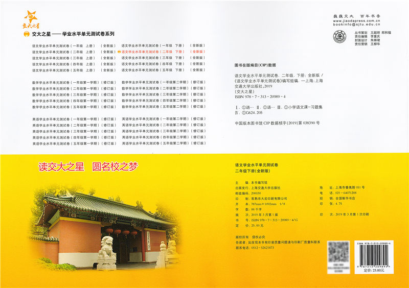 交大之星 学业水平单元测试卷 语文 2/二年级(下册)第二学期 全新版 与人教版统编教材配套使用