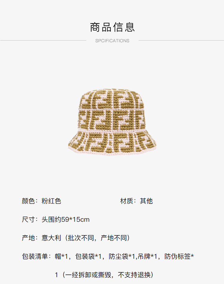 FENDI 芬迪 女士粉红色百搭渔夫帽 FXQ688 ADRH