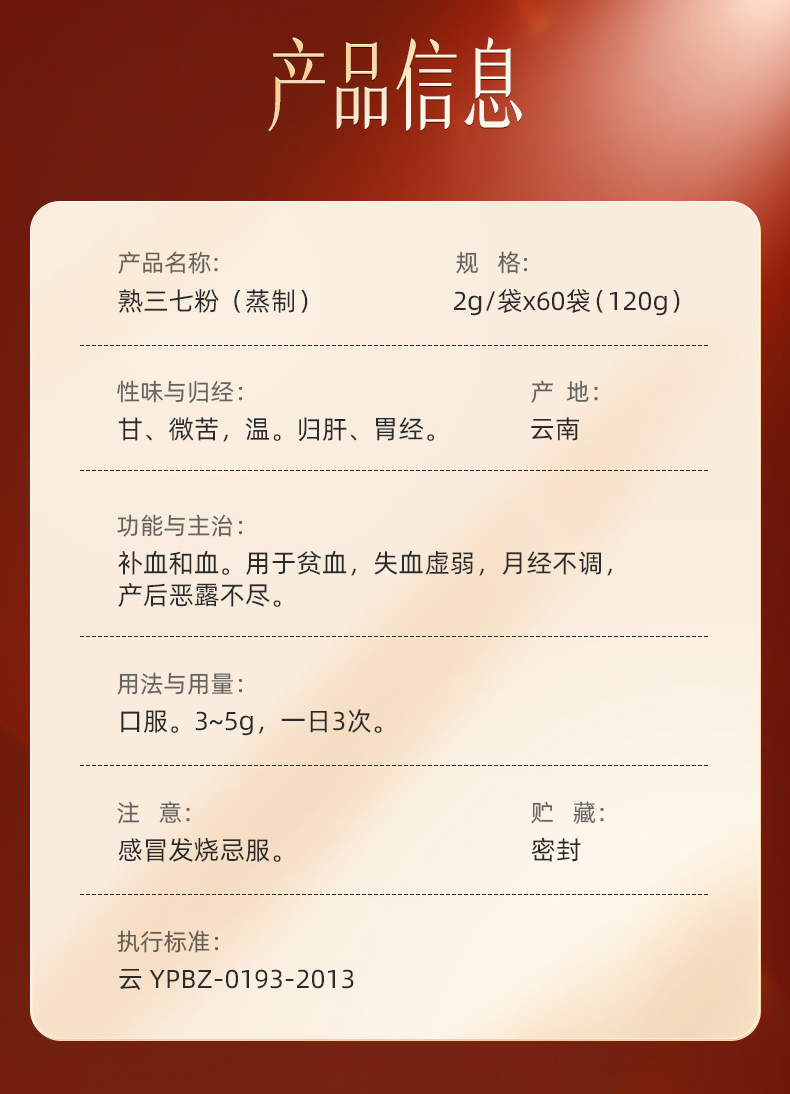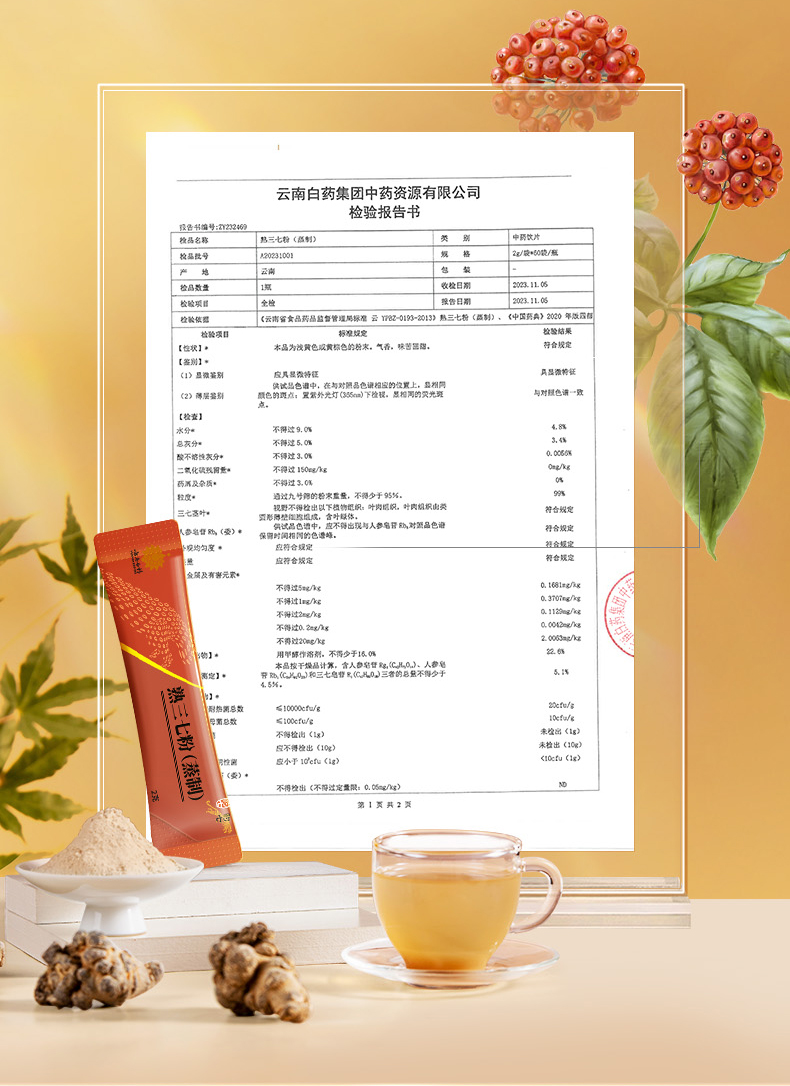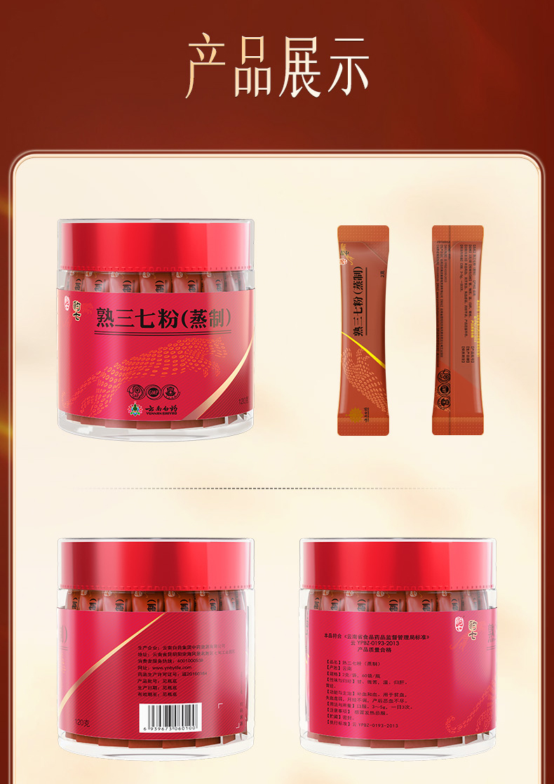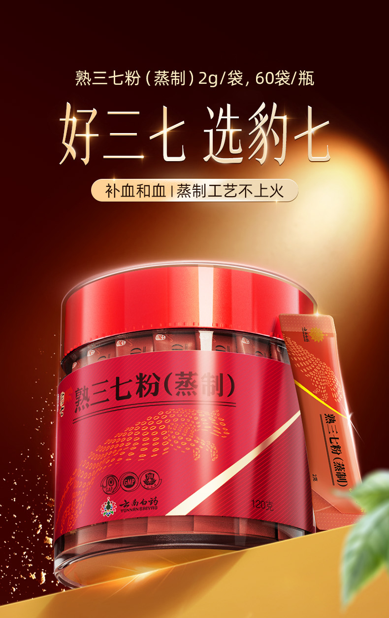 【官方正品】云南白药豹七熟三七粉2g*60袋蒸制工艺补血三七甄选送礼道地文山三七