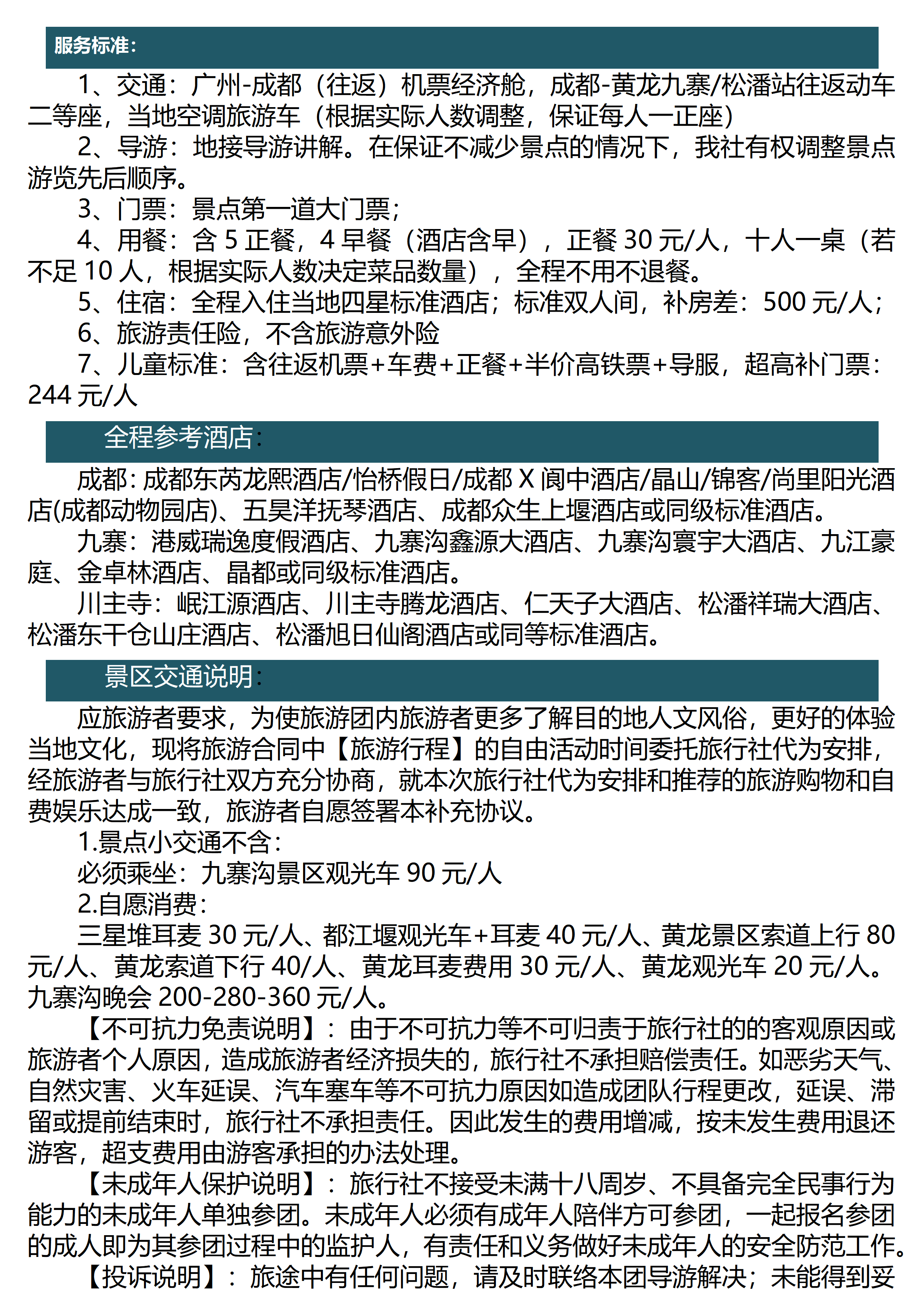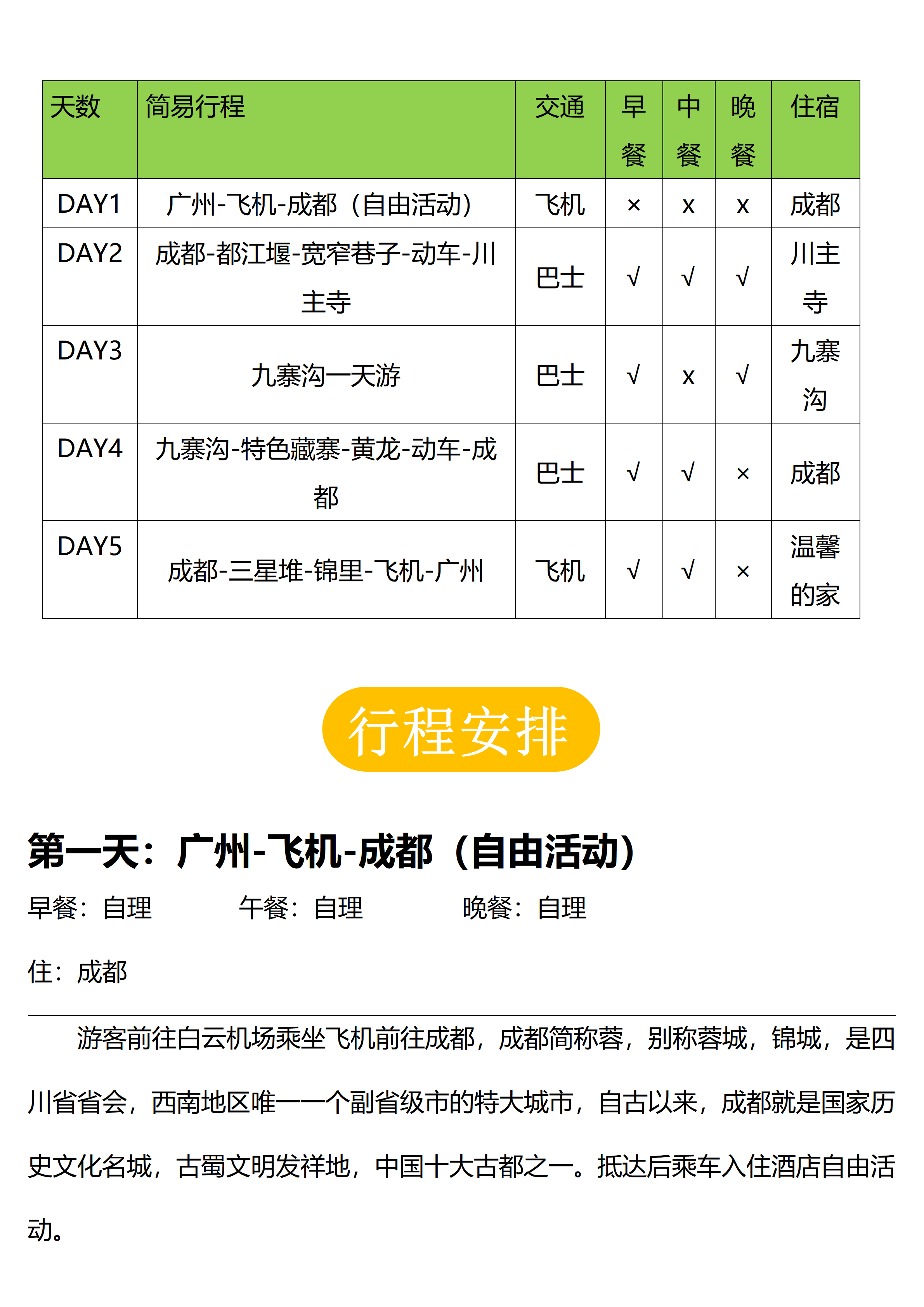【全景九寨五天游】