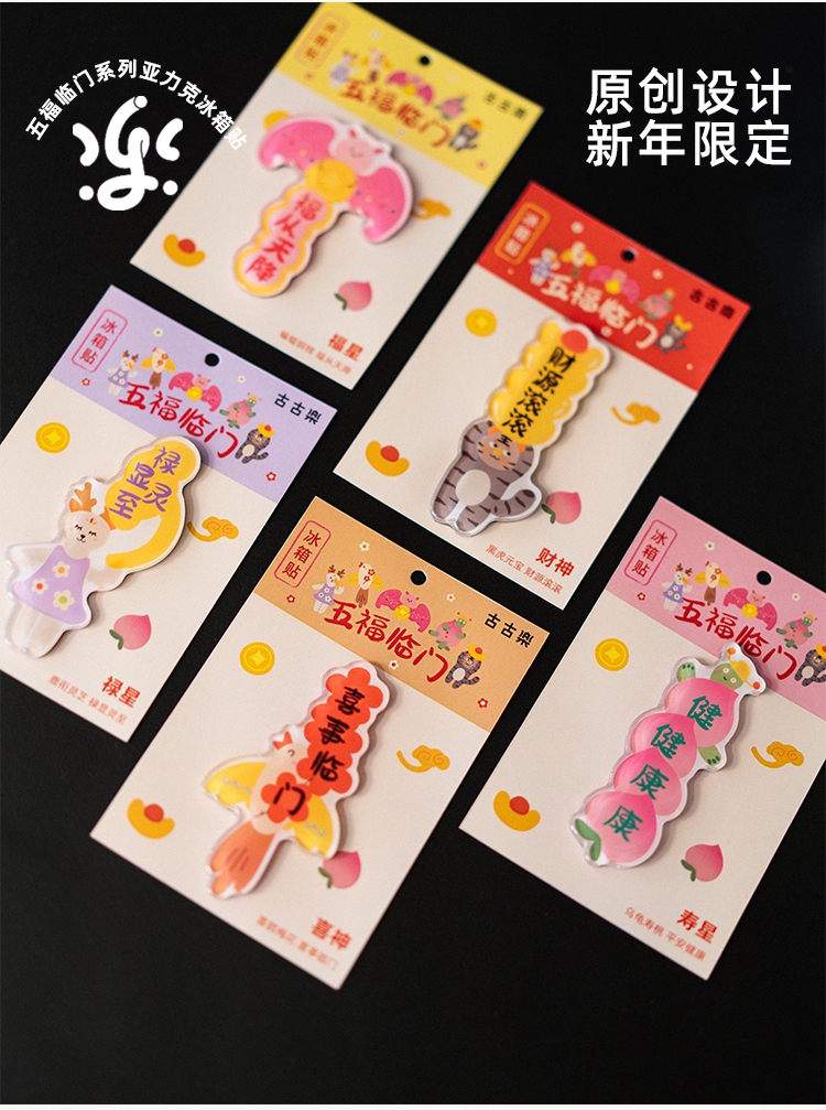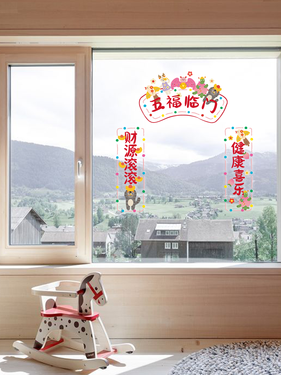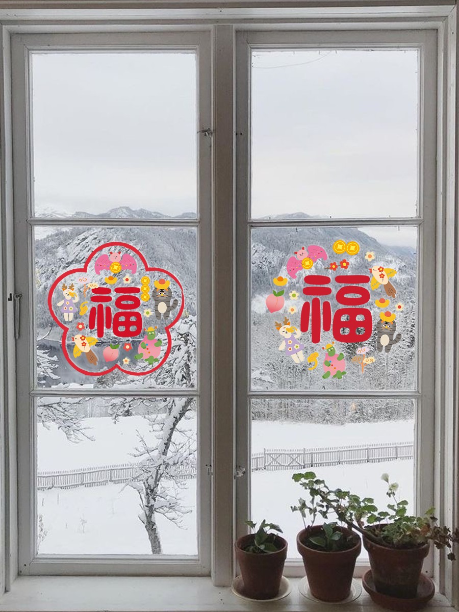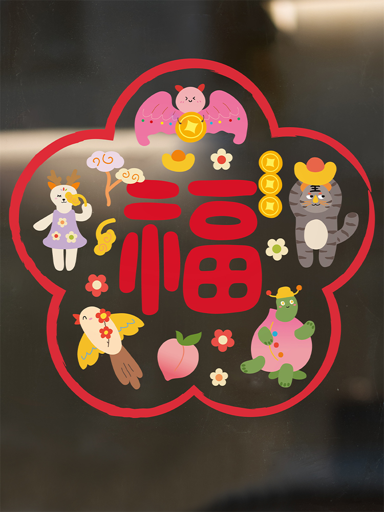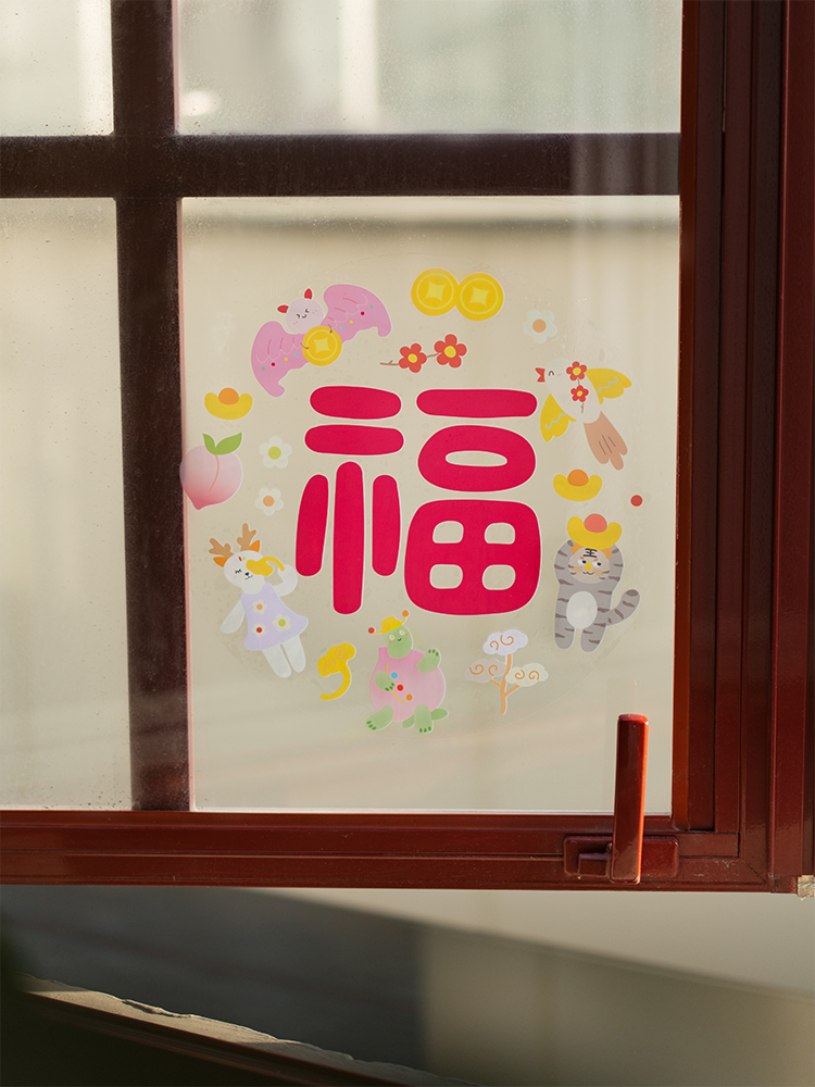 古古楽gugu新年静电贴冰箱贴喜迎新春五福临门系列