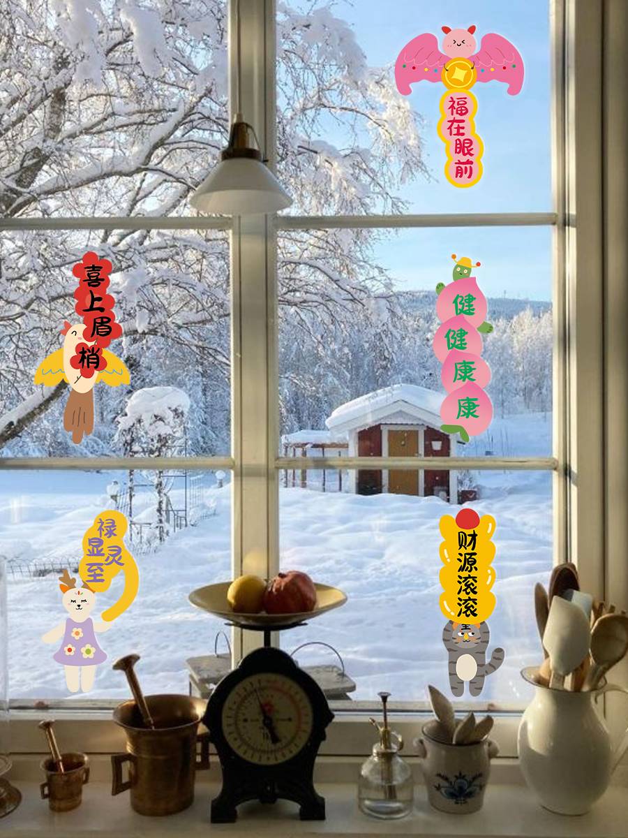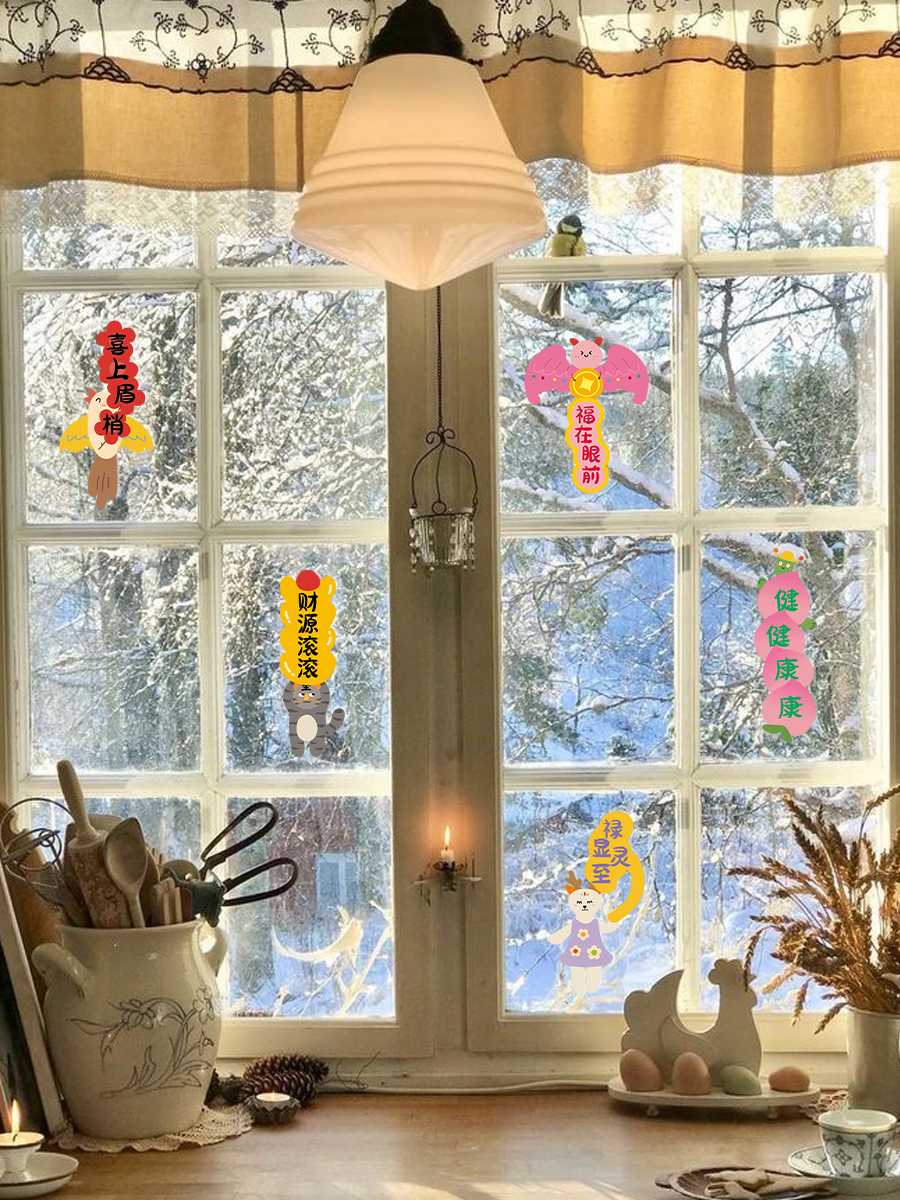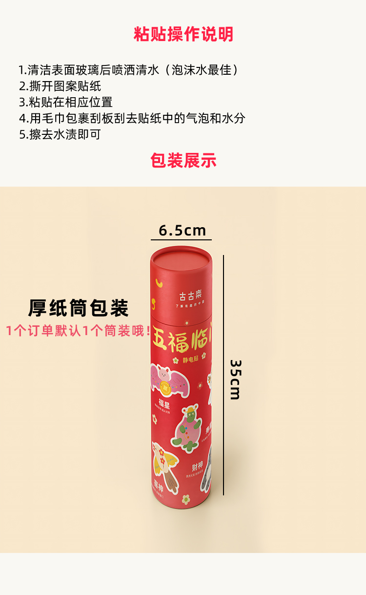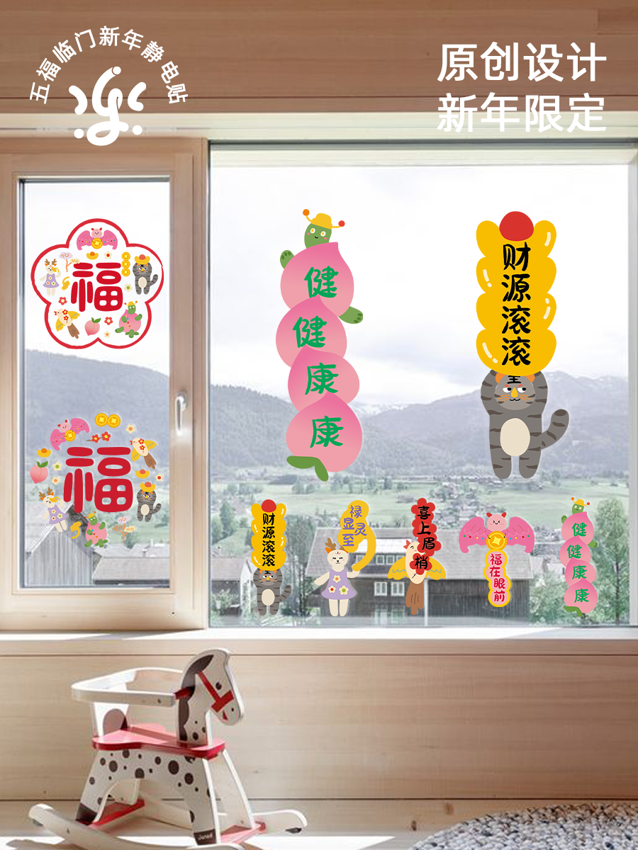 古古楽gugu新年静电贴冰箱贴喜迎新春五福临门系列