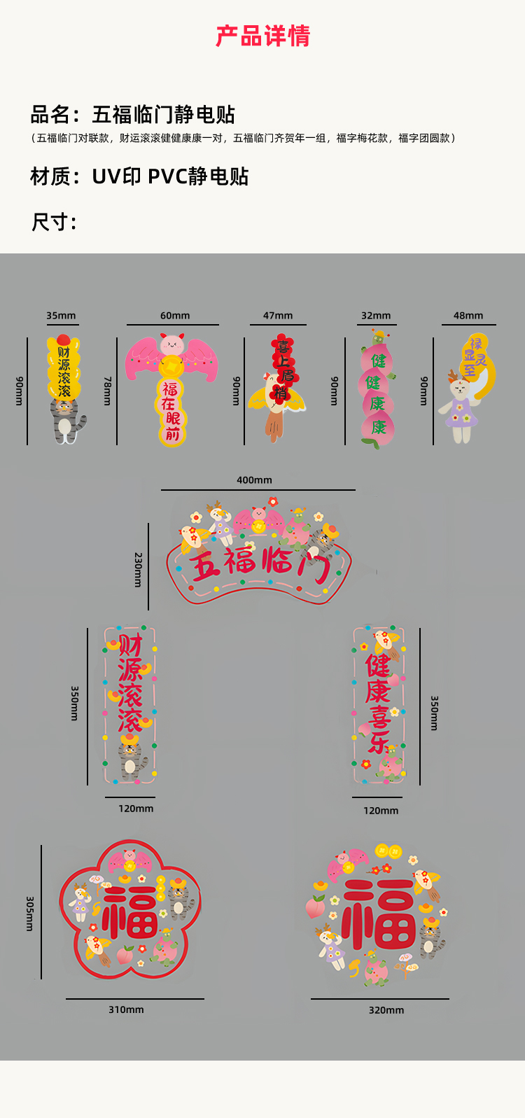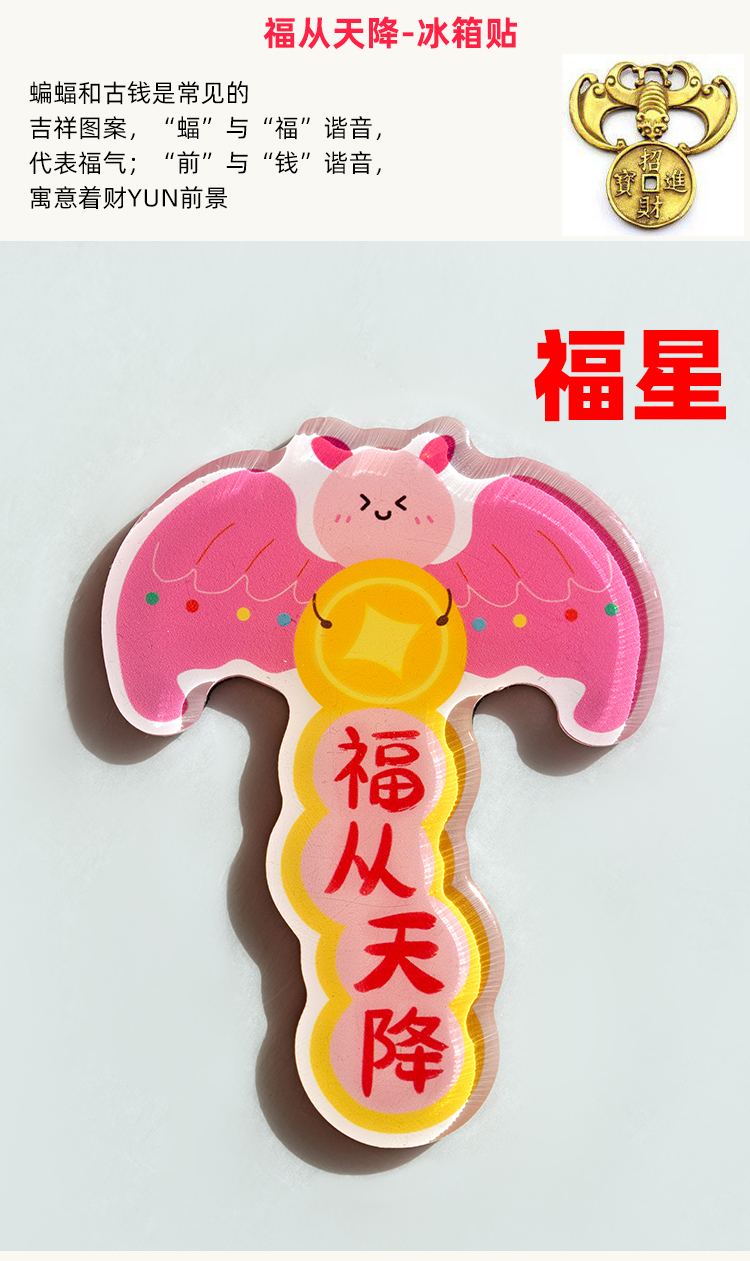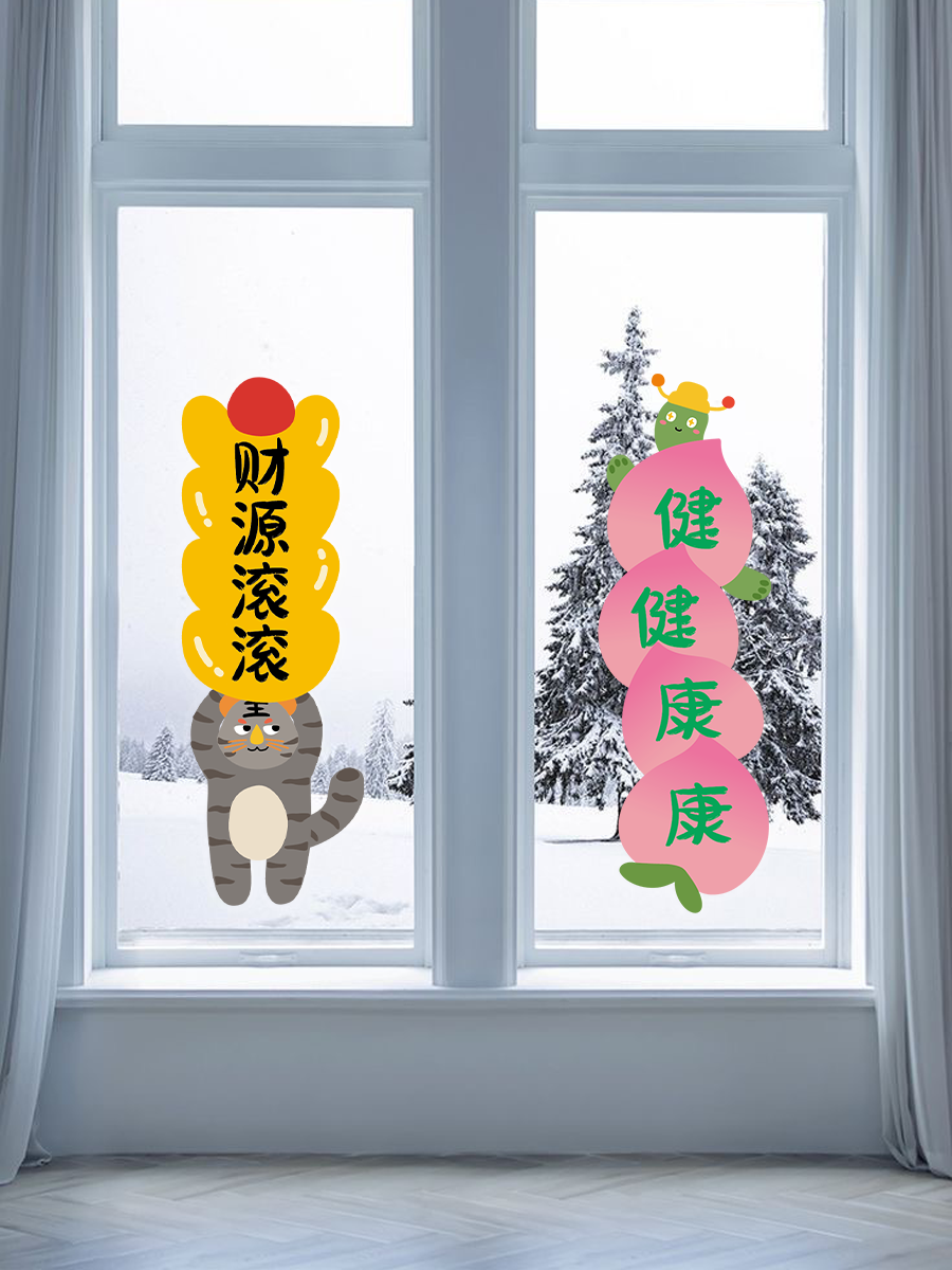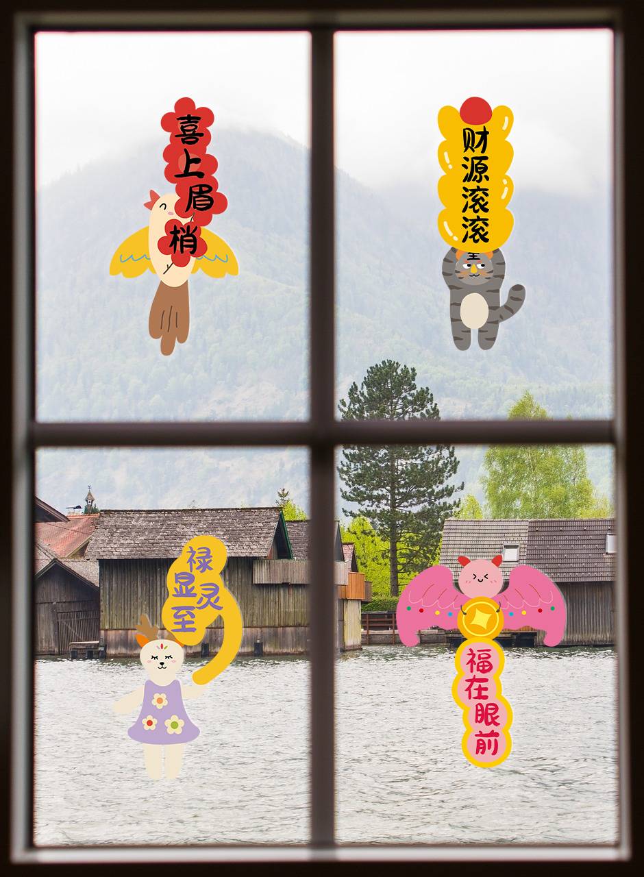古古楽gugu新年静电贴冰箱贴喜迎新春五福临门系列