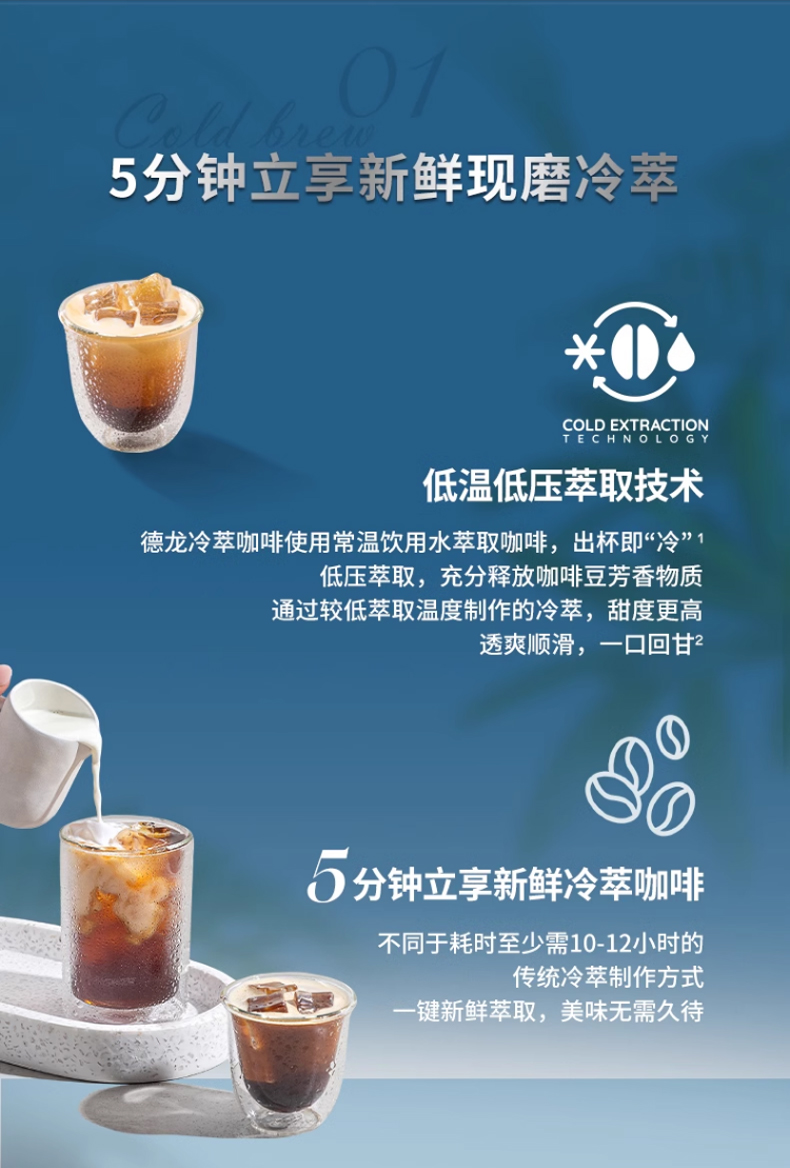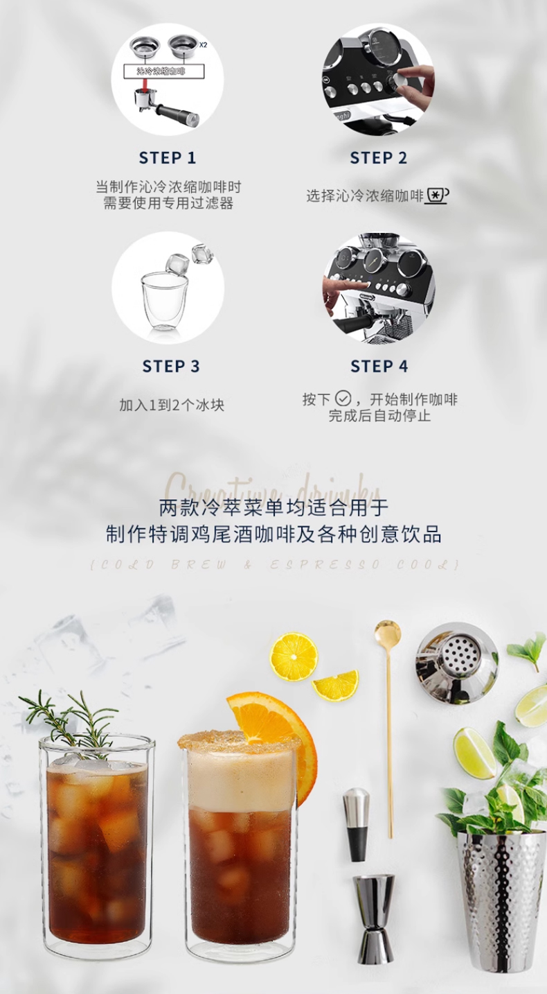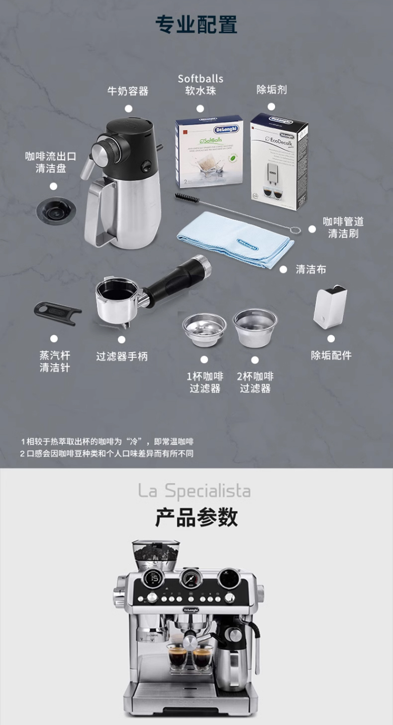 Delonghi德龙银骑士升级冷萃版研磨一体半自动EC9865咖啡机