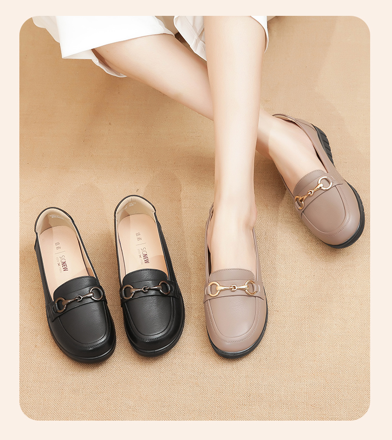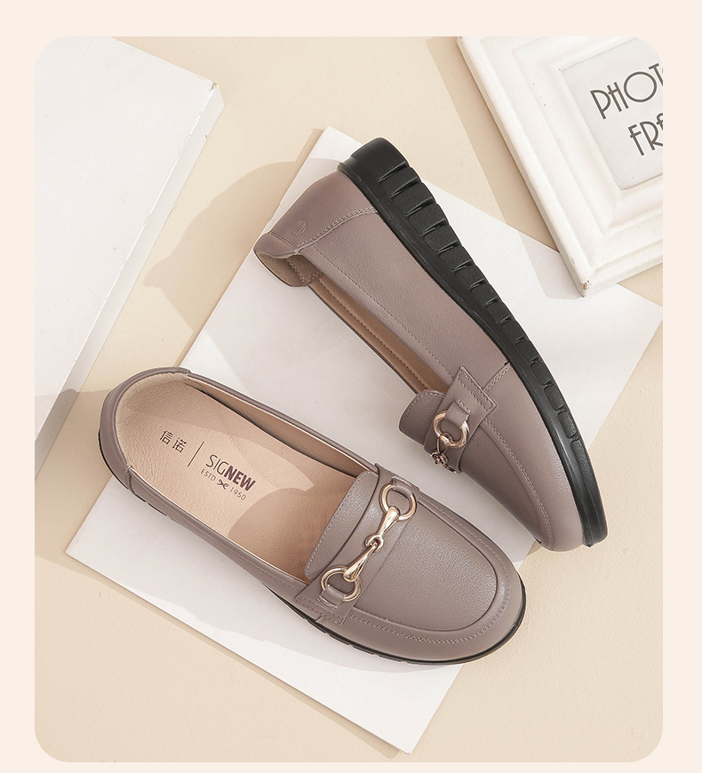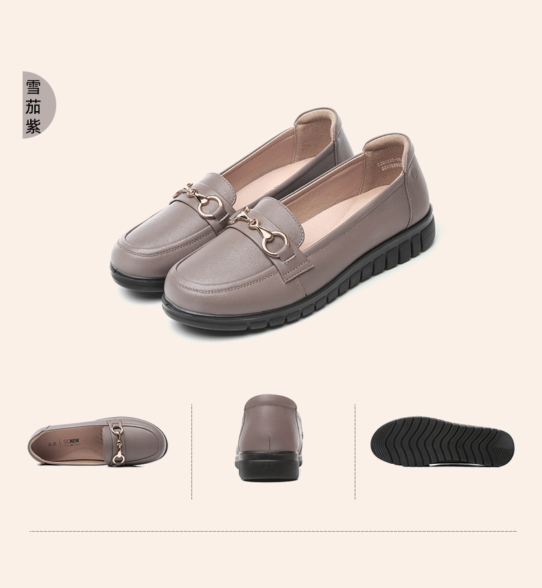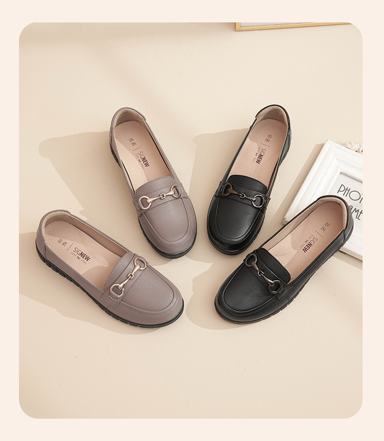 信诺妈妈鞋2022夏秋季新款中老年女鞋平跟真皮软底一脚蹬豆豆单鞋22Q6315-52
