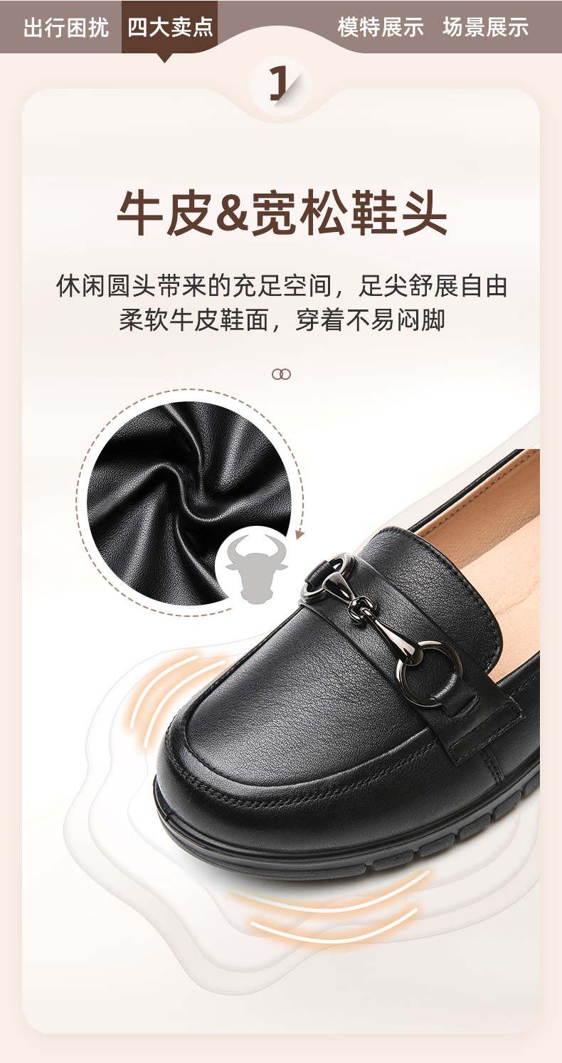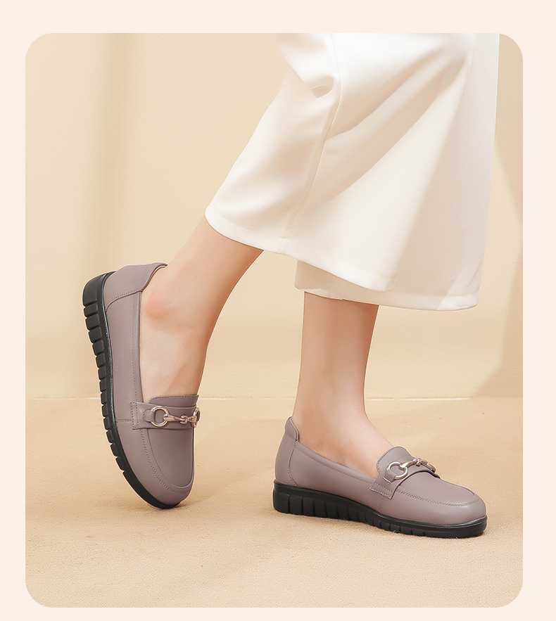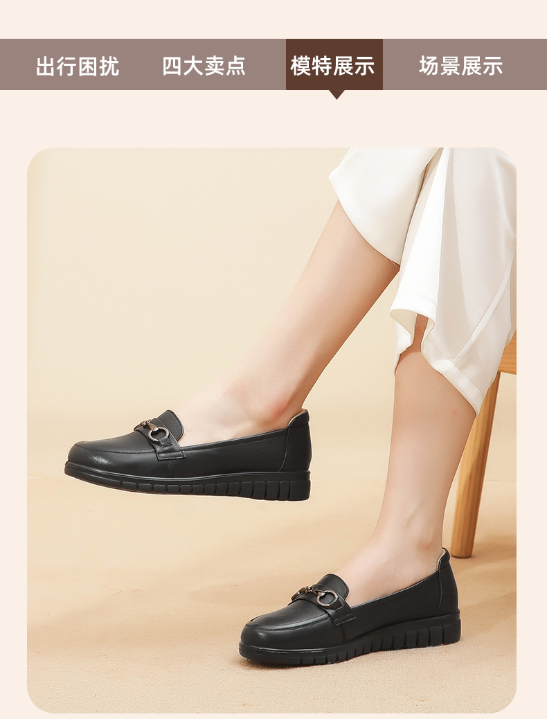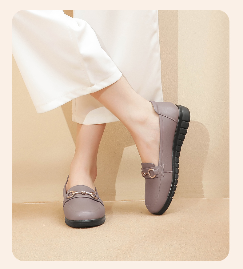 信诺妈妈鞋2022夏秋季新款中老年女鞋平跟真皮软底一脚蹬豆豆单鞋22Q6315-52