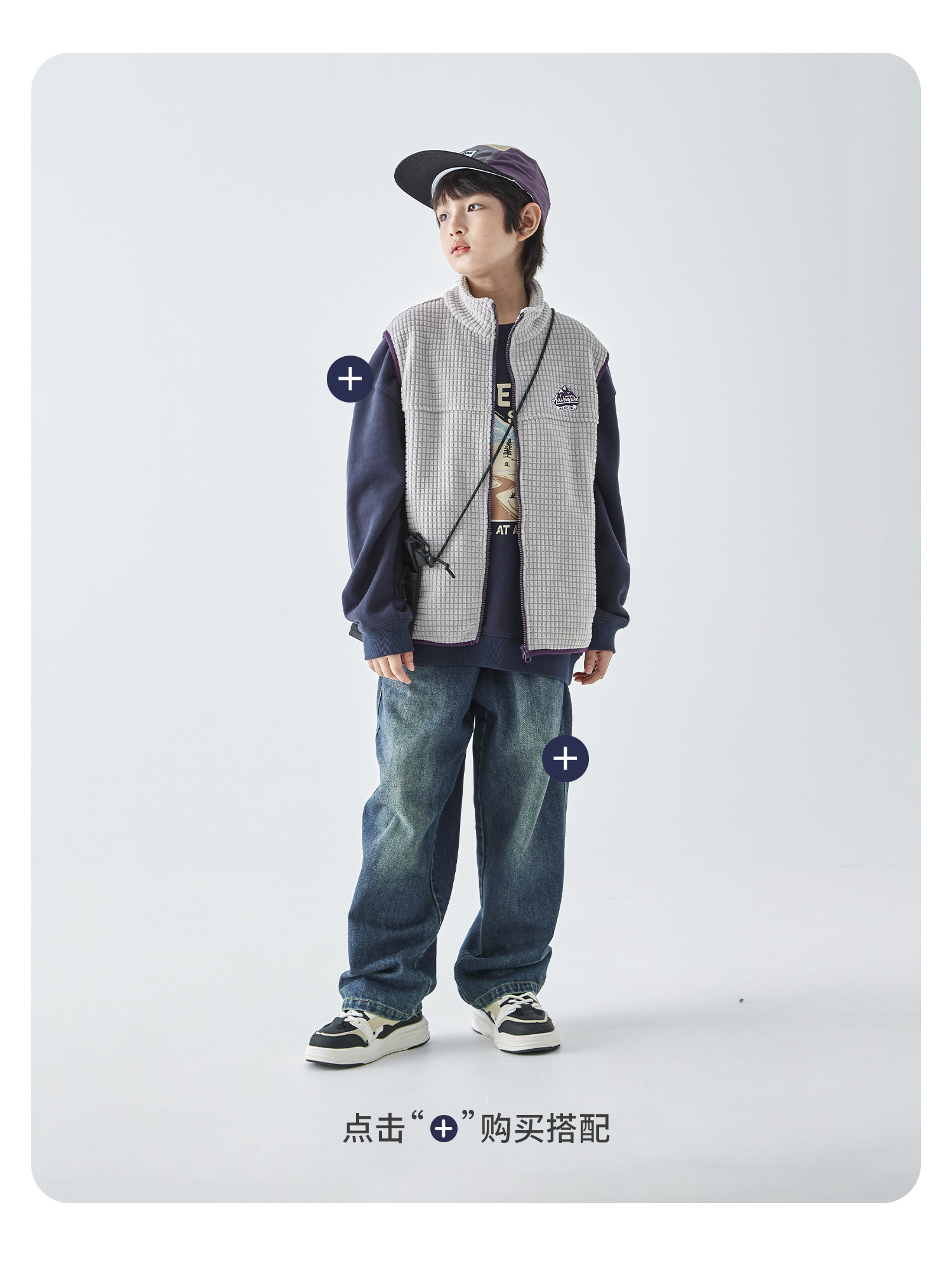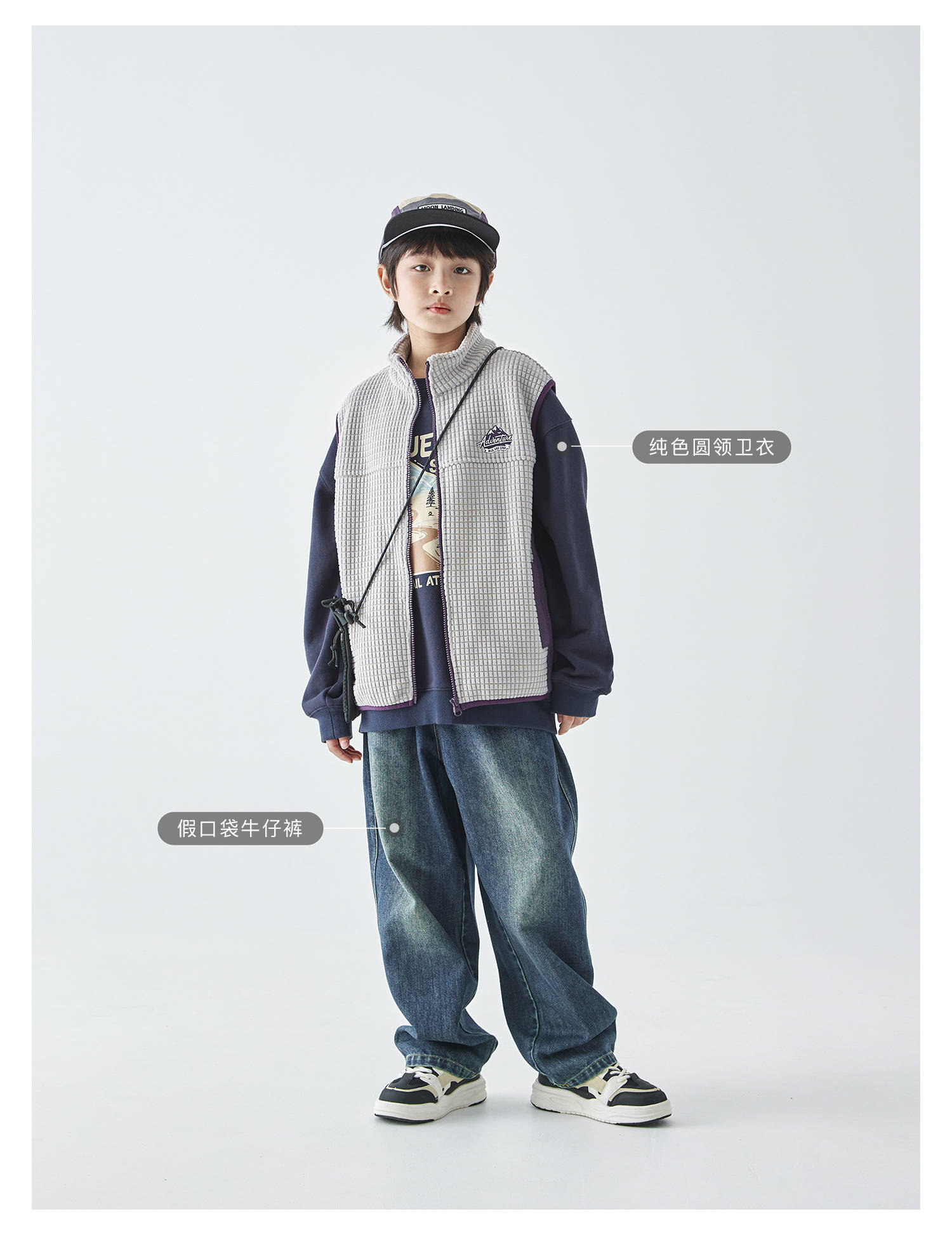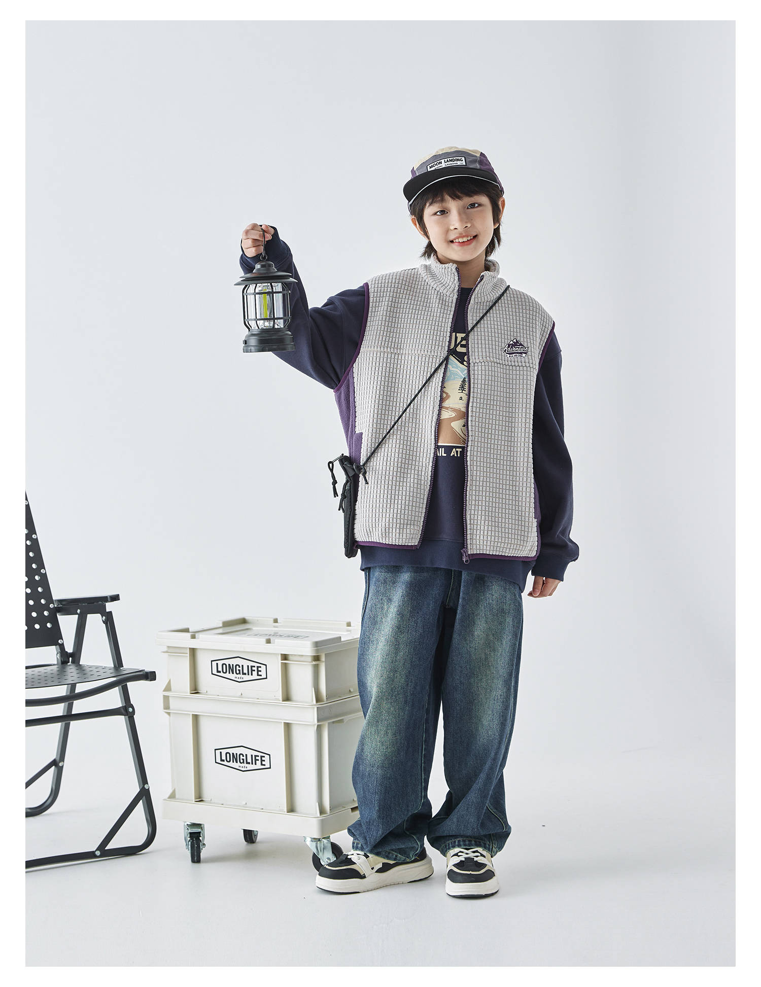 蓝汽水25年秋冬新款亲子装中大男童菠萝格摇粒绒马甲单穿叠搭上衣