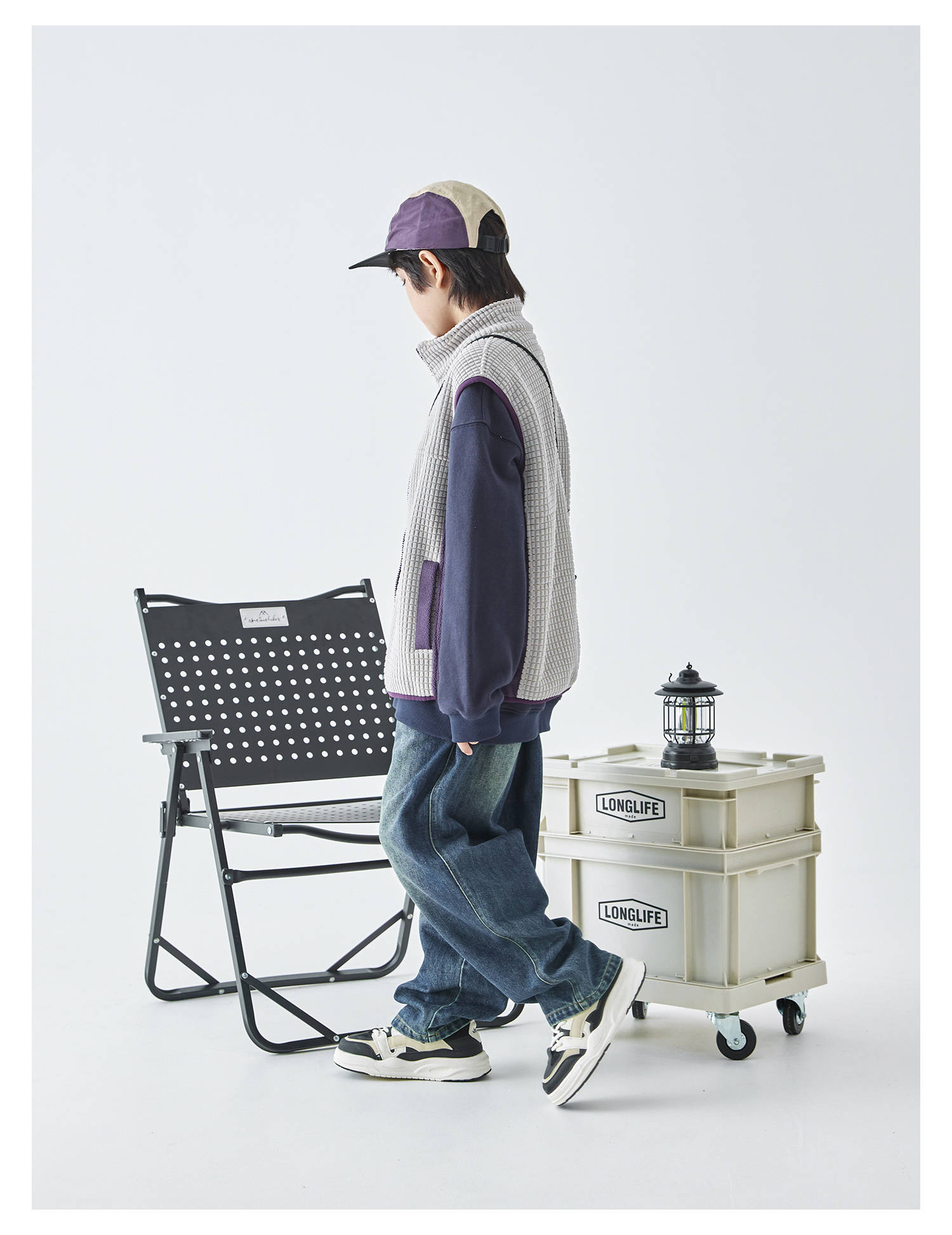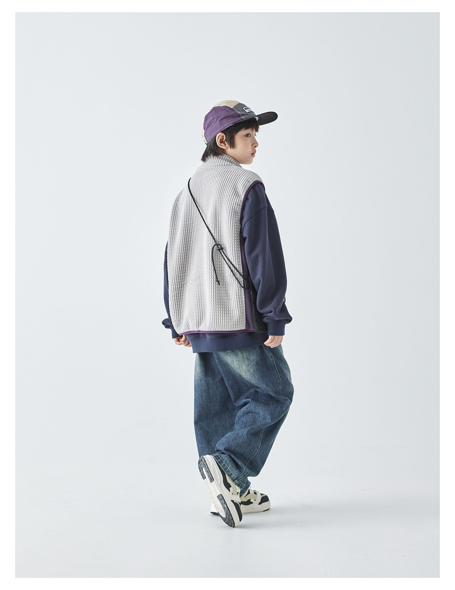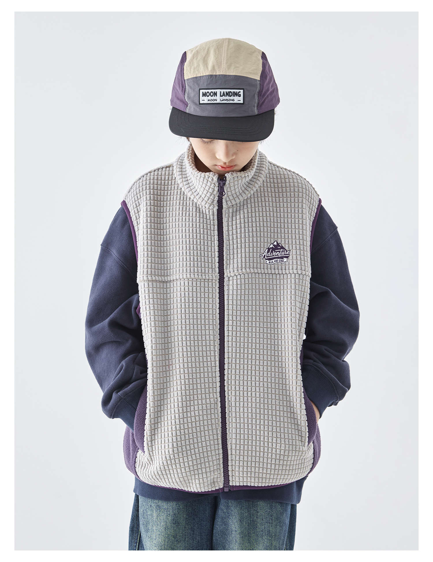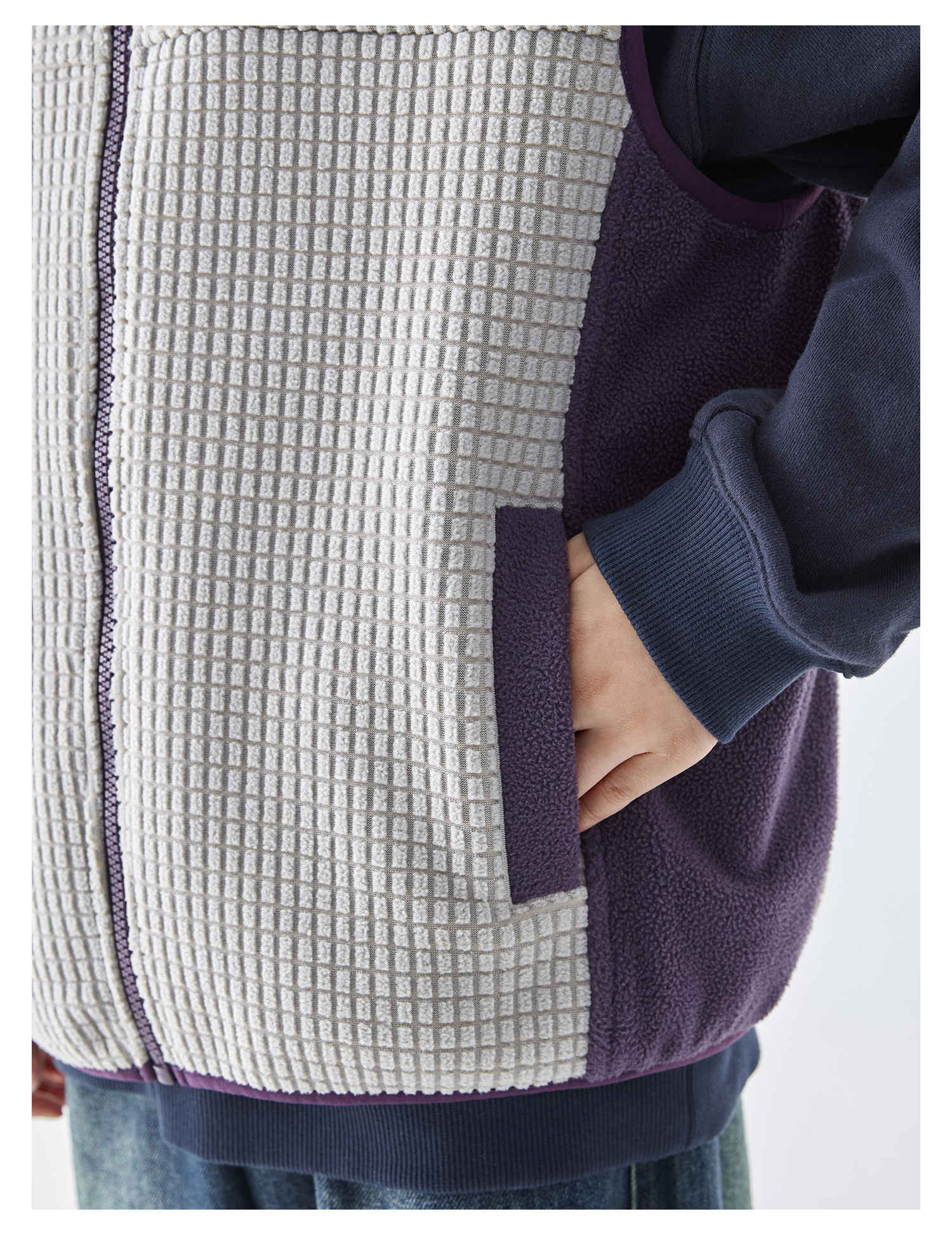 蓝汽水25年秋冬新款亲子装中大男童菠萝格摇粒绒马甲单穿叠搭上衣