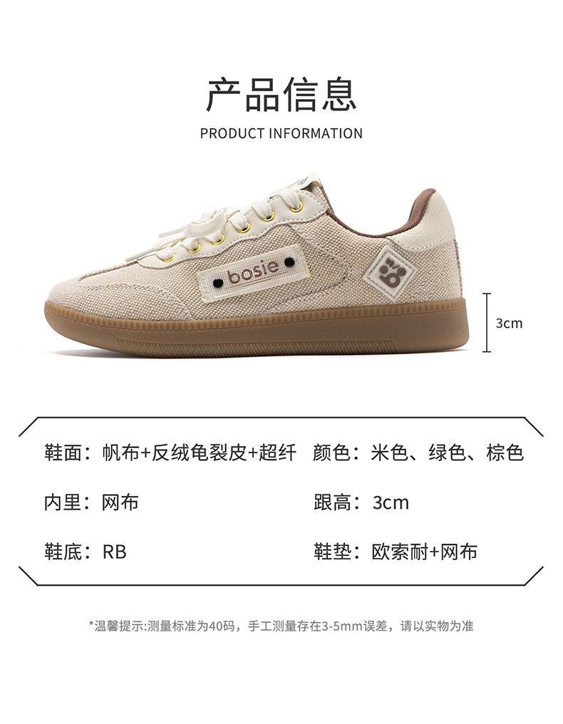【bosie伯喜新款时尚休闲帆布德训鞋】秒变街头潮人穿搭神器这配色!这颜值!三色可选~