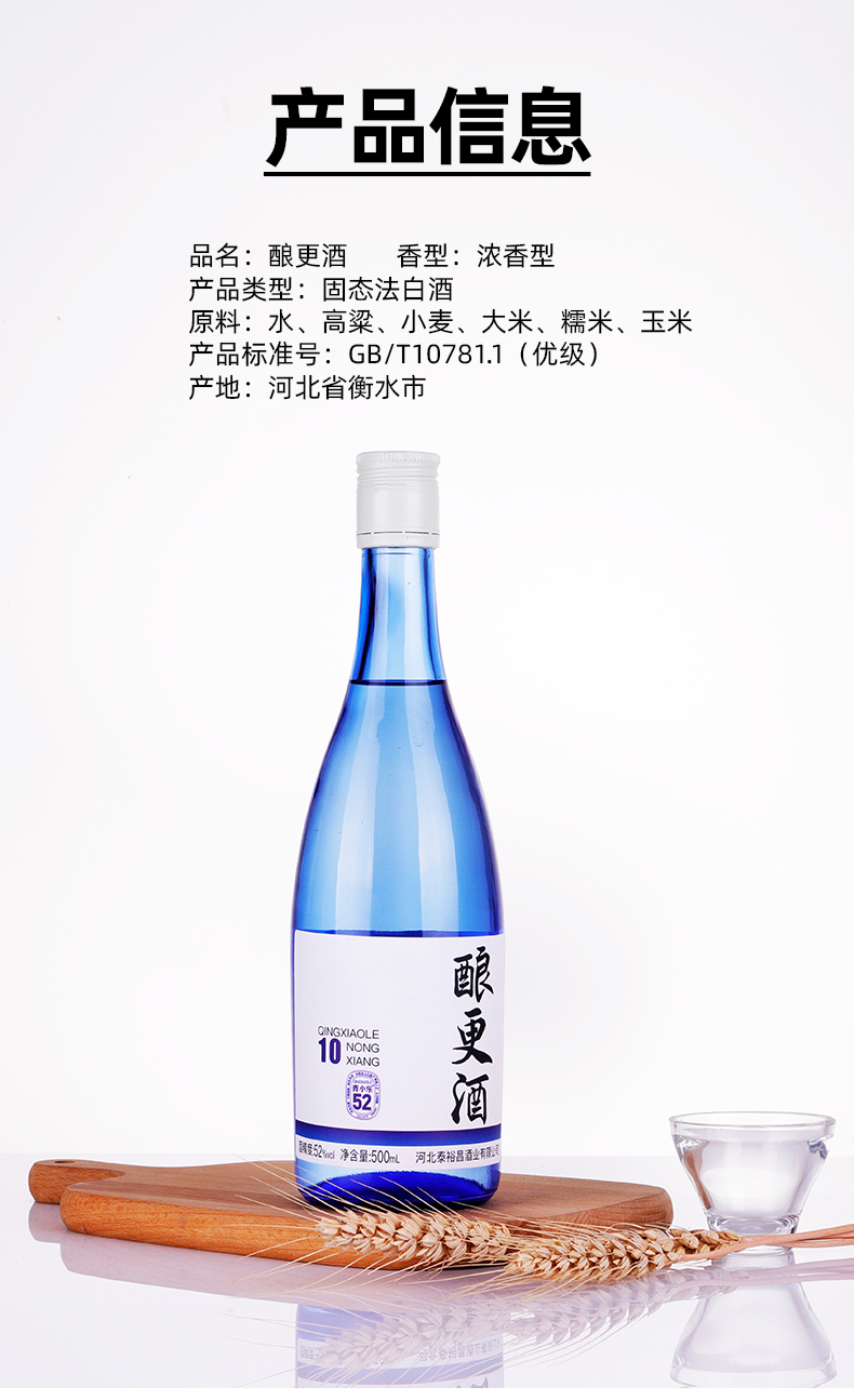 [酿更酒]52度-青小乐蓝瓶光瓶装-浓香型白酒-500ml-4瓶整箱
