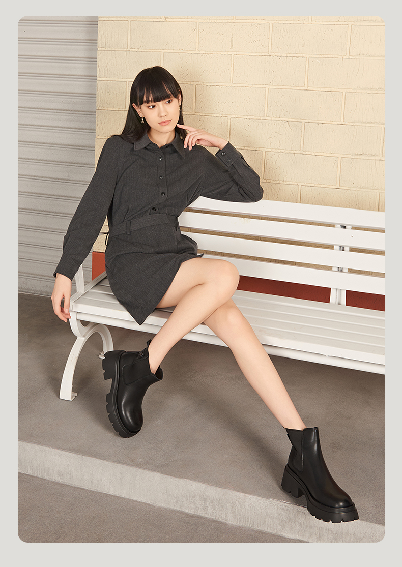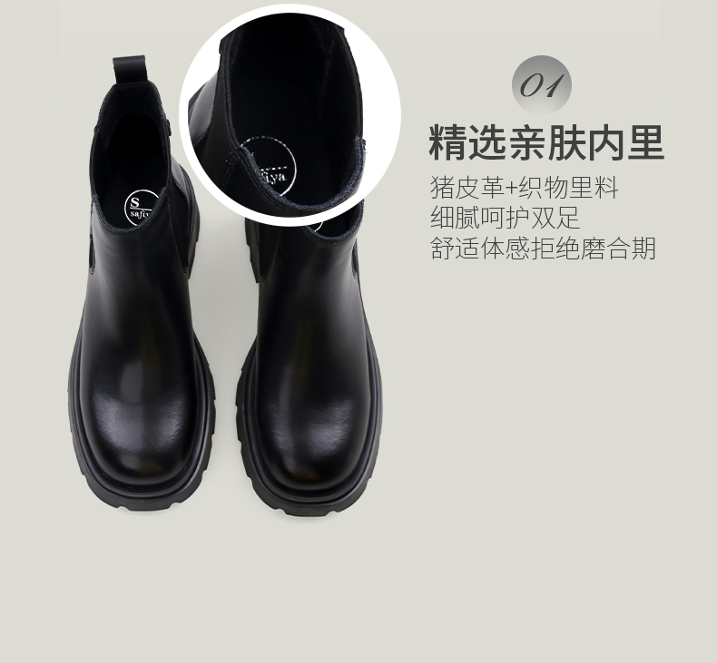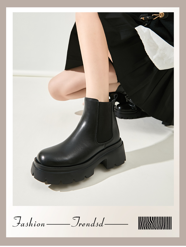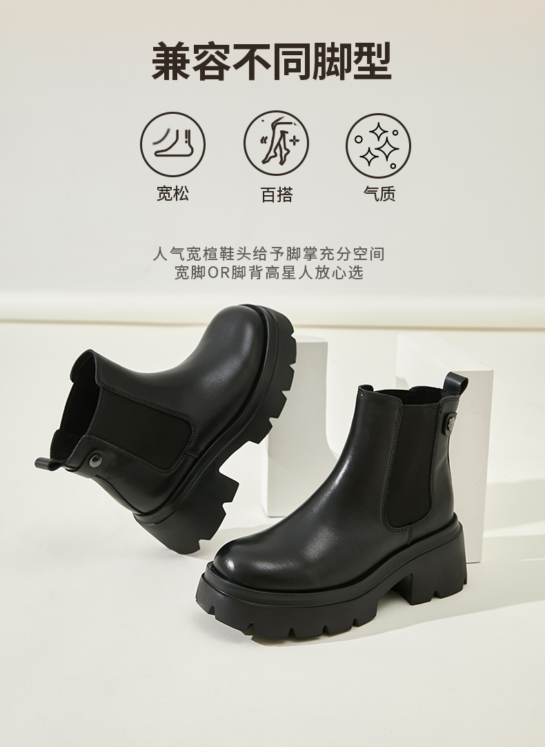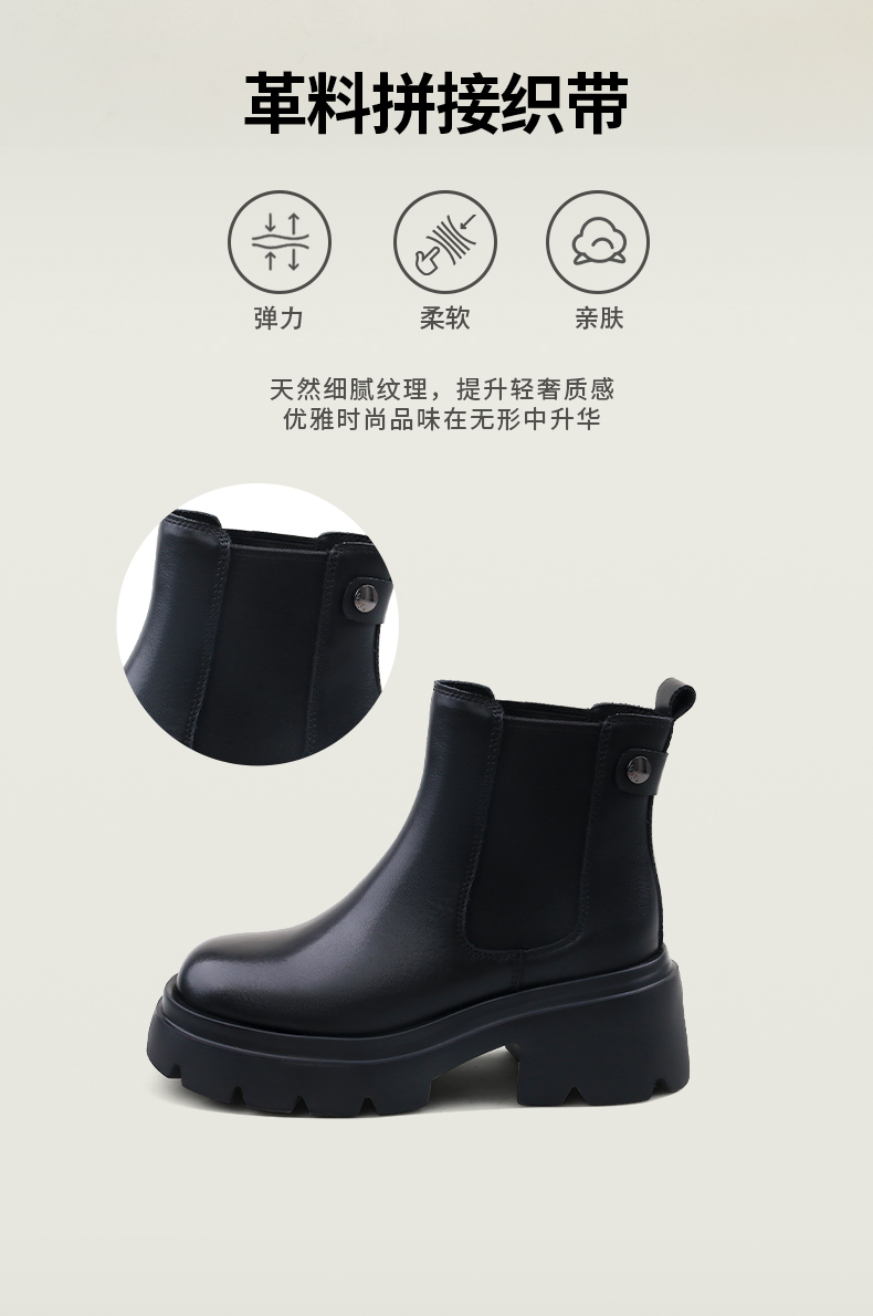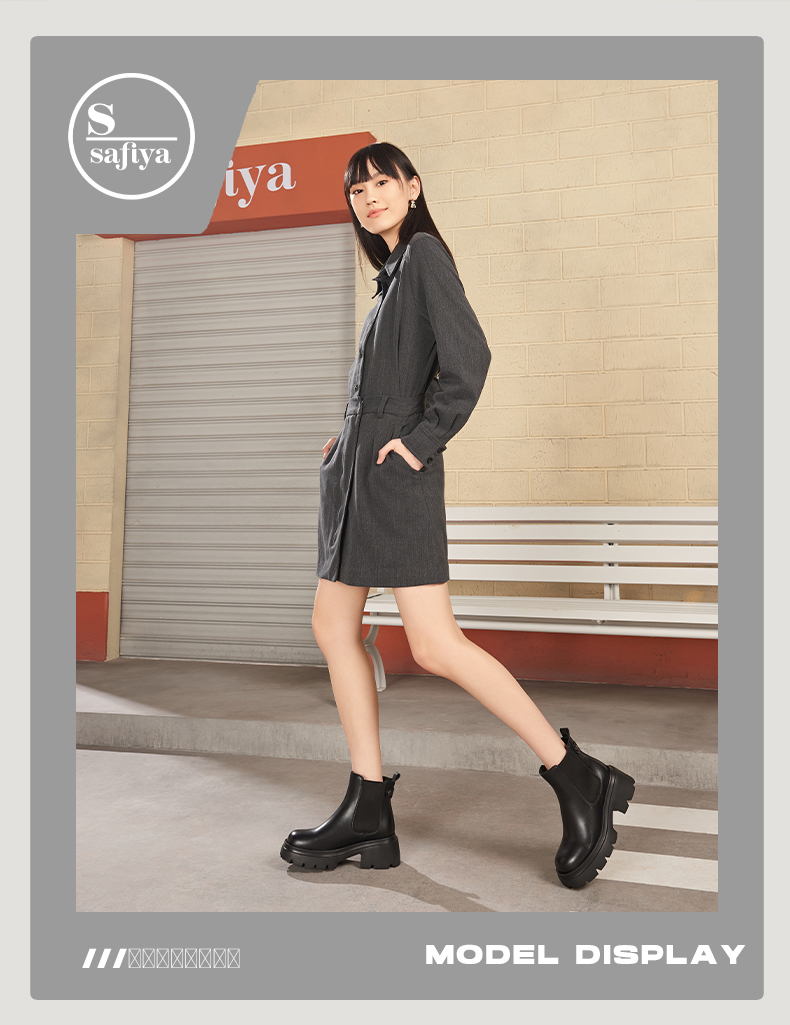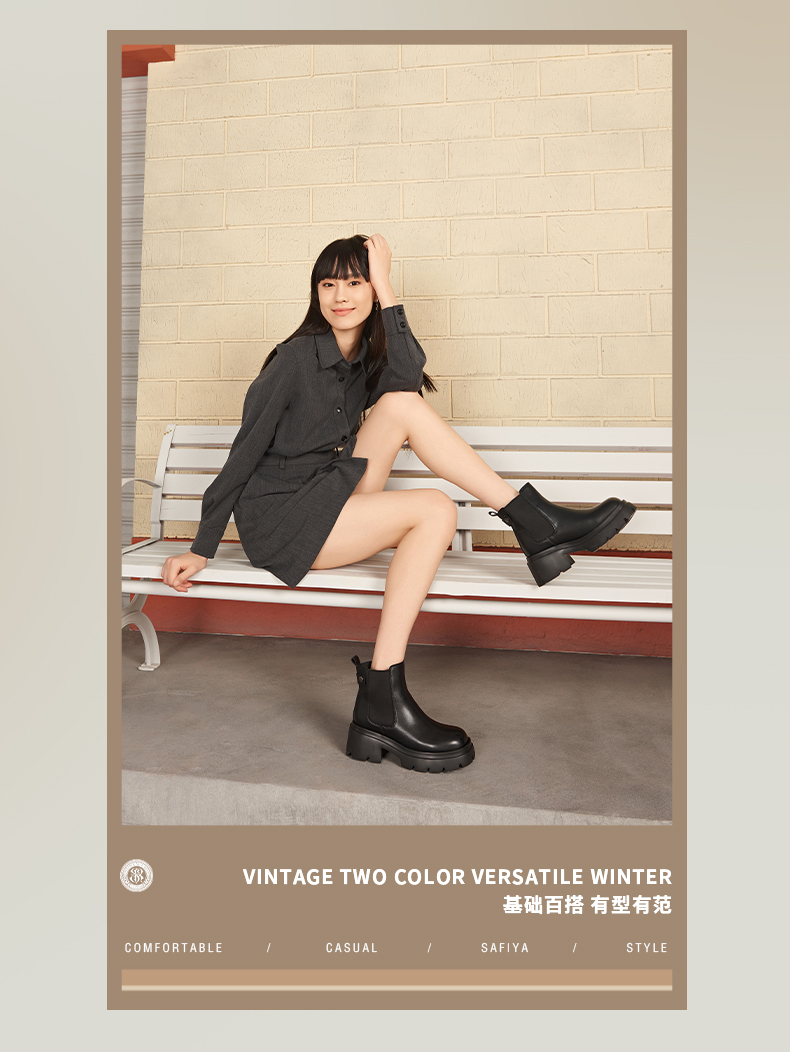 预售12天|Safiya/索菲娅2024英伦风小个子增高显腿长厚底套筒切尔西短靴 SF44116051/SF44118051