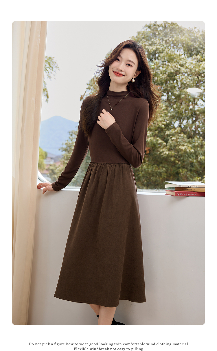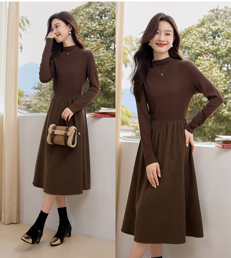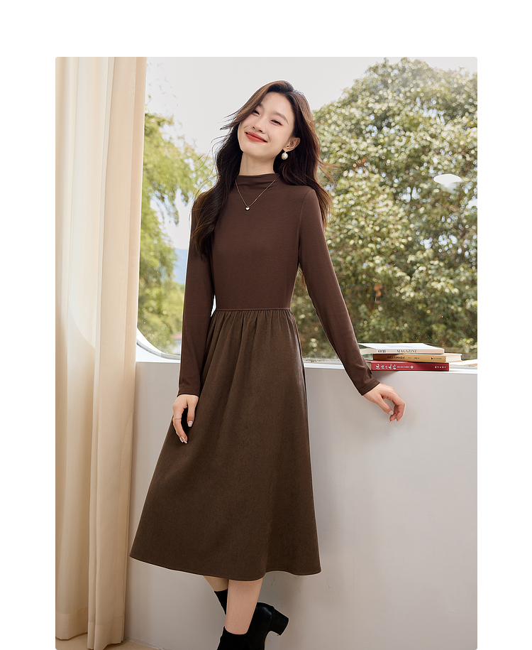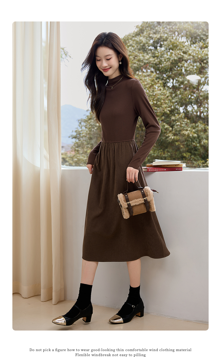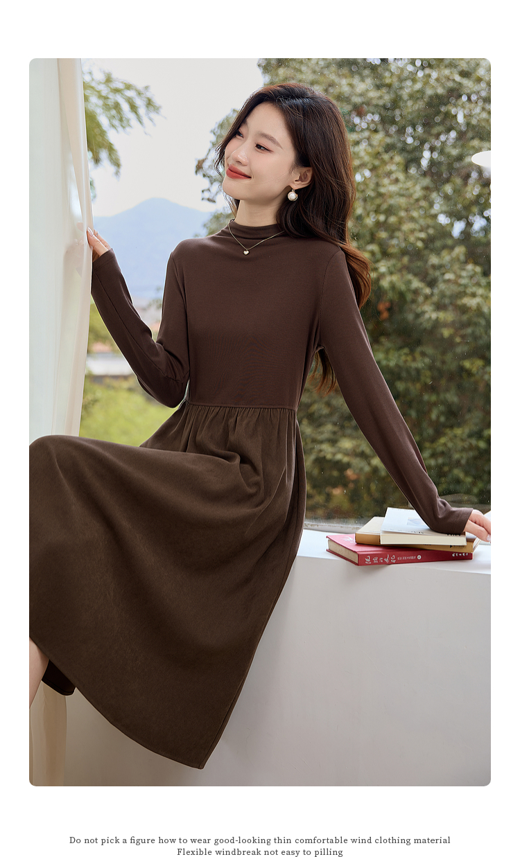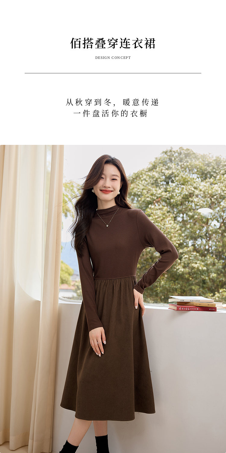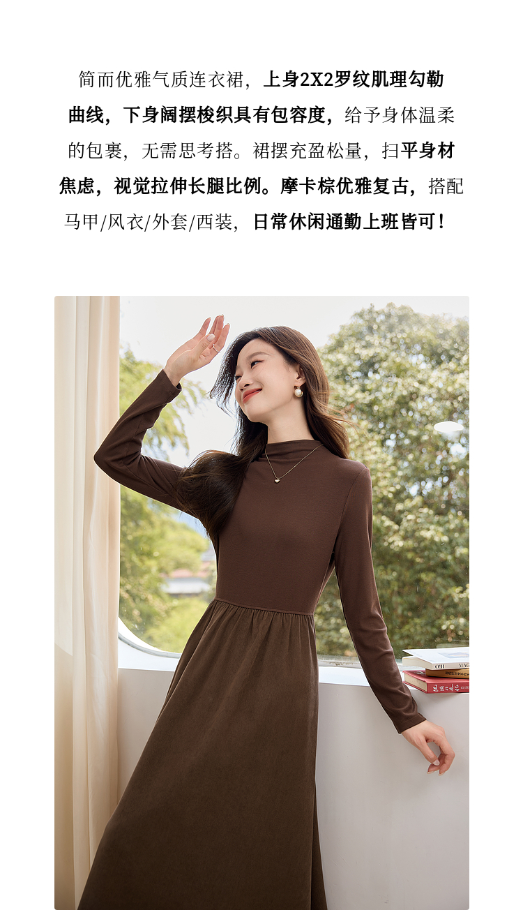 【专属特价】熙世界法式半高领针织连衣裙女2023年秋冬新款磨绒打底内搭长裙子