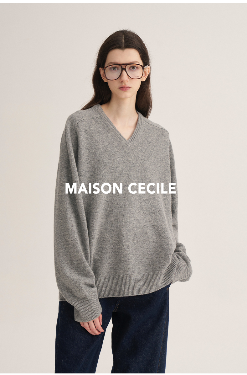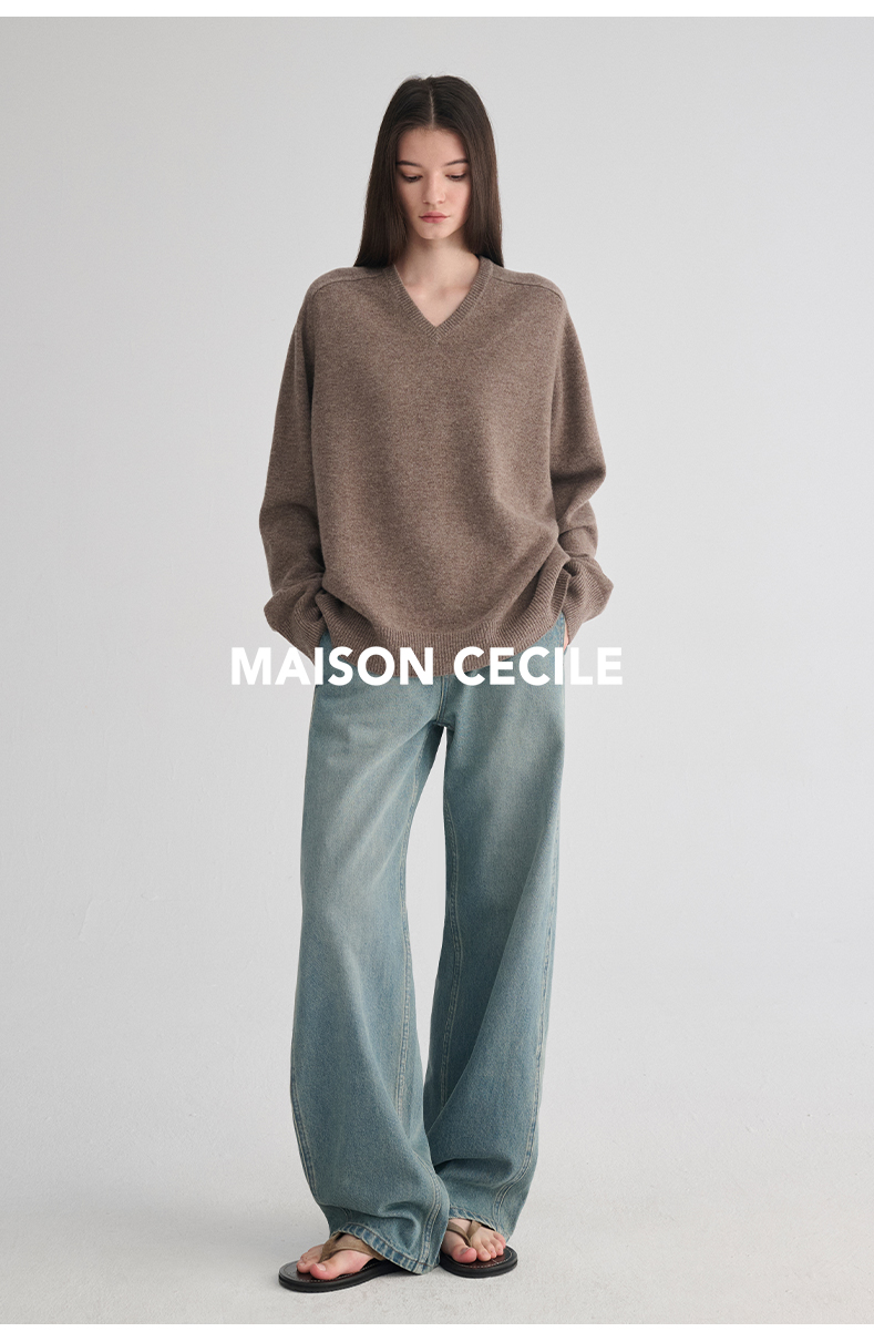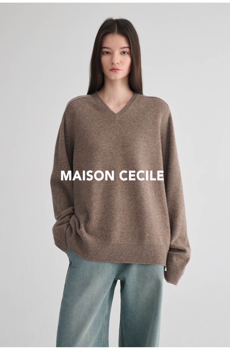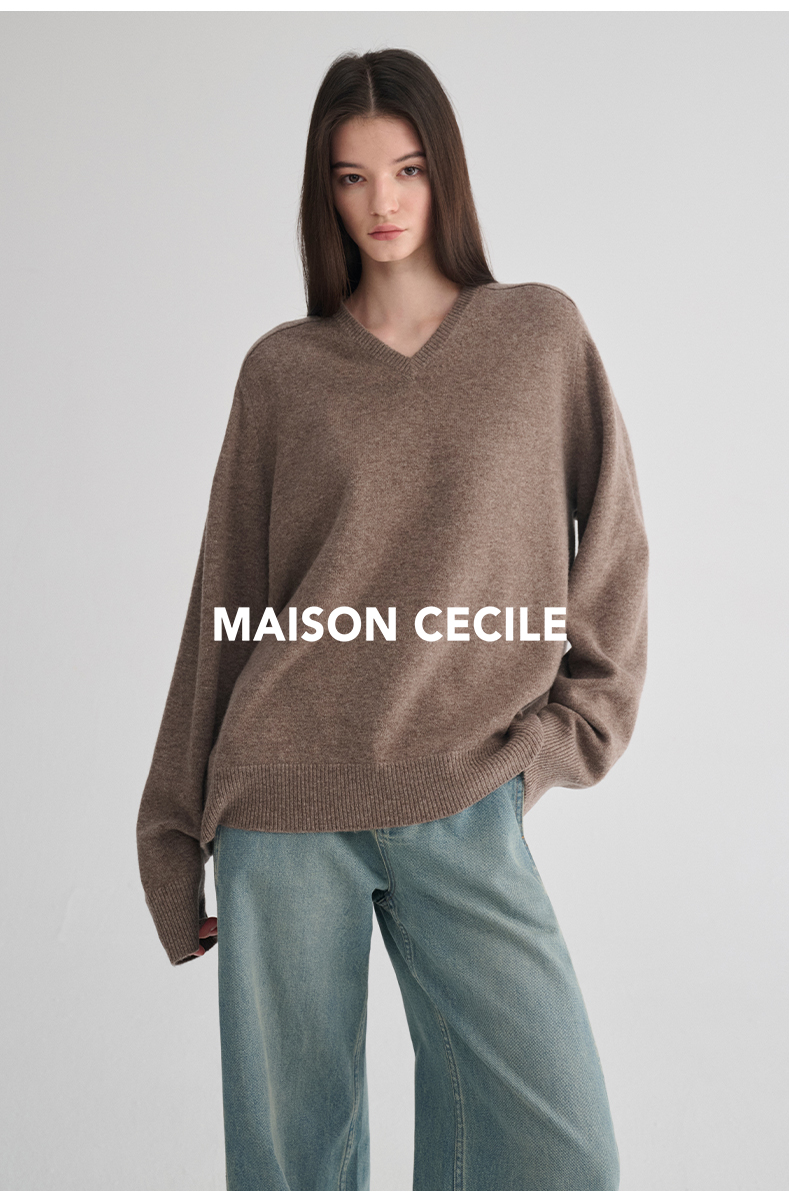MAISON CECILE 棕色加色/高克重羊毛V领毛衣