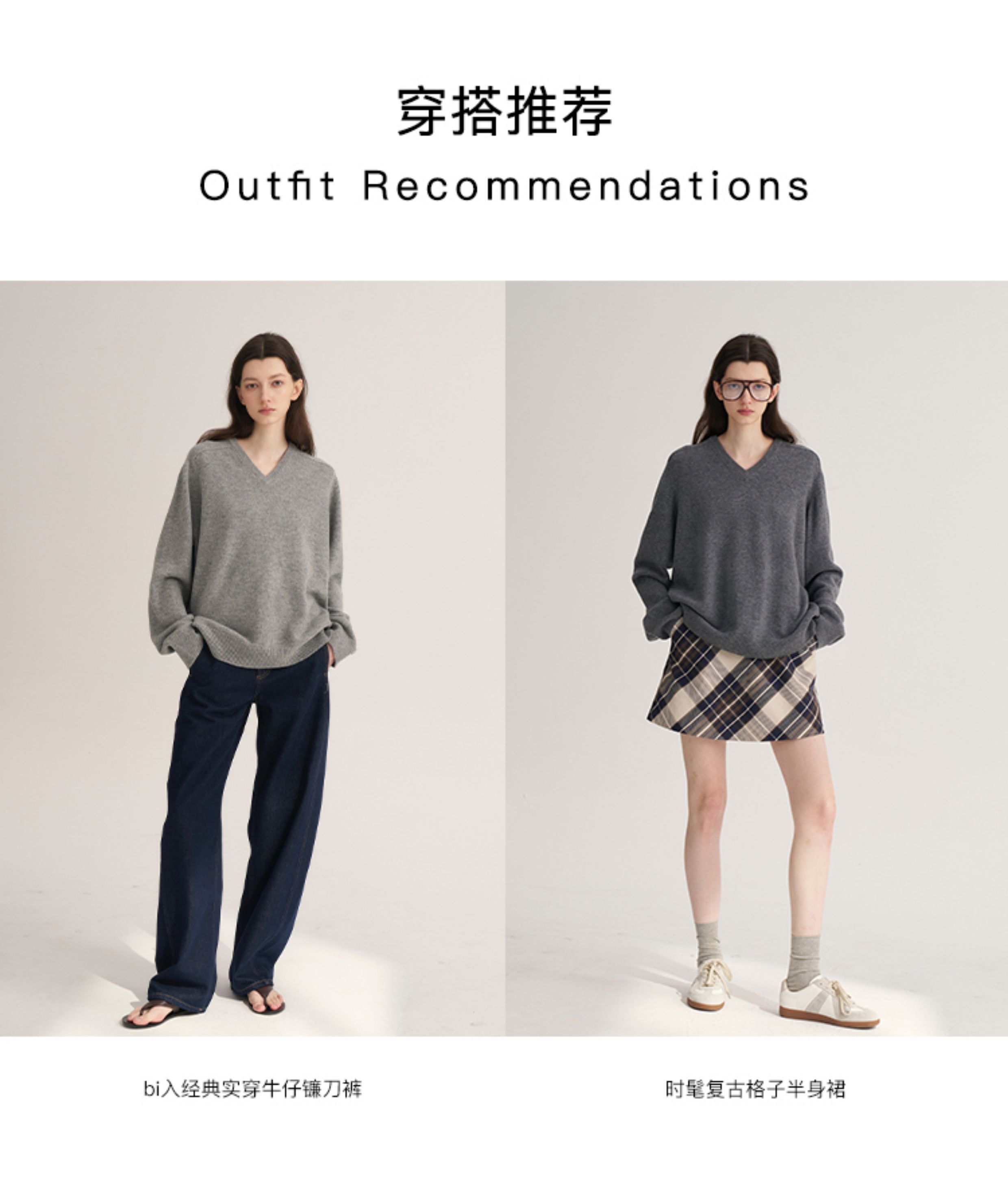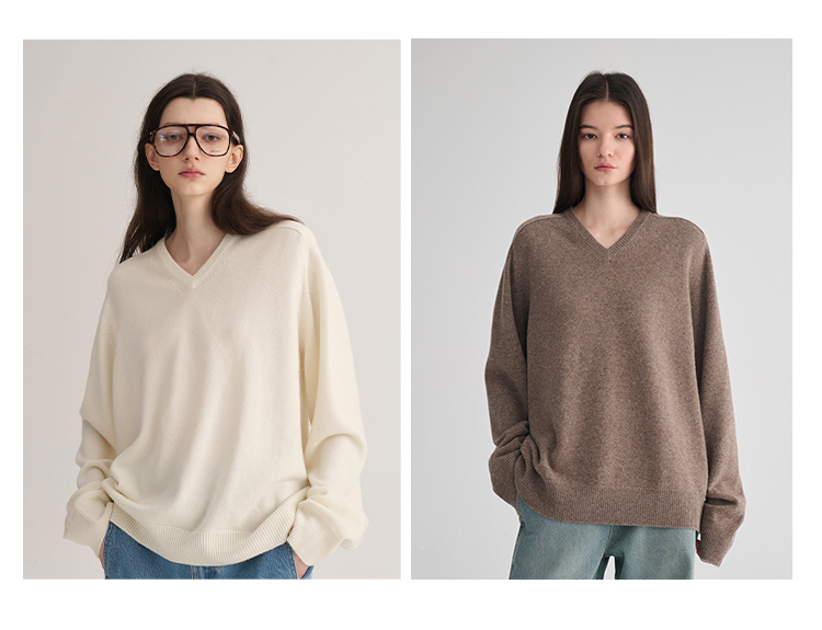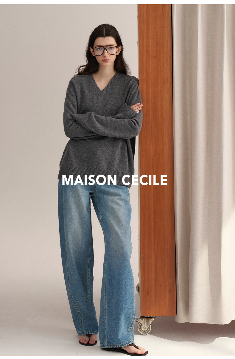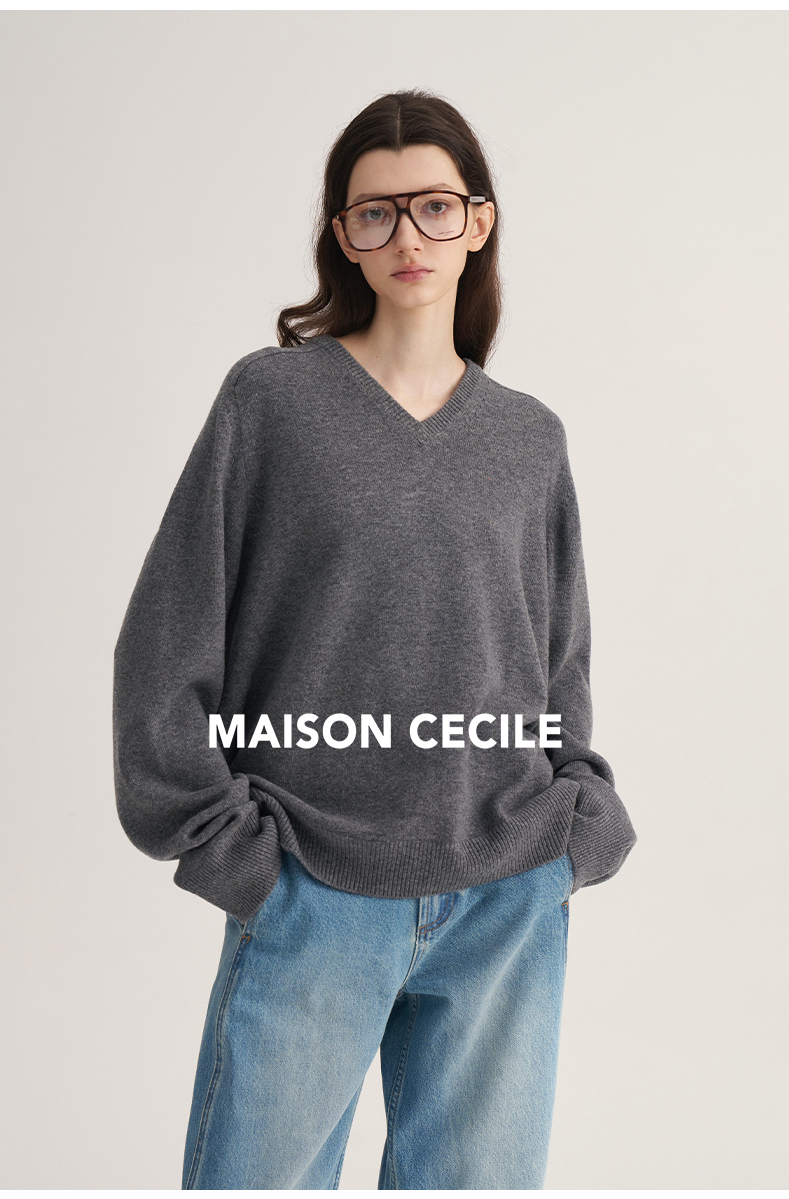 MAISON CECILE 棕色加色/高克重羊毛V领毛衣