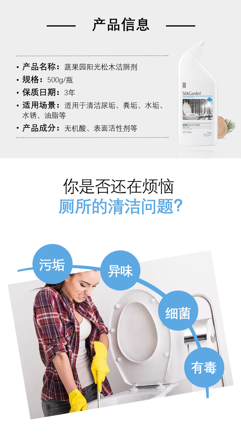 【洁厕剂组合】蔬果园阳光松木洁厕剂500g*3瓶