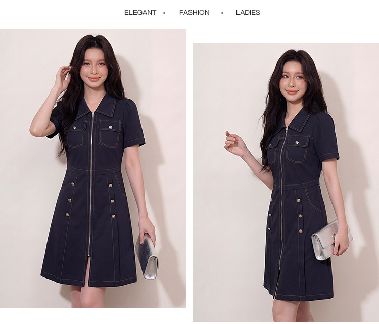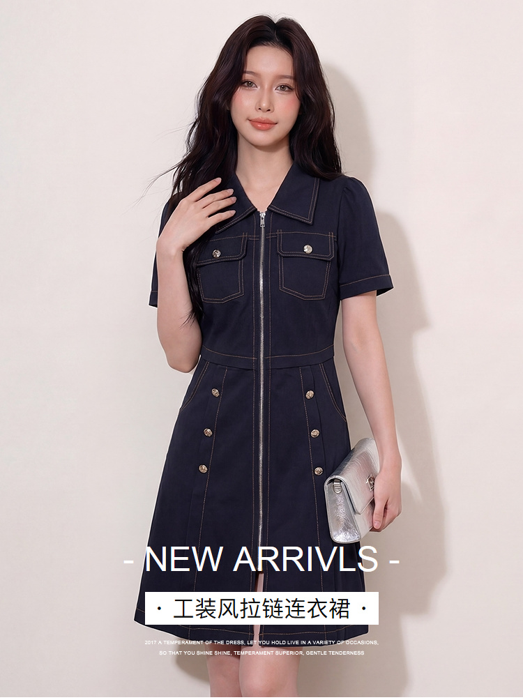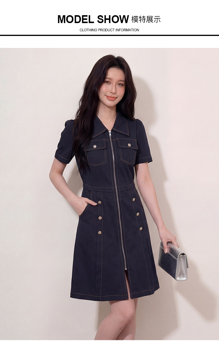 奢姿大码女装2026夏季明线工装风拉链连衣裙胖妹妹遮肉气质长裙3262803853