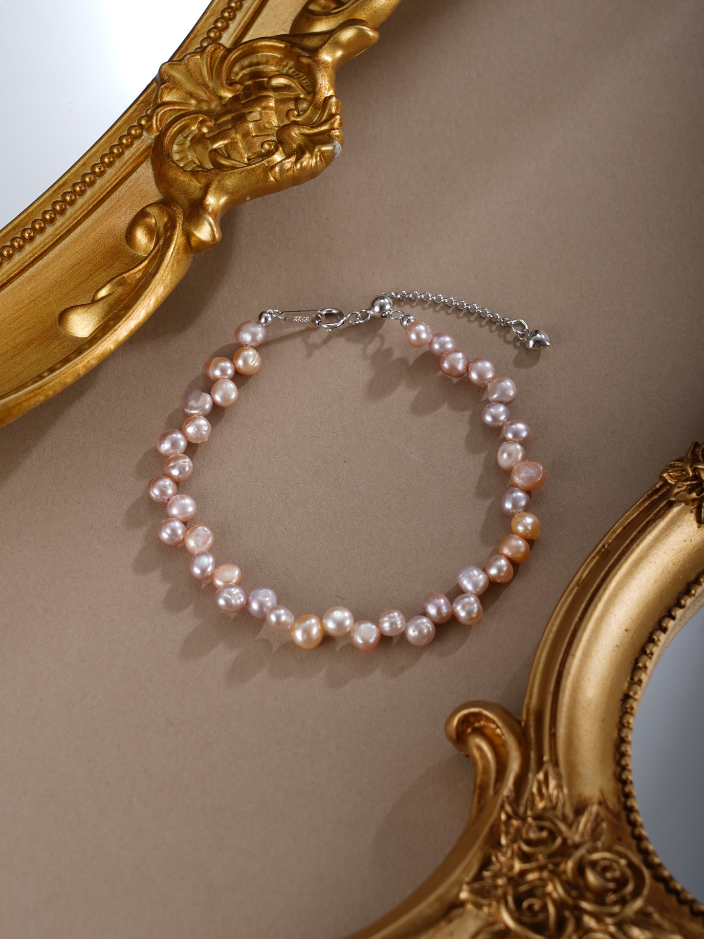 子佩集【幻彩流萤】银S925珍珠惜王妃手链【SPB0320001】4mm珠粉紫巴洛克2601