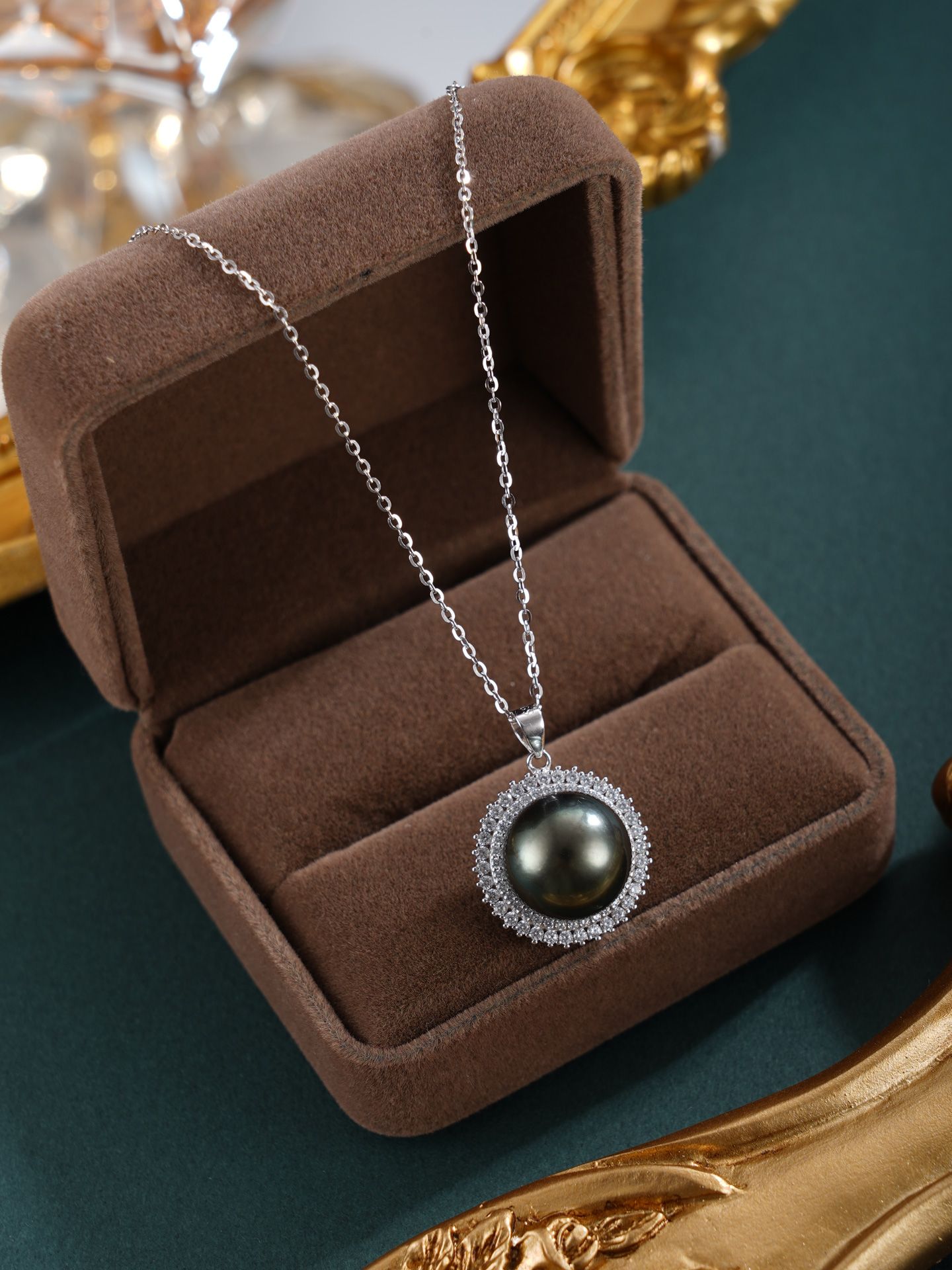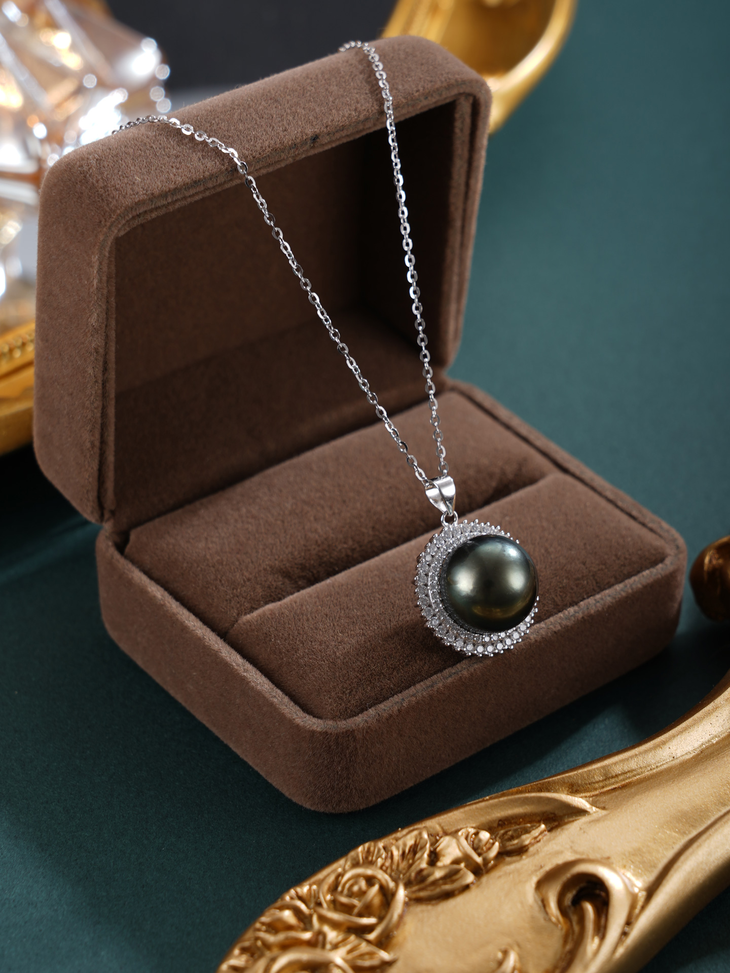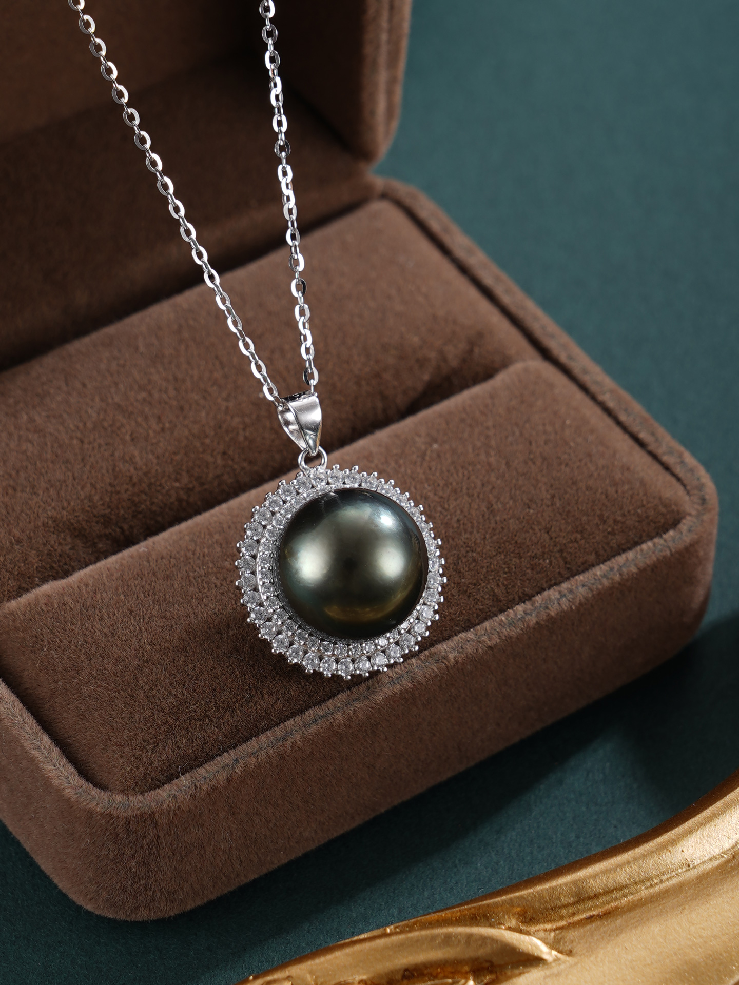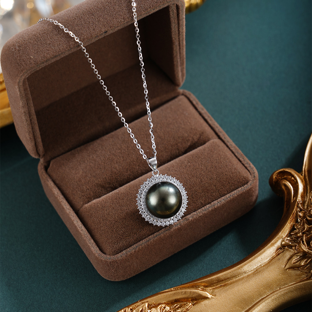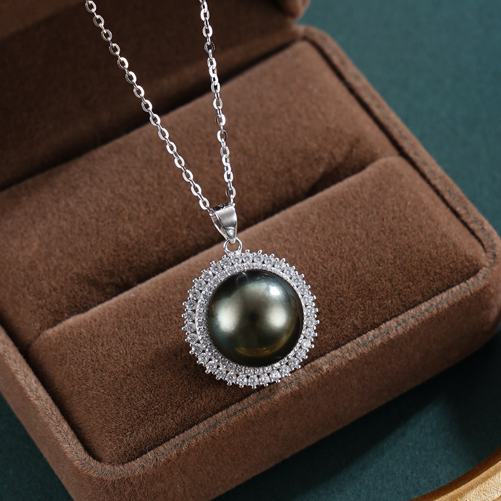 子佩集【玄华凝香】银S925珍珠惜王妃套链【HJYDZ009】12mm珠圆环黑珠2601