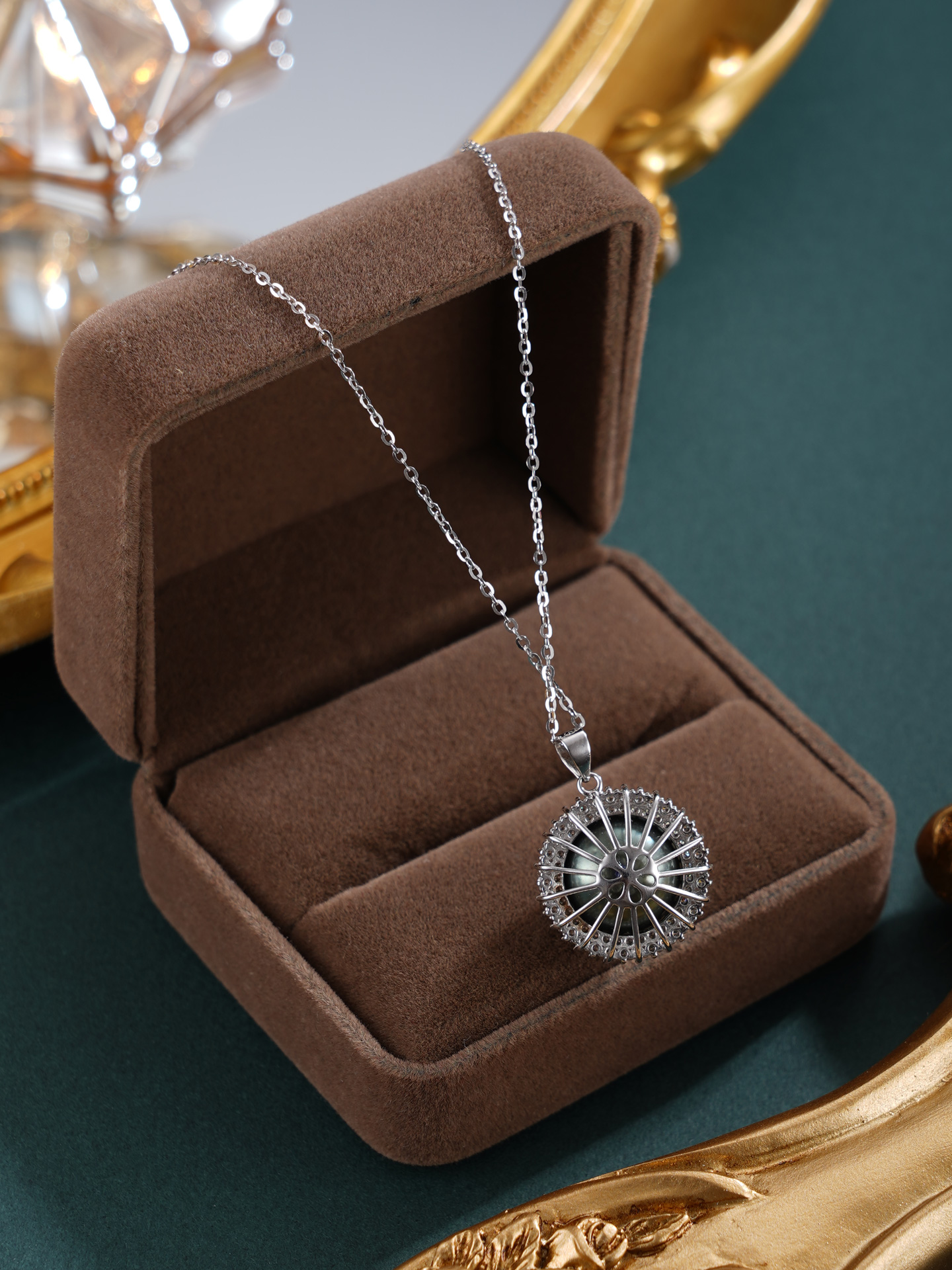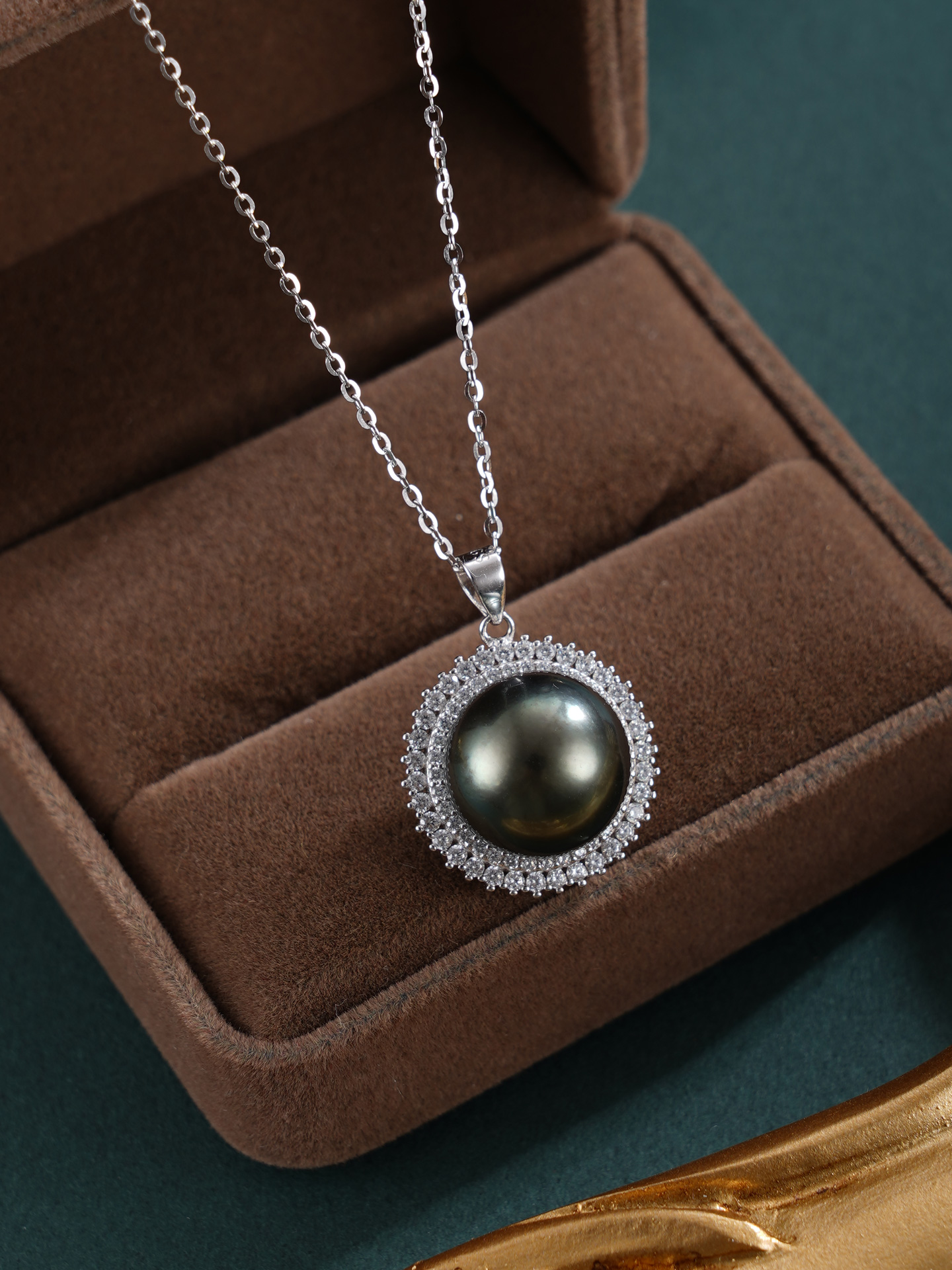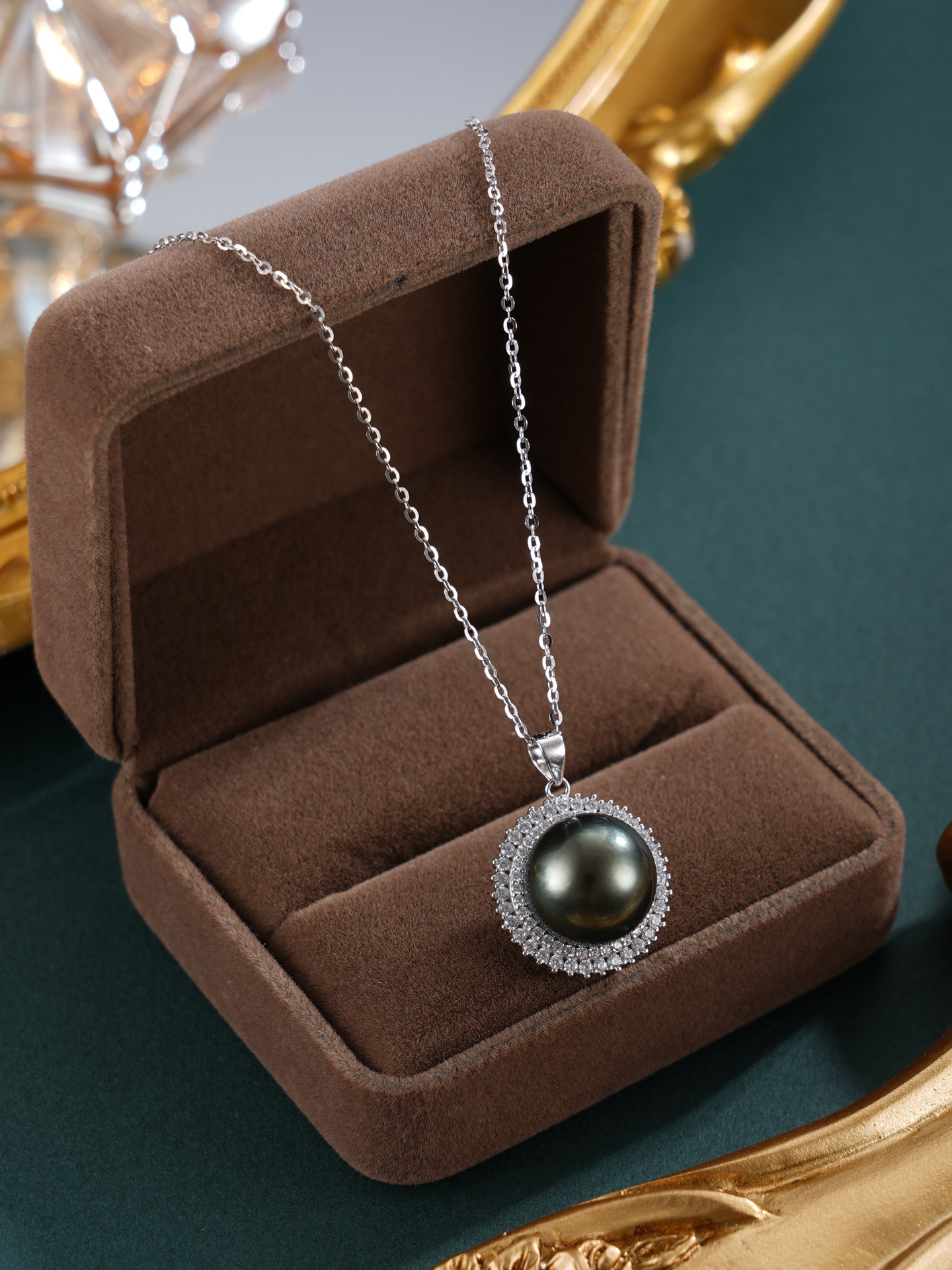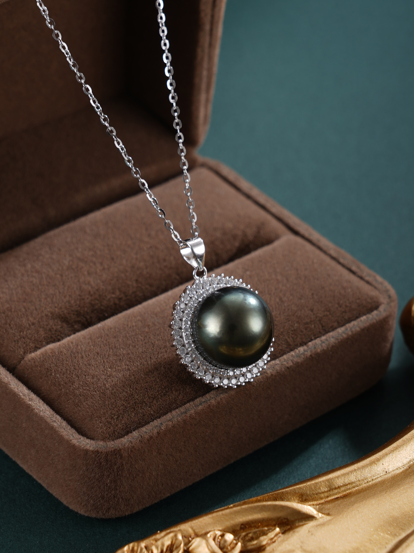 子佩集【玄华凝香】银S925珍珠惜王妃套链【HJYDZ009】12mm珠圆环黑珠2601