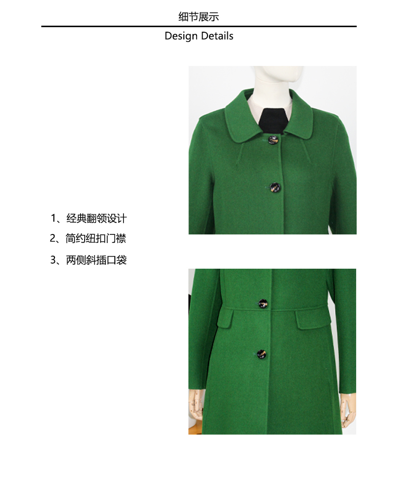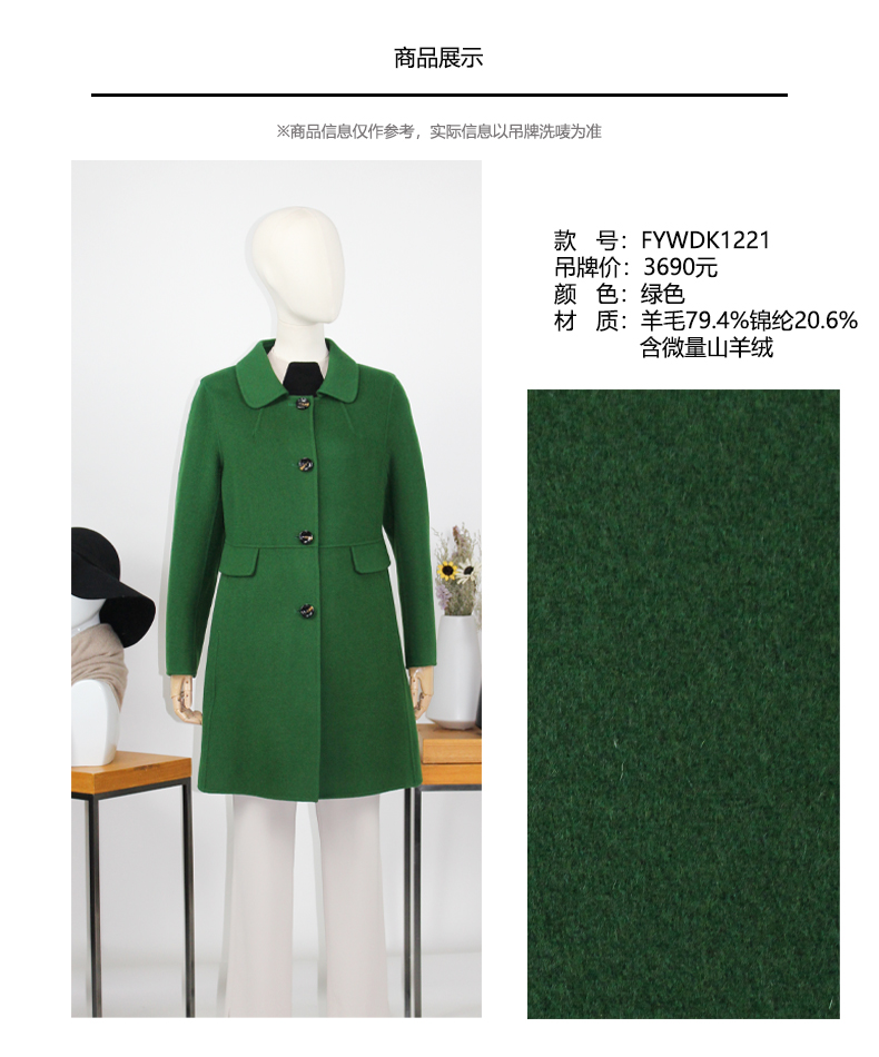 FOCALS福柯斯冬季新款修身中长款羊毛双面呢大衣外套FYWDK1221G1