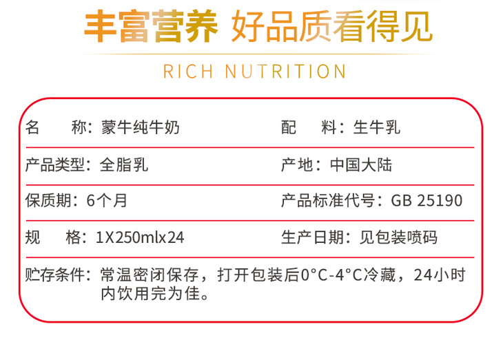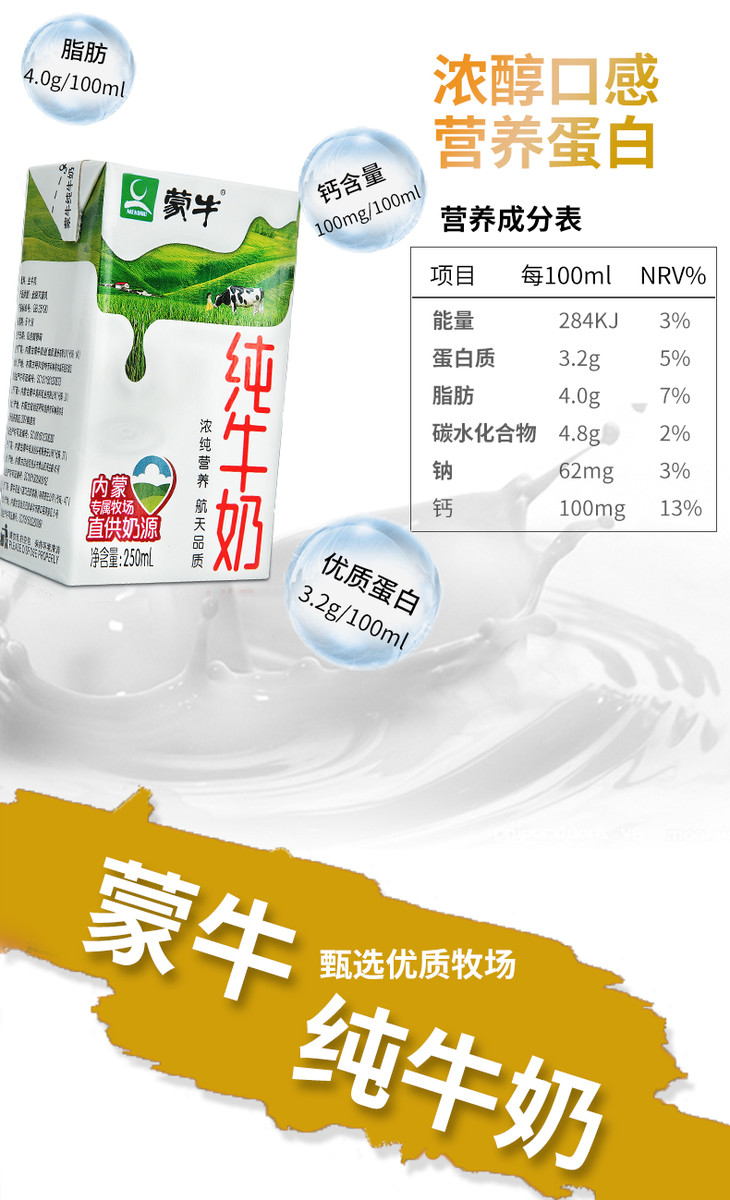 T-A47【团长】蒙牛纯牛奶利乐包250ml×24盒