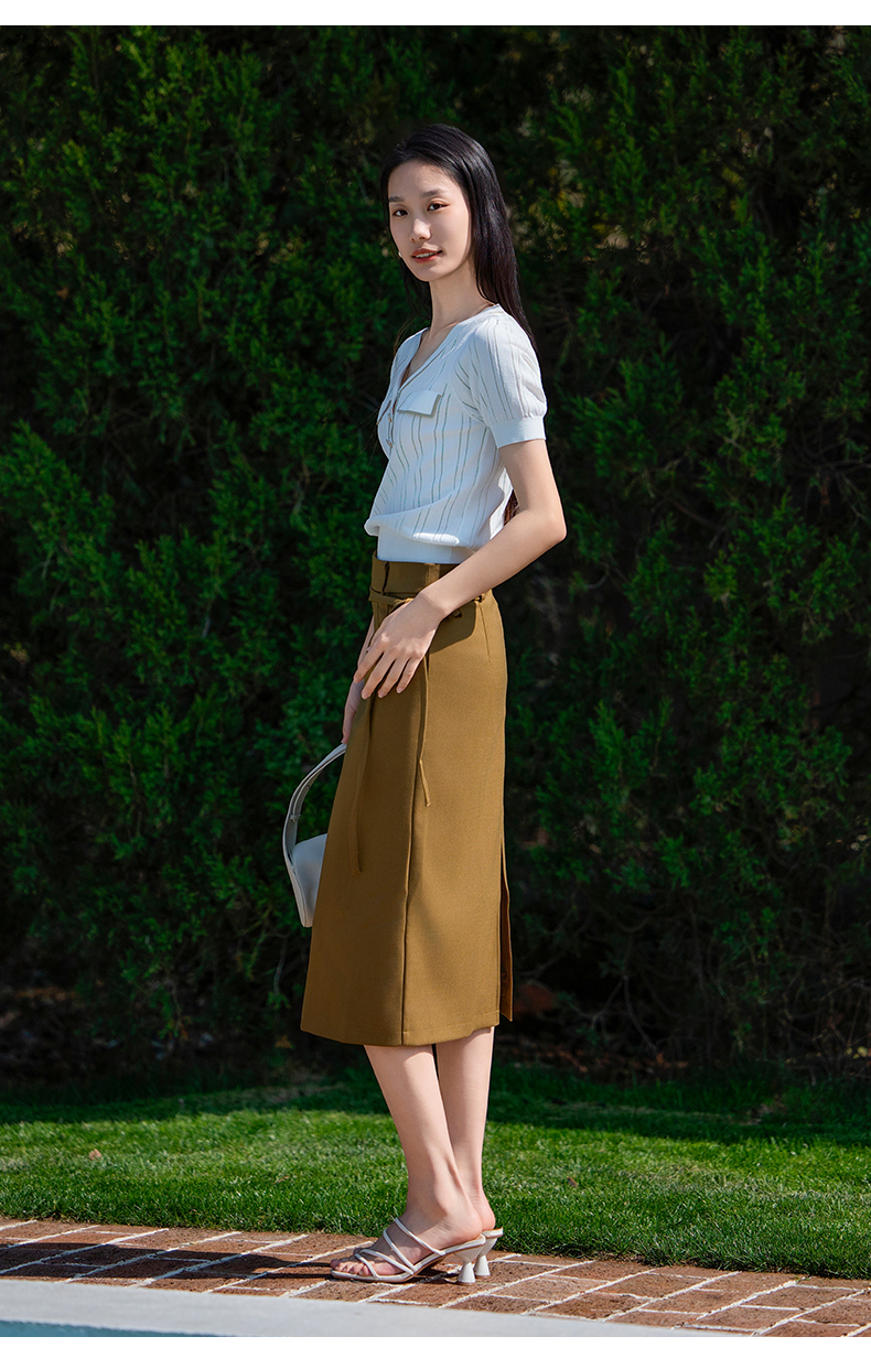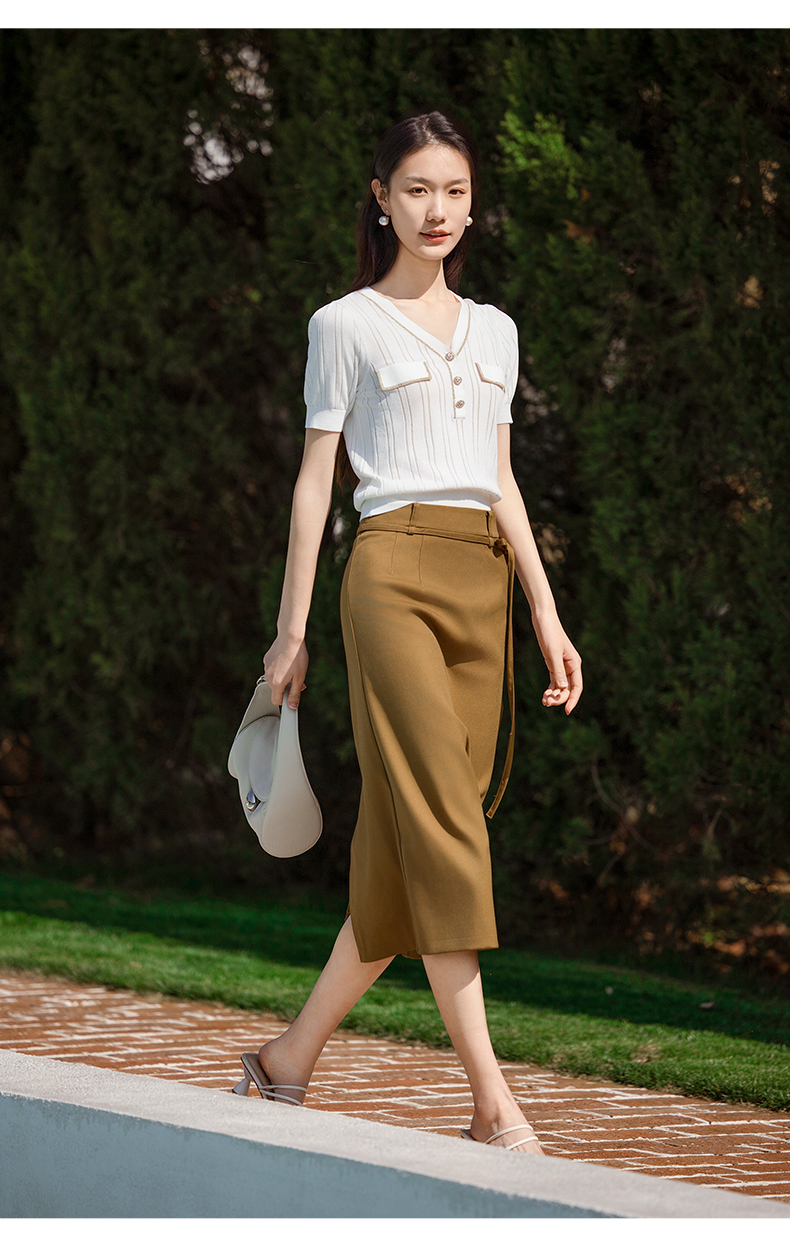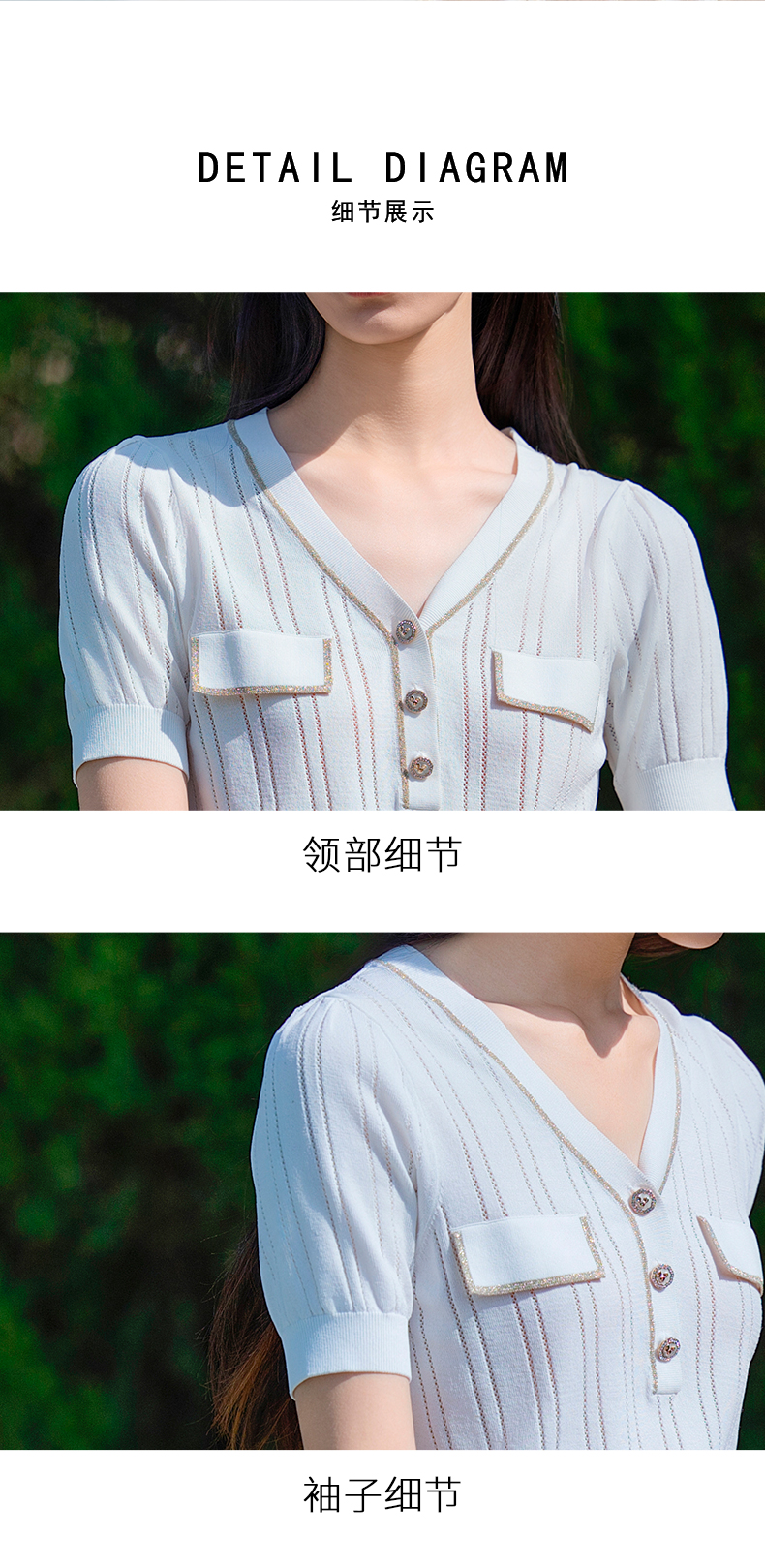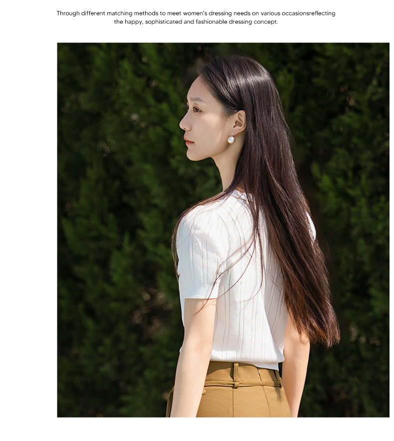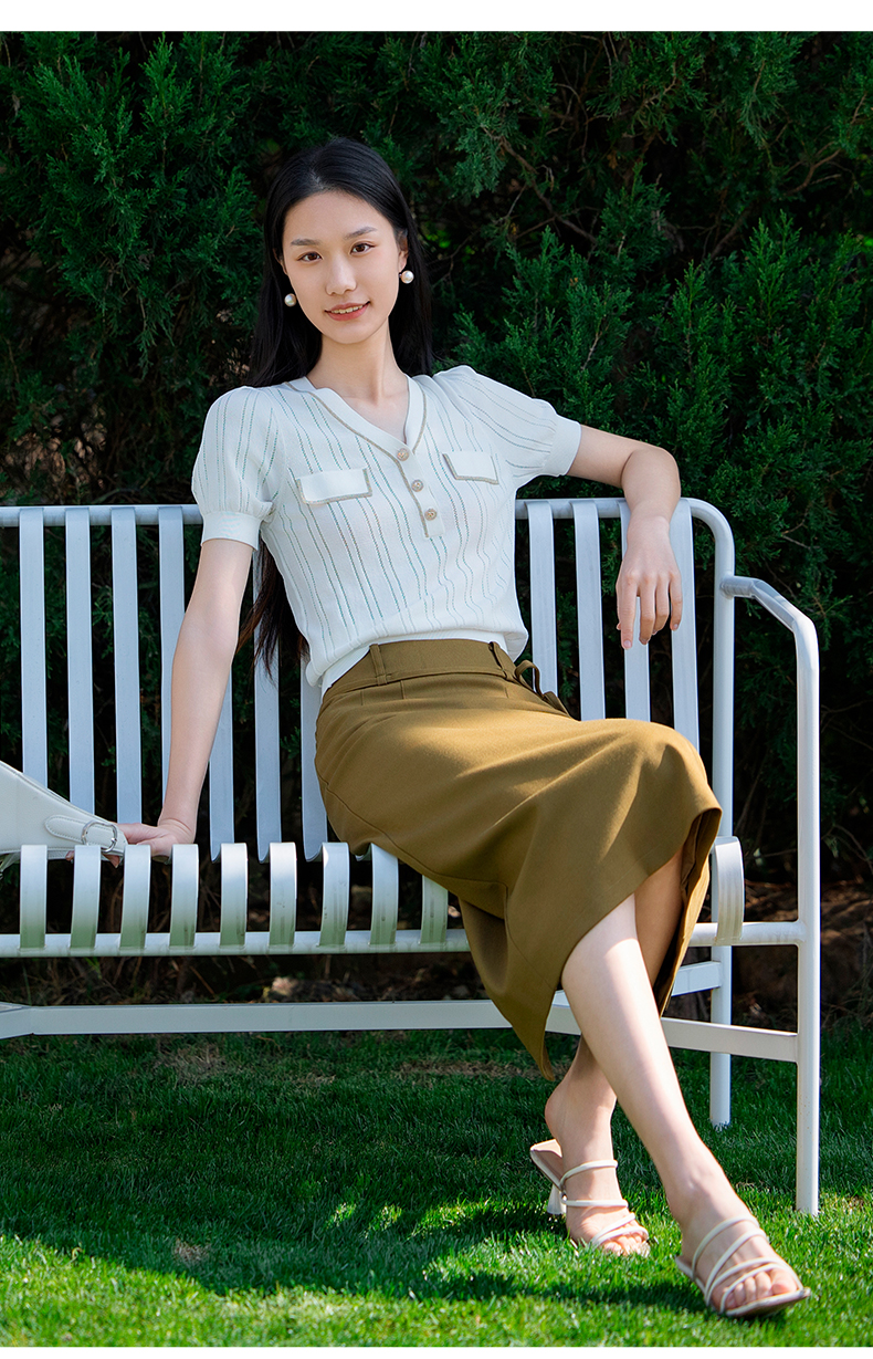 oldcolour短袖针织衫夏季新款设计感V领通勤白色上衣女P21052192