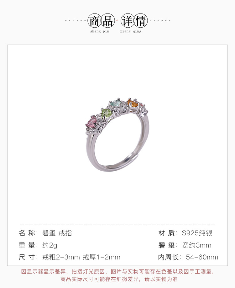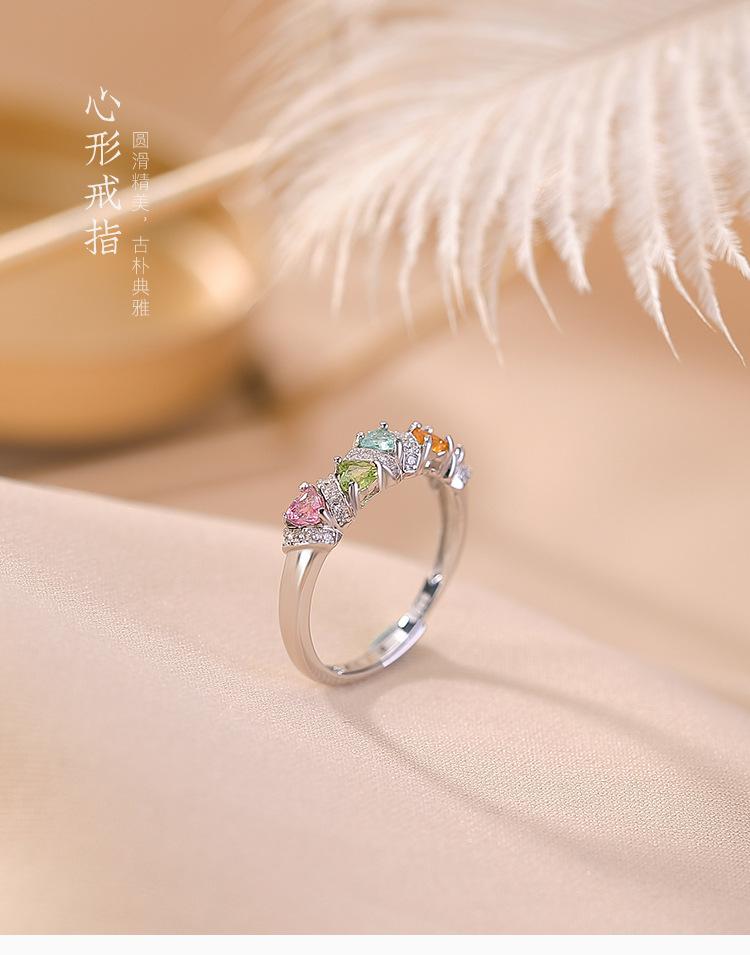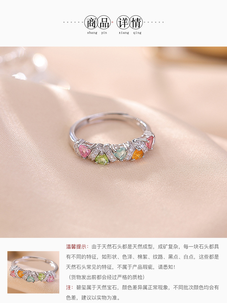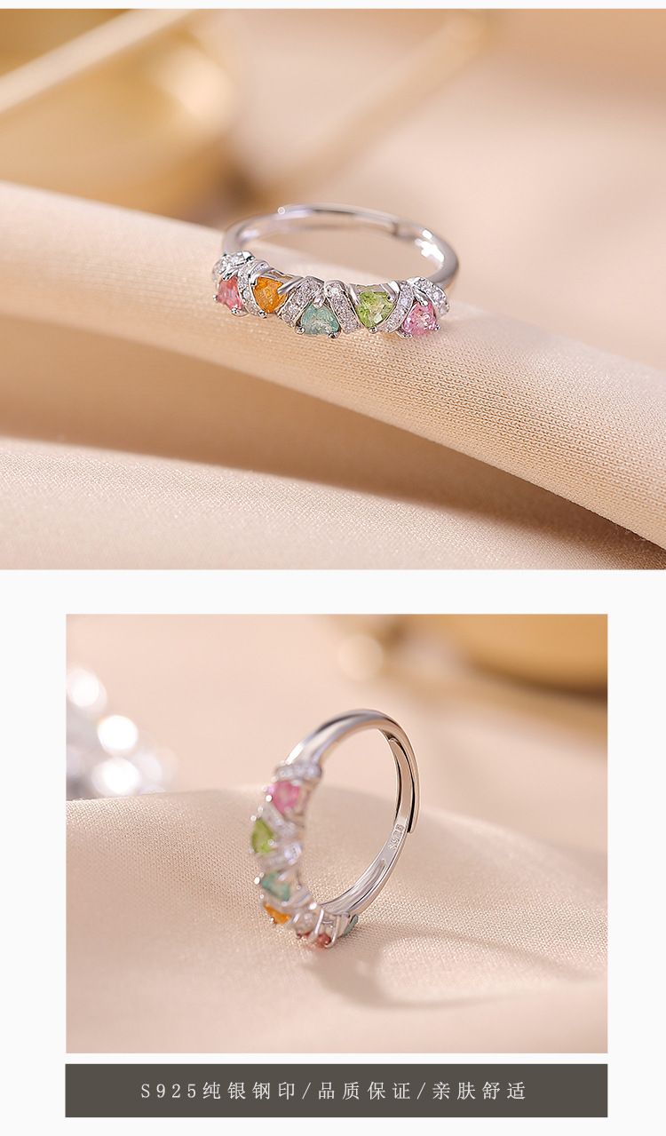 【爱意联动】彩色碧玺S925纯银爱心开口戒指【CW-JZ07407】