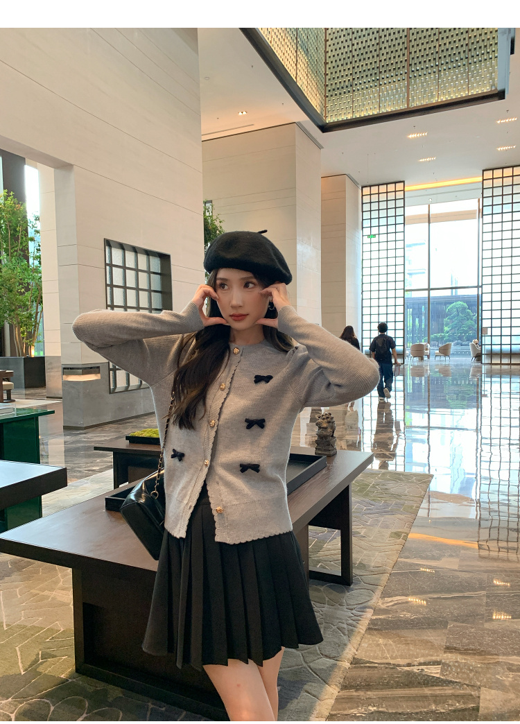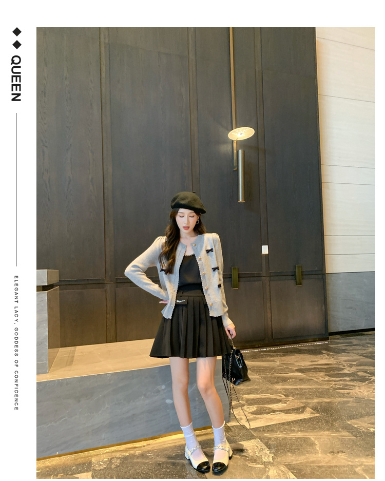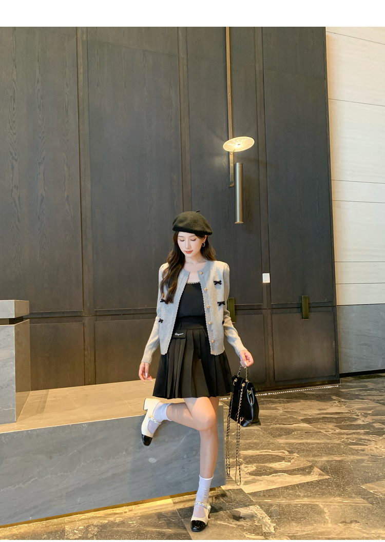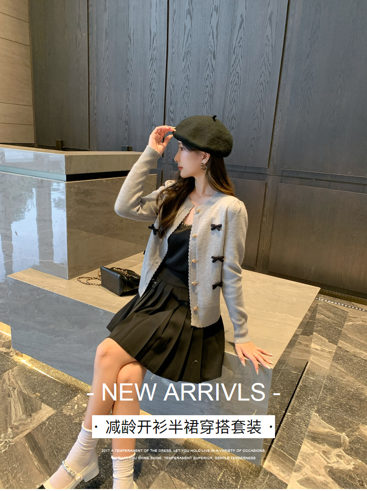 奢姿2024秋新款大码女装胖妹妹减龄针织开衫休闲百褶半裙穿搭套装
