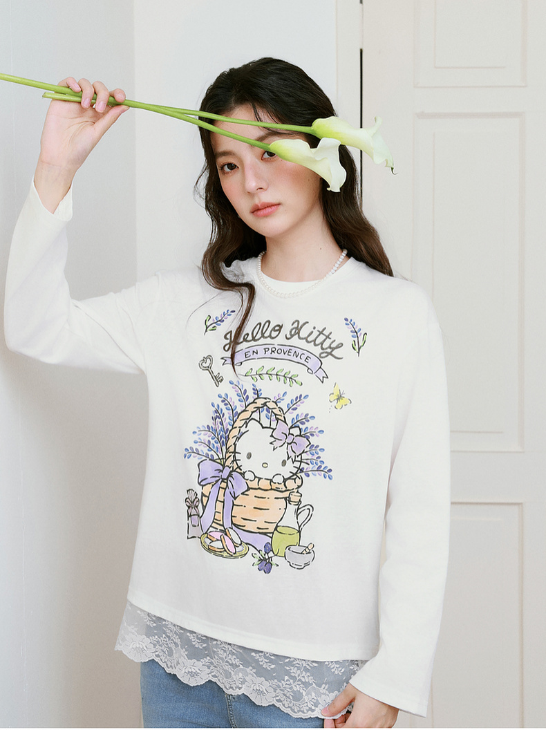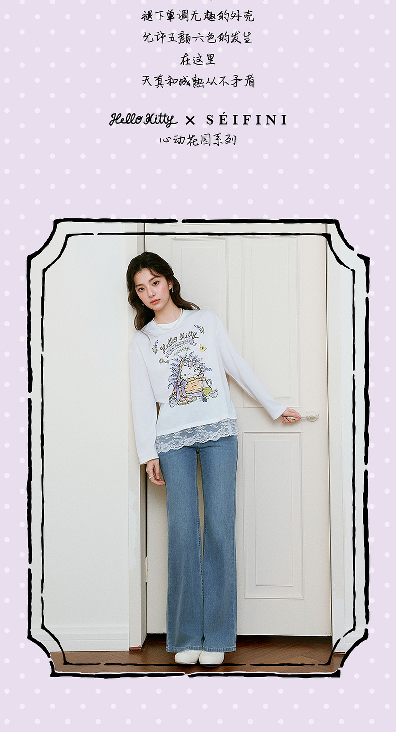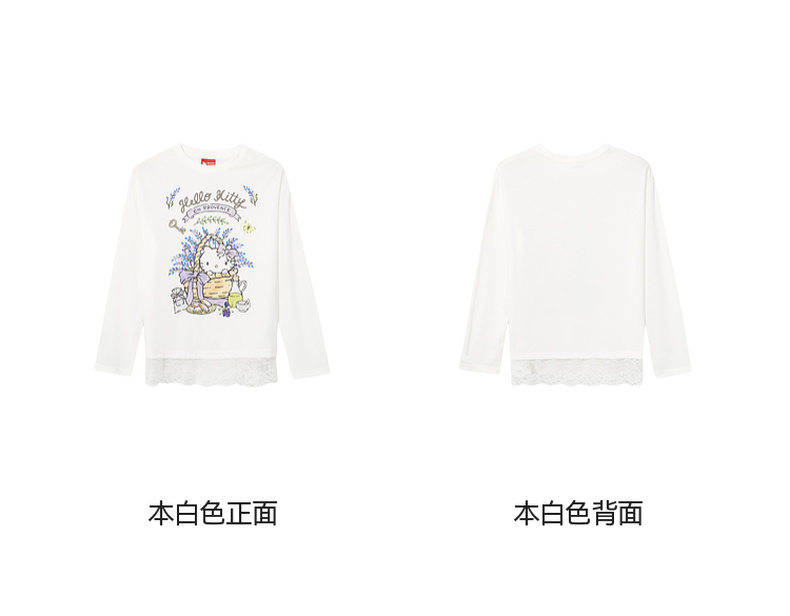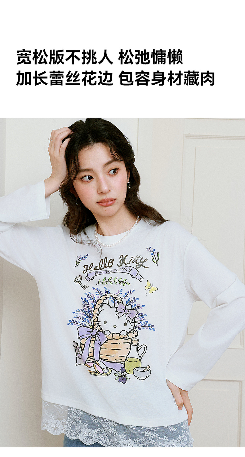 【积分换购不退货】【严选】【HelloKitty合作系列】诗凡黎蕾丝拼接T恤25春新款宽松上衣女7G3100591
