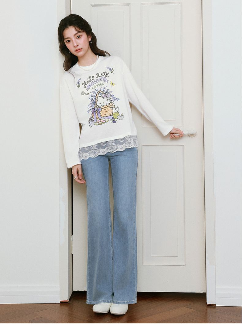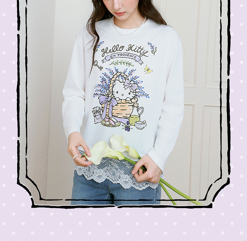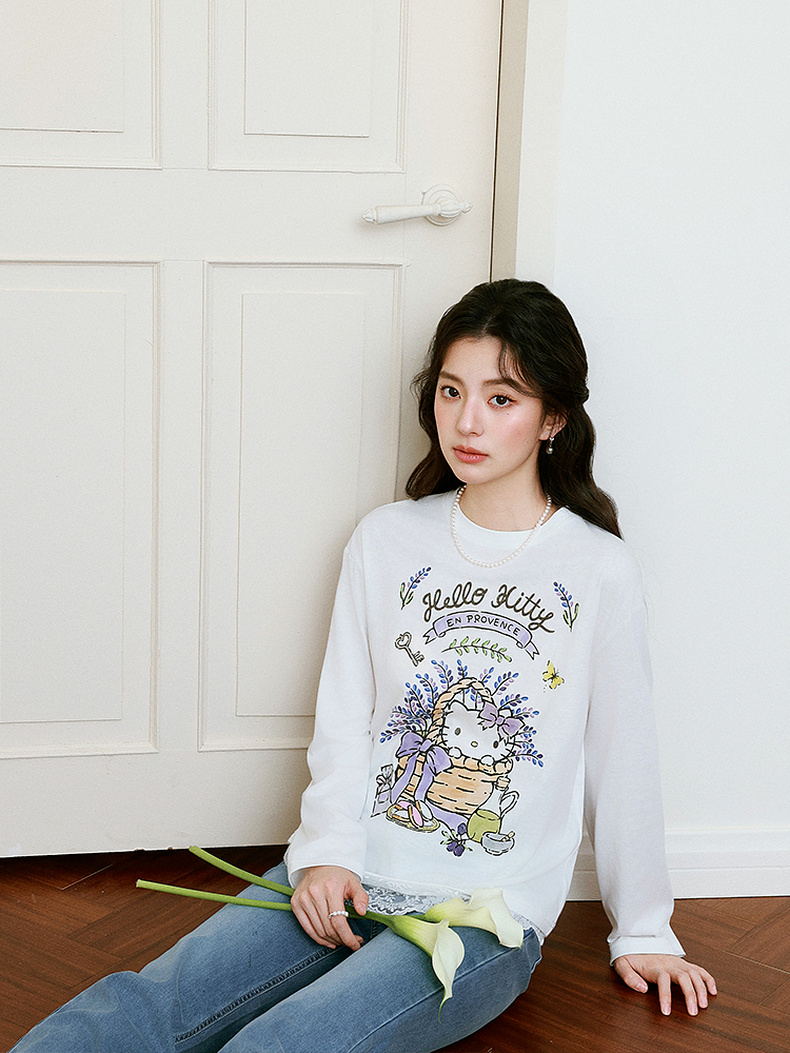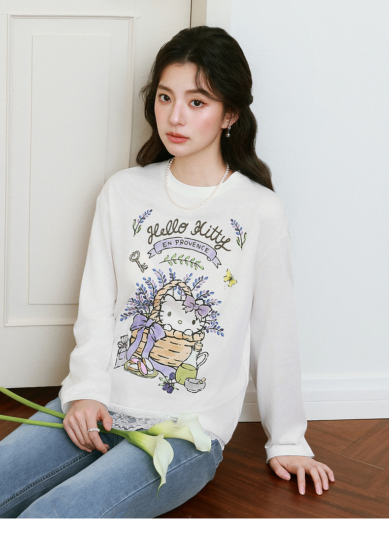 【积分换购不退货】【严选】【HelloKitty合作系列】诗凡黎蕾丝拼接T恤25春新款宽松上衣女7G3100591