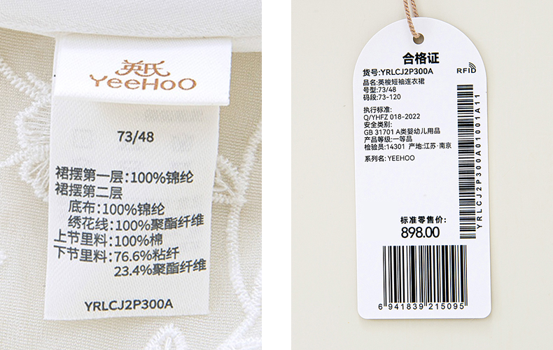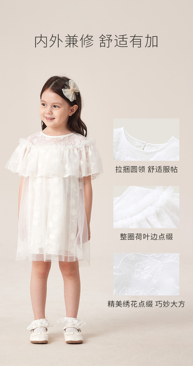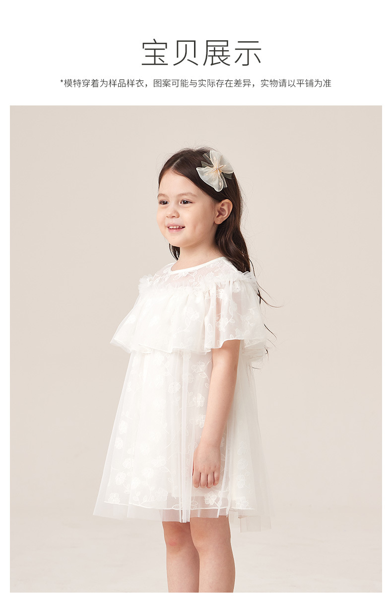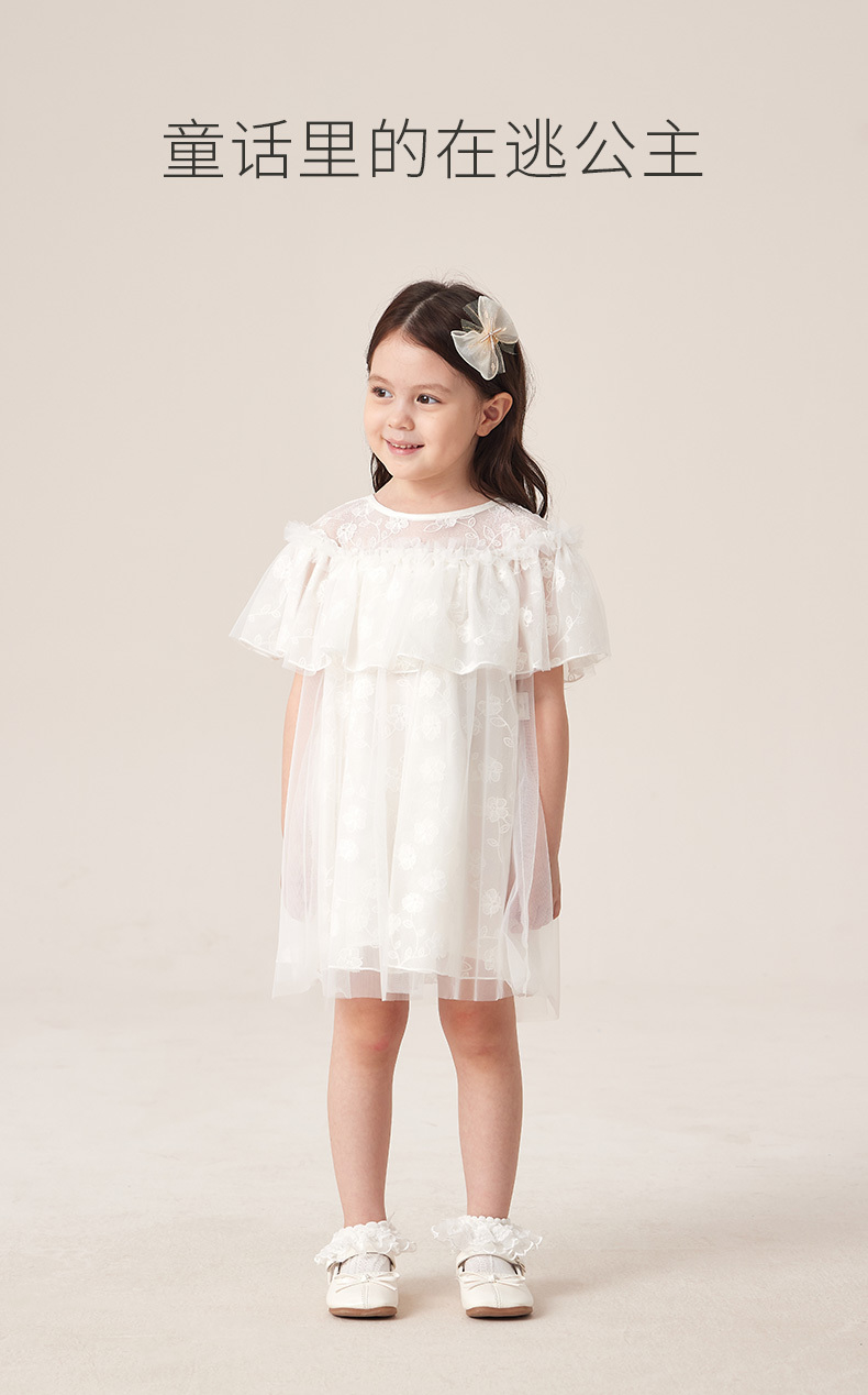 英氏高端款女童连衣裙荷叶边网纱裙子2023夏季公主裙YRLCJ2P300A