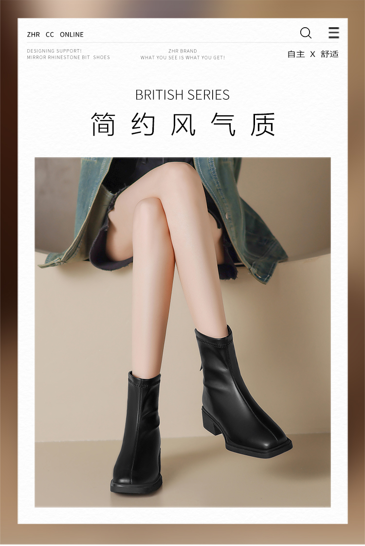 ZHR简约风气质瘦瘦短靴女2023冬季新款柔软加绒保暖女靴时尚百搭