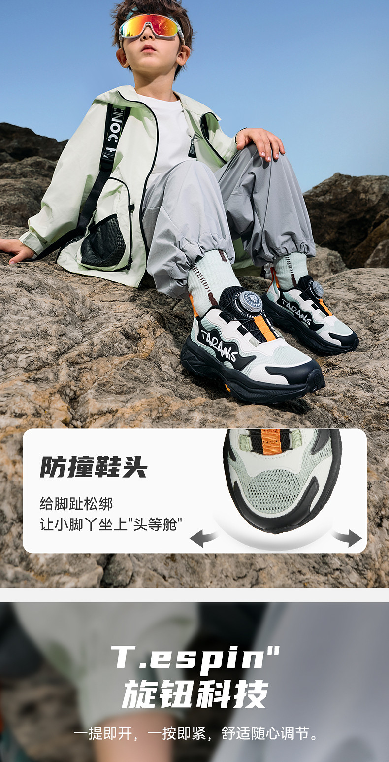 泰兰尼斯童鞋2026春季新款小童运动鞋透气轻盈男童旋钮户外运动鞋T01X6A8658